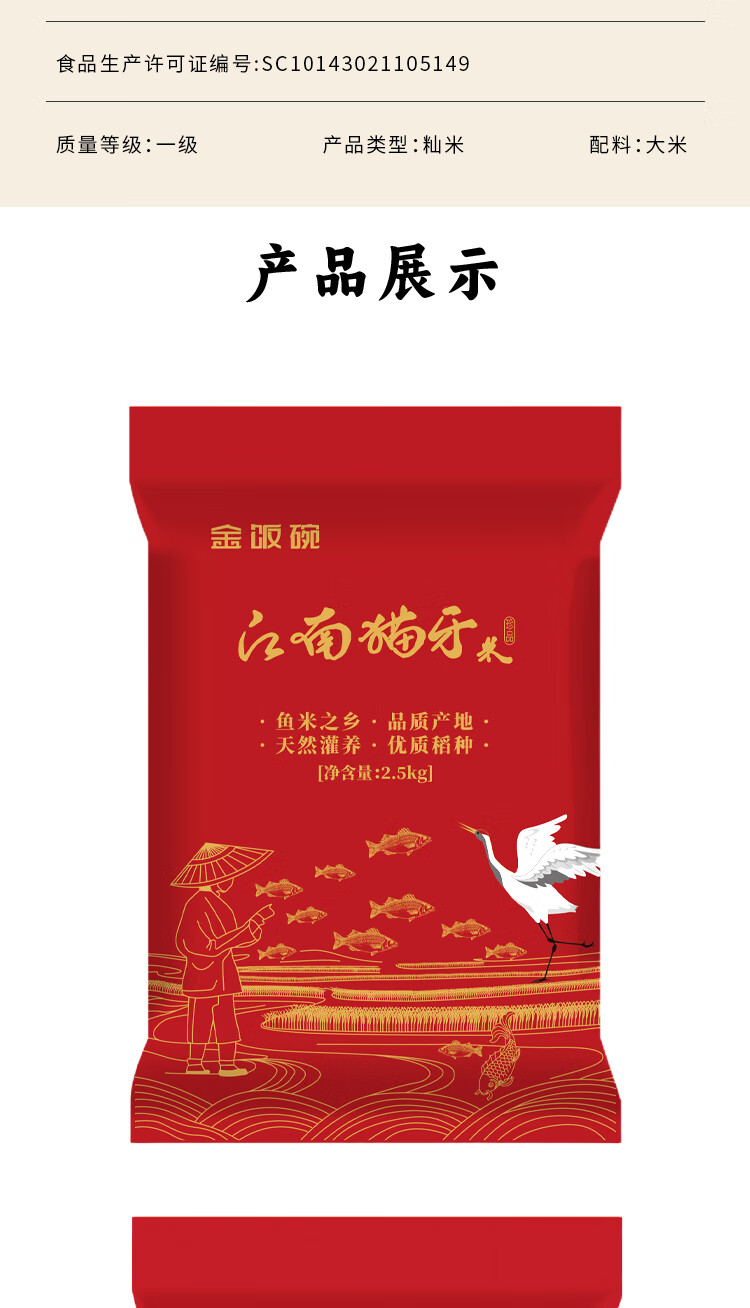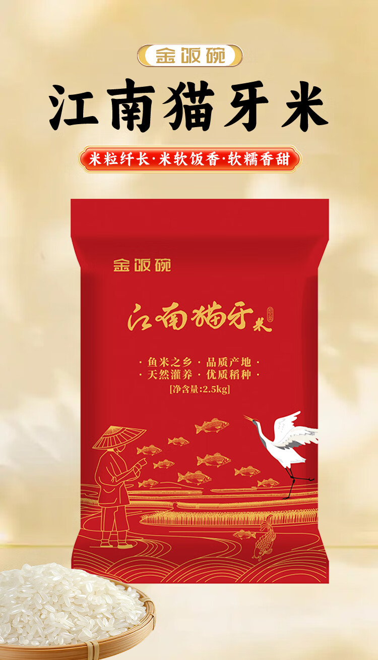 金饭碗长粒香猫牙米新米新稻营养籼米5斤真空防潮家用厂家直销 2.5KG*1包