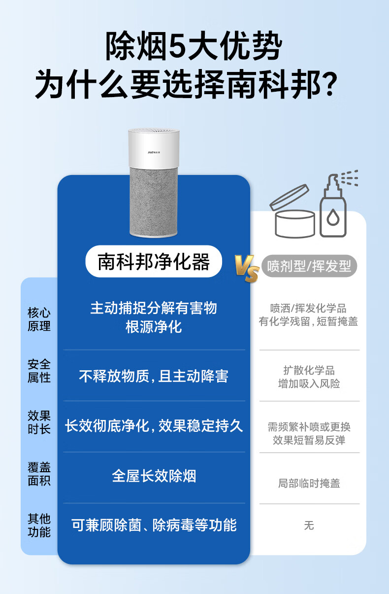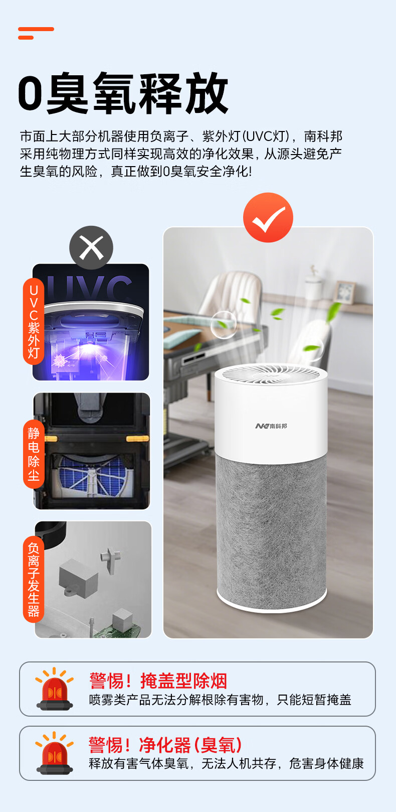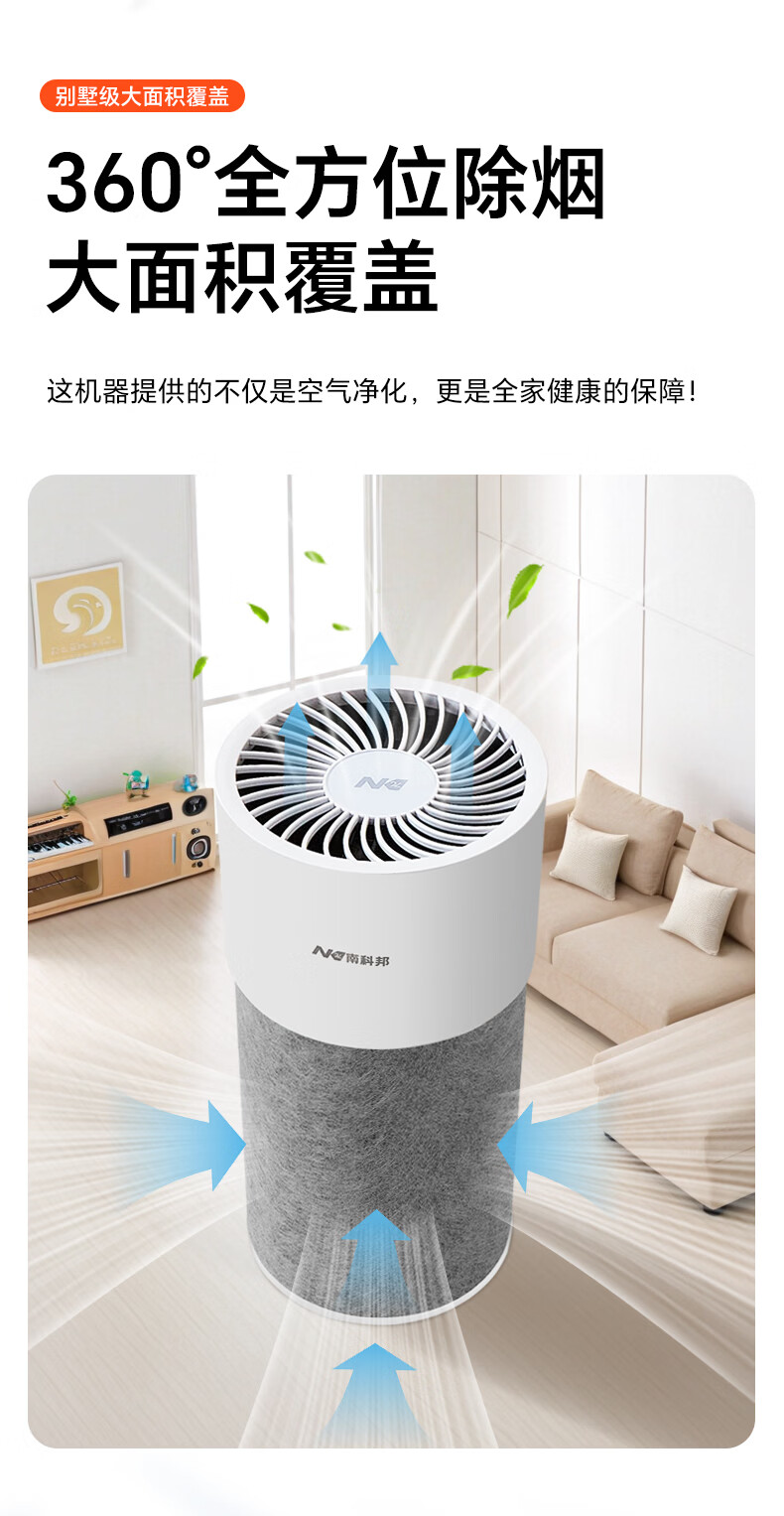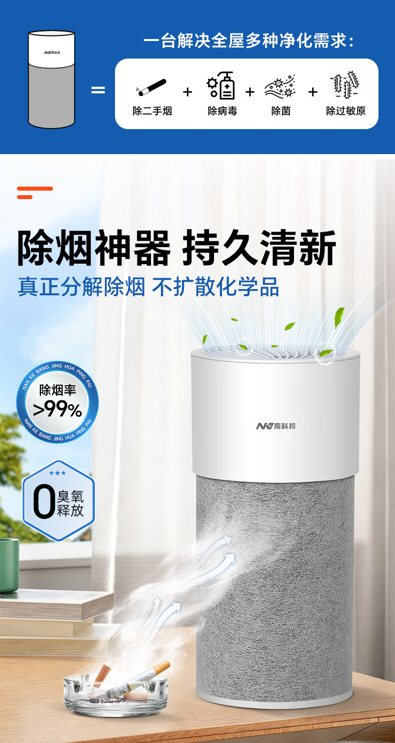 南科邦空气净化器除烟味除菌家用吸烟净化机办公室麻将馆棋牌室内去烟雾滤芯除异味神器 除烟味除菌净化器【强效除烟母婴适用】