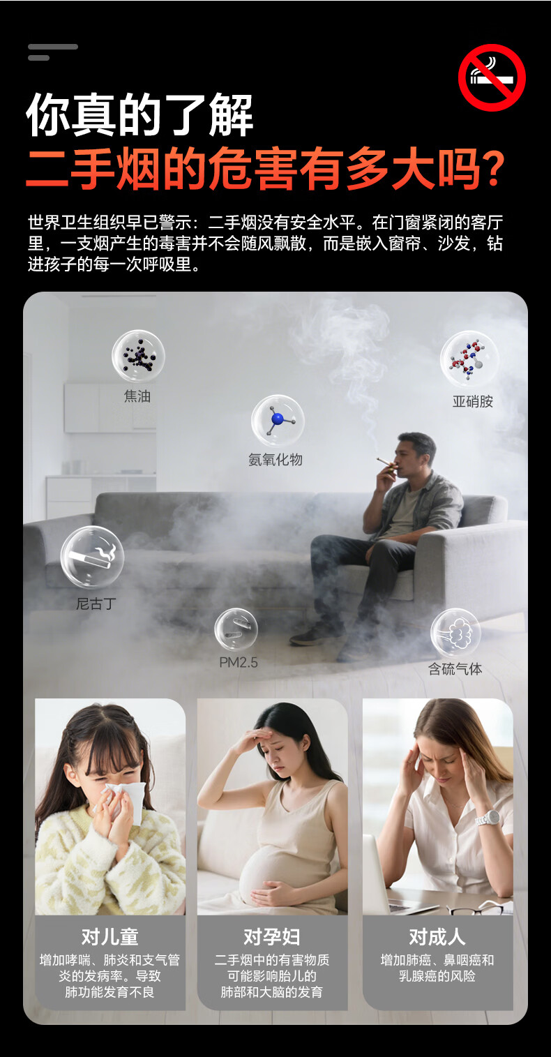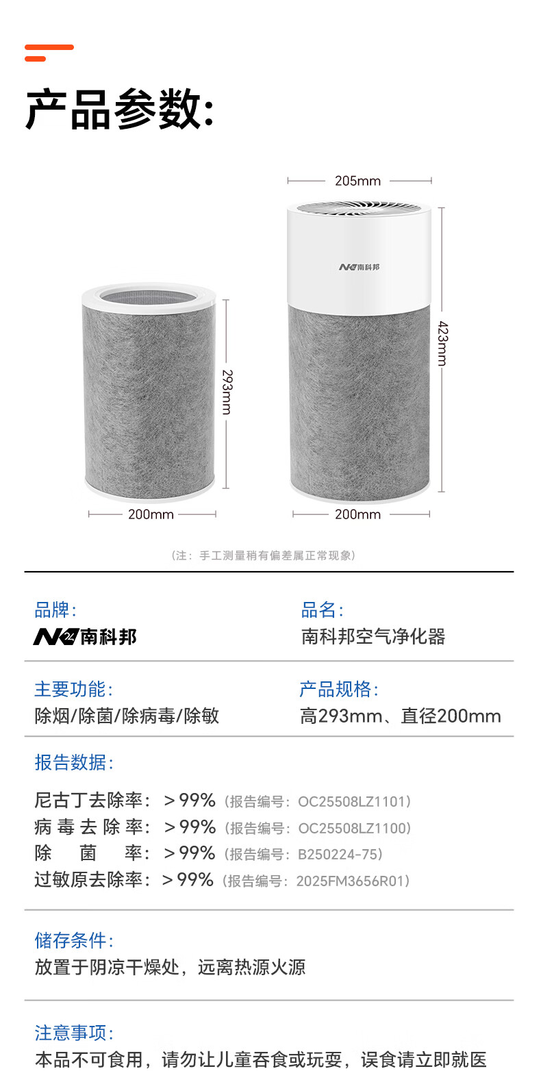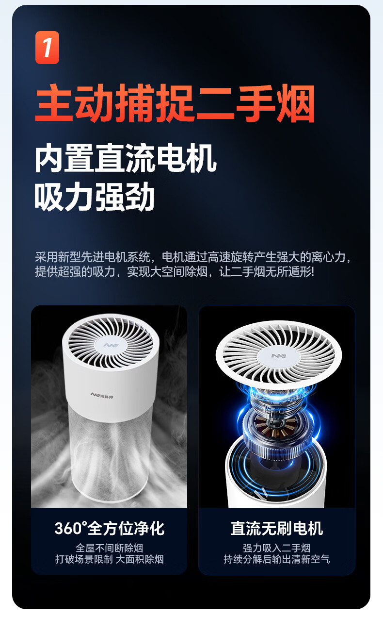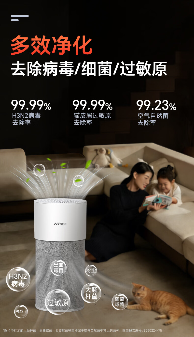 南科邦空气净化器除烟味除菌家用吸烟净化机办公室麻将馆棋牌室内去烟雾滤芯除异味神器 除烟味除菌净化器【强效除烟母婴适用】