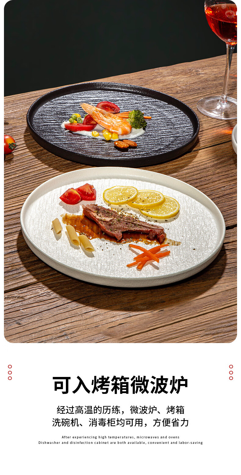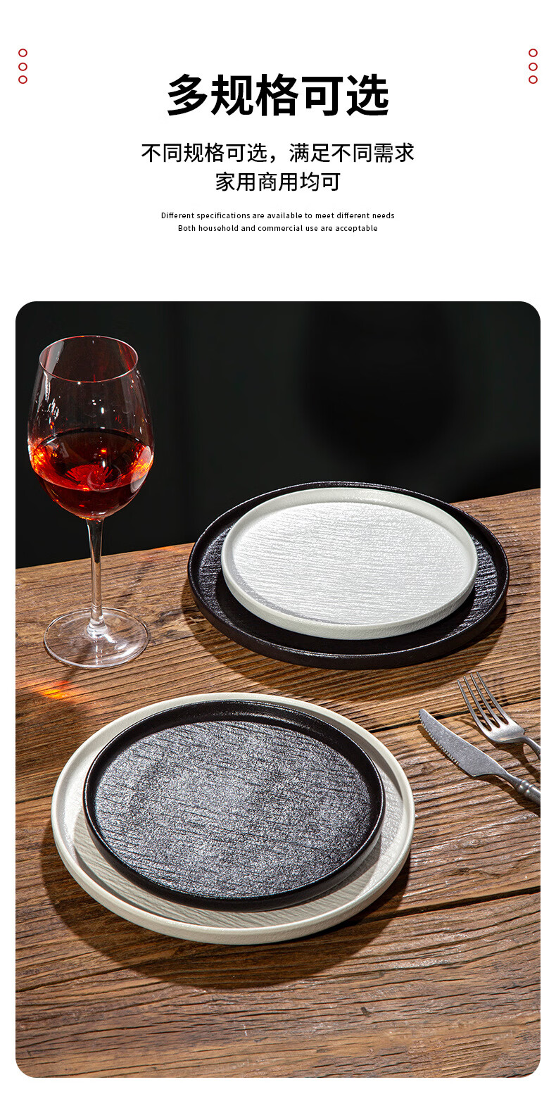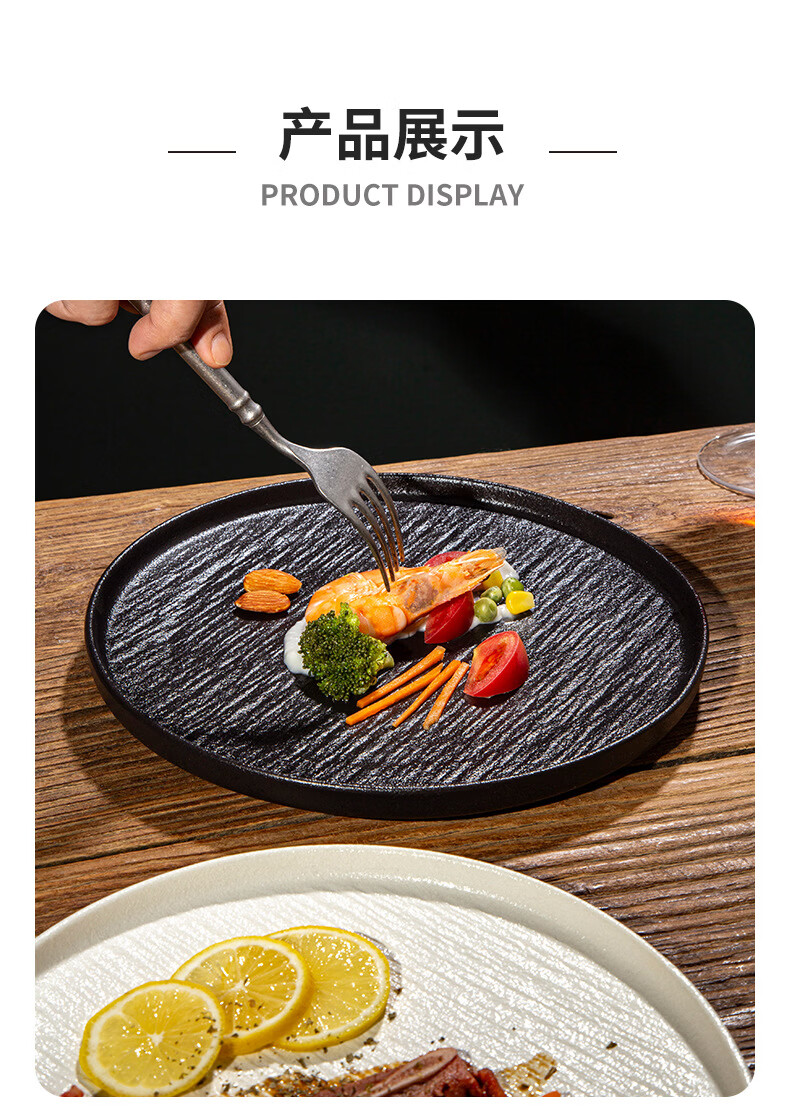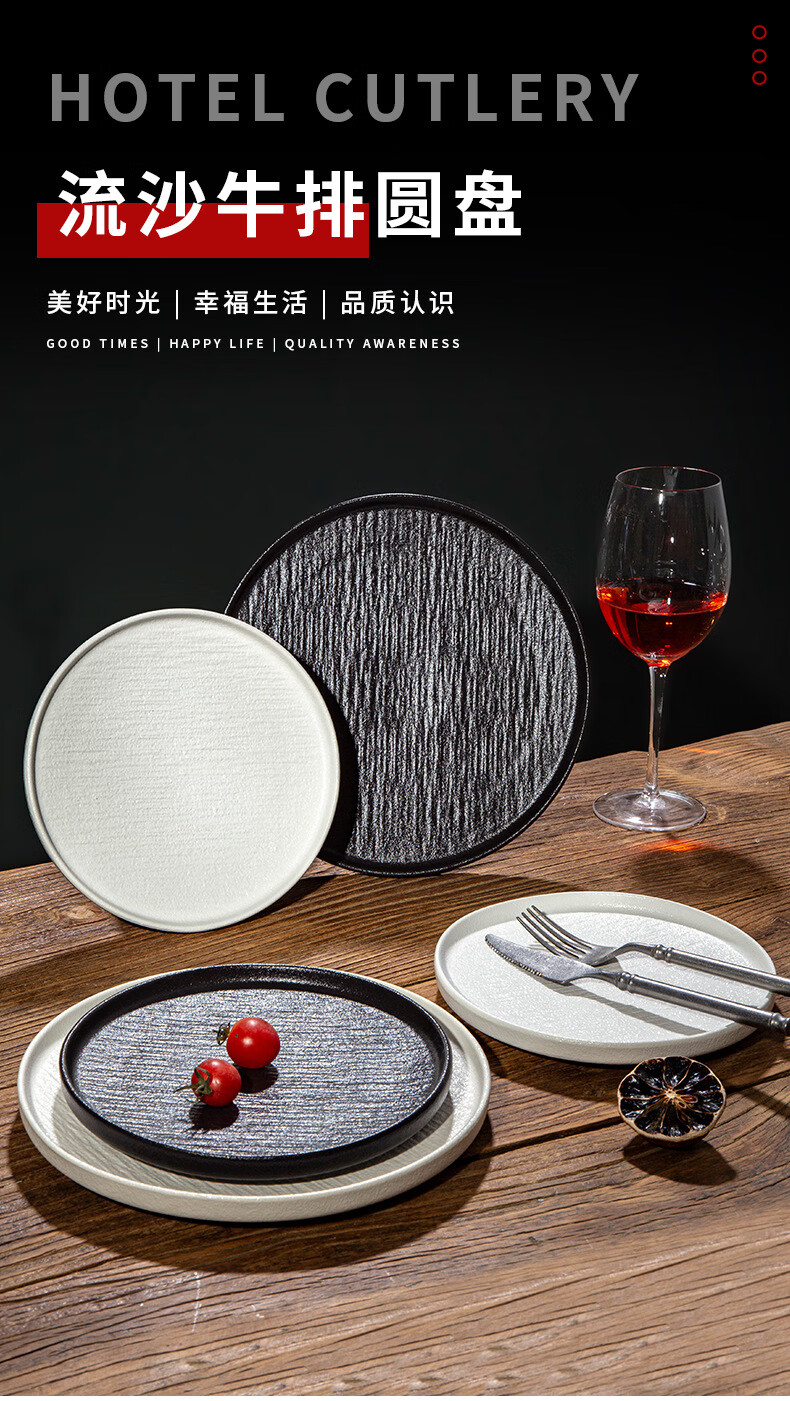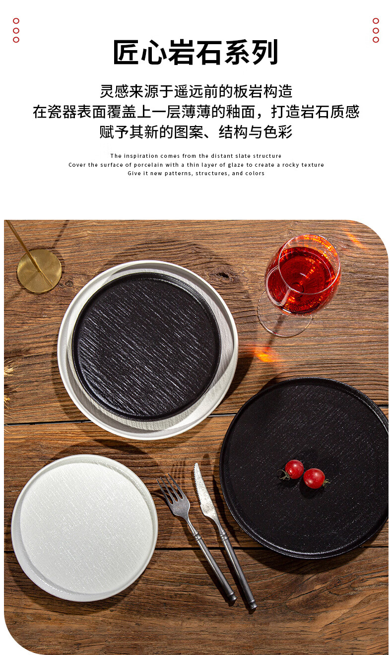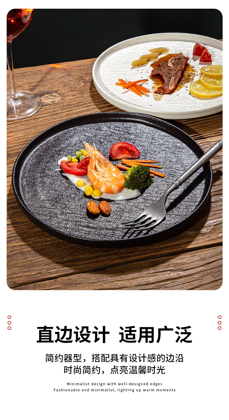 简约家用圆盘陶瓷餐具西餐盘感菜盘牛排盘流沙披萨盘意面盘高颜值 10寸边盘(岩石黑)