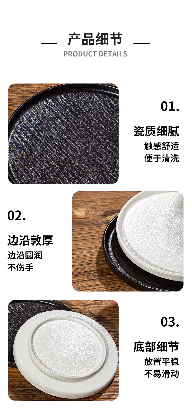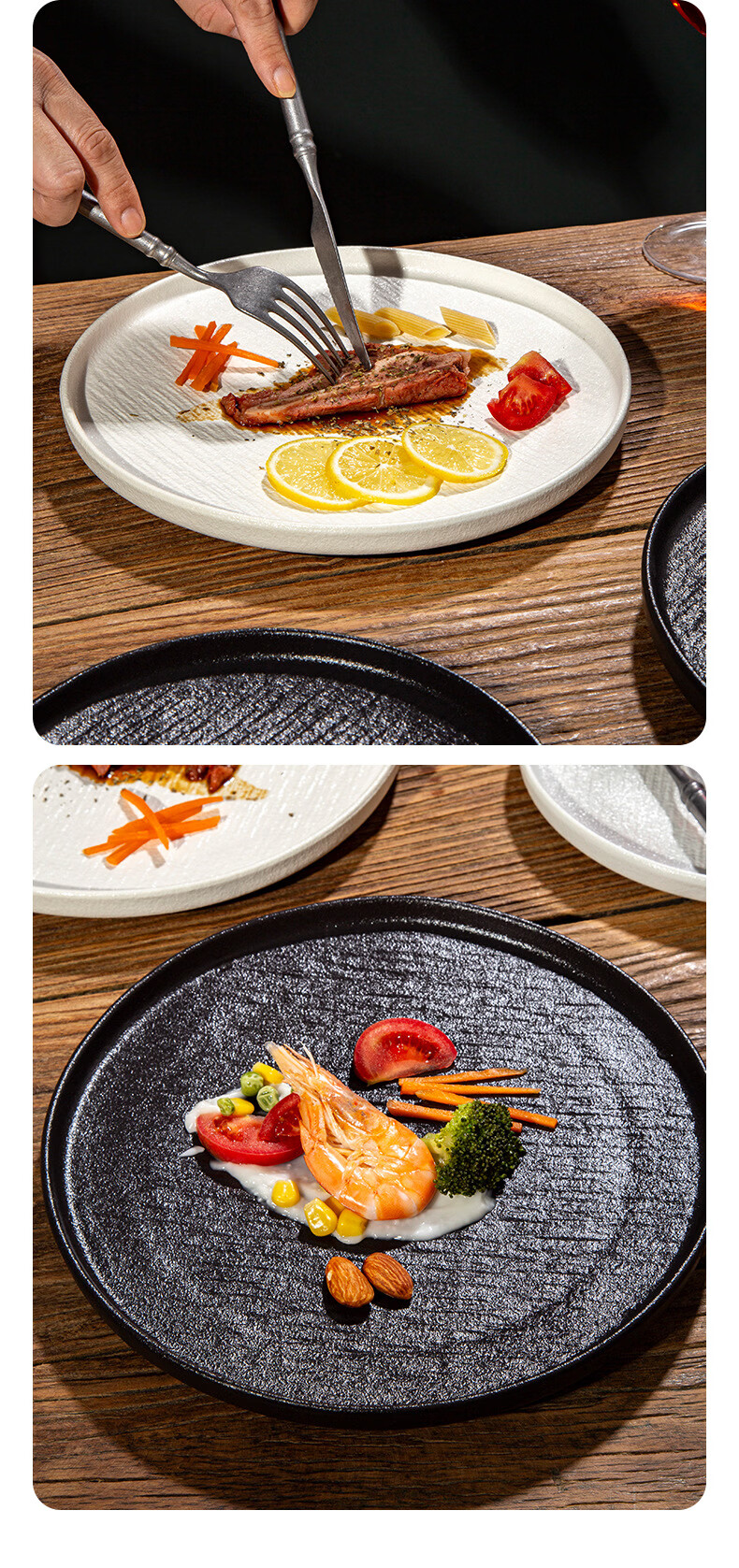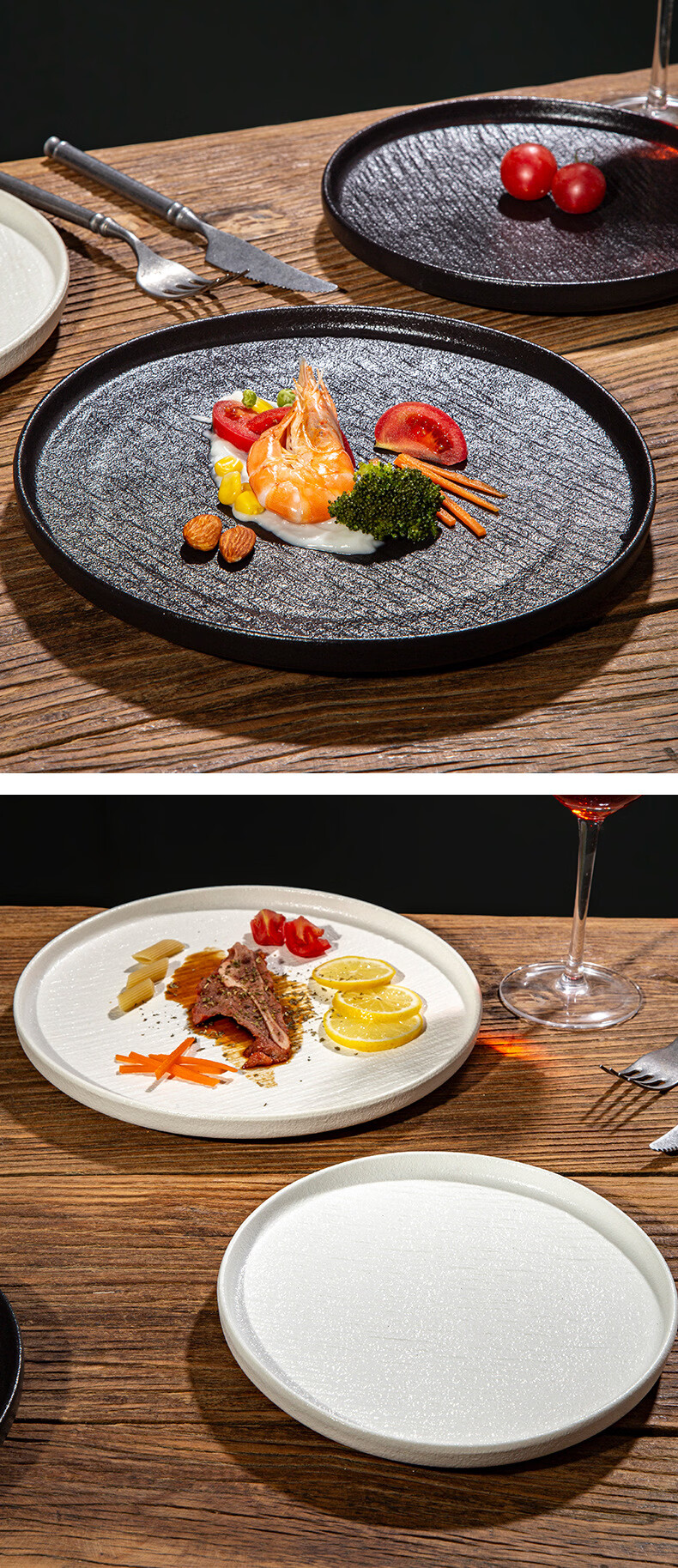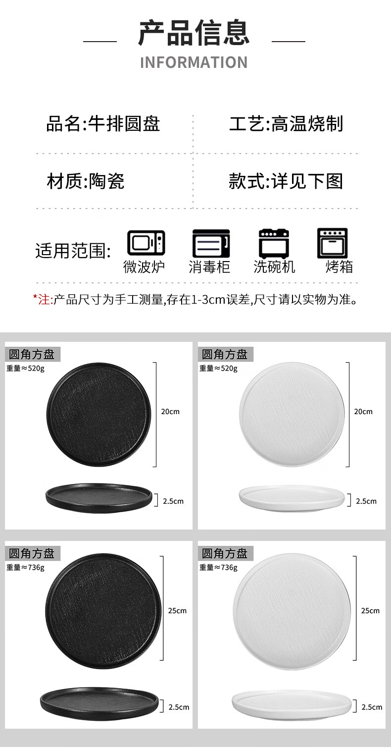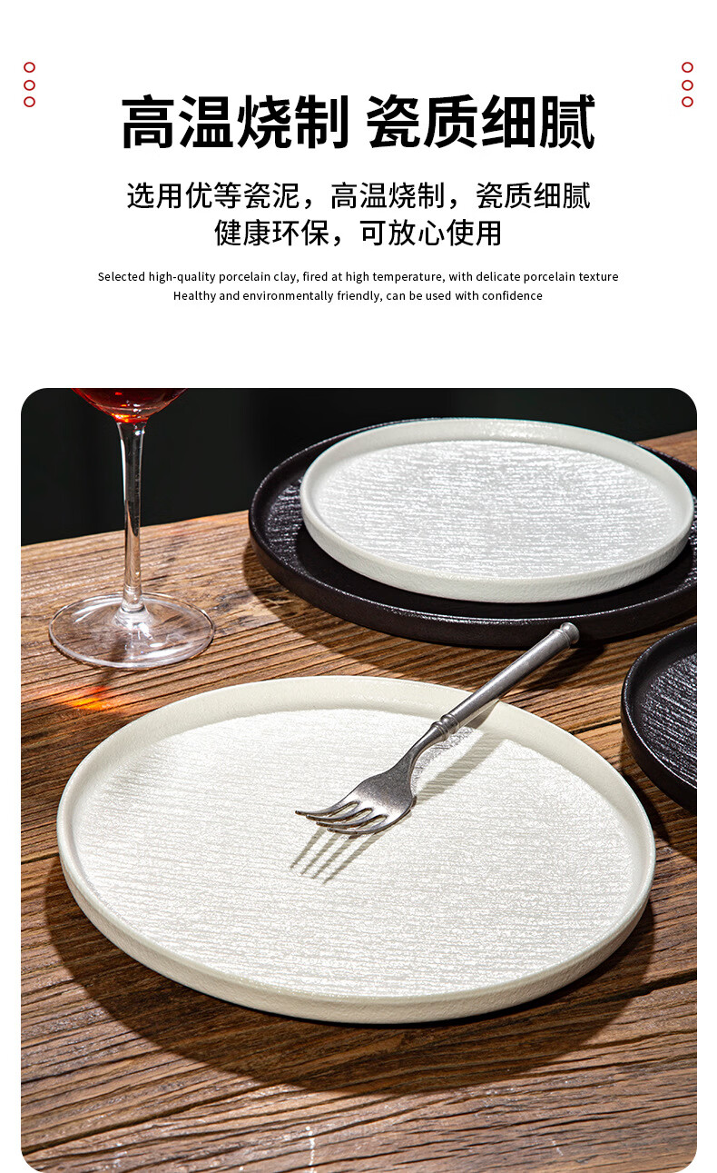 简约家用圆盘陶瓷餐具西餐盘感菜盘牛排盘流沙披萨盘意面盘高颜值 10寸边盘(岩石黑)