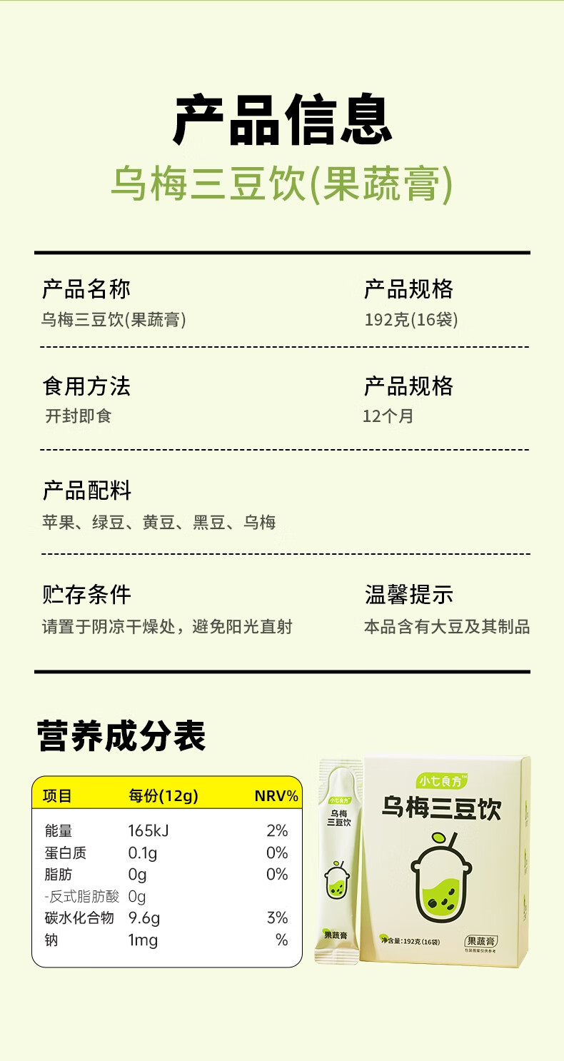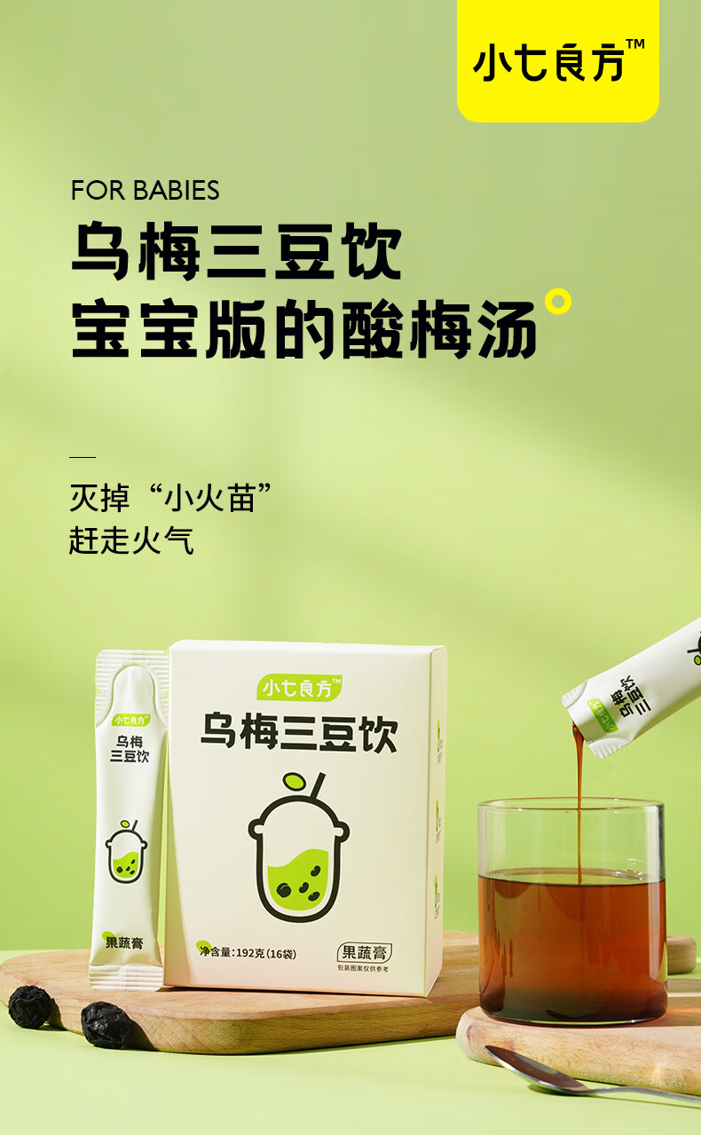 七小七乌梅三豆饮儿童饮料192g*1盒 扁鹊三豆膏0添加果蔬膏清火开胃小包