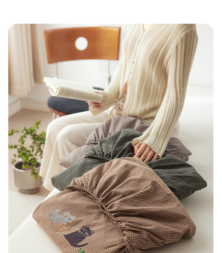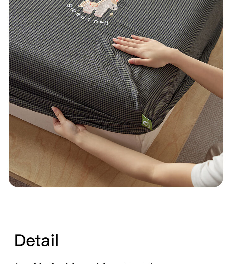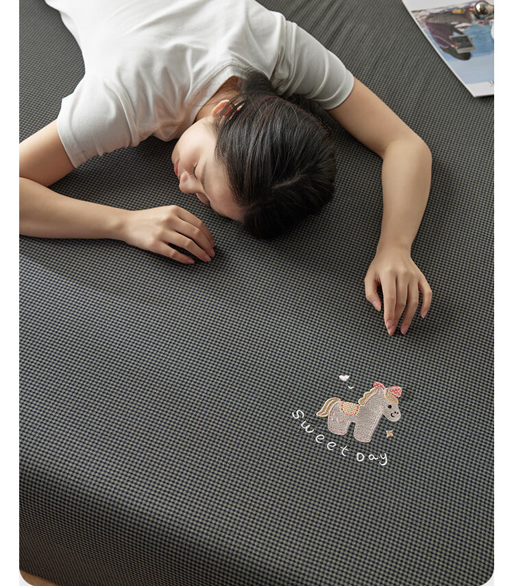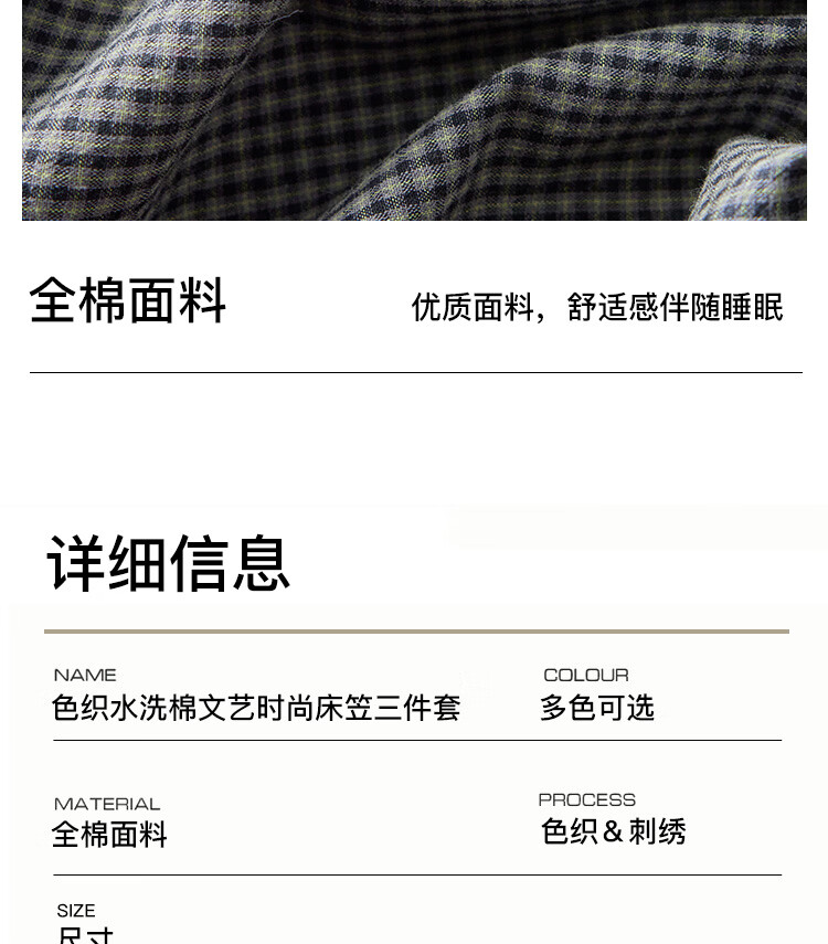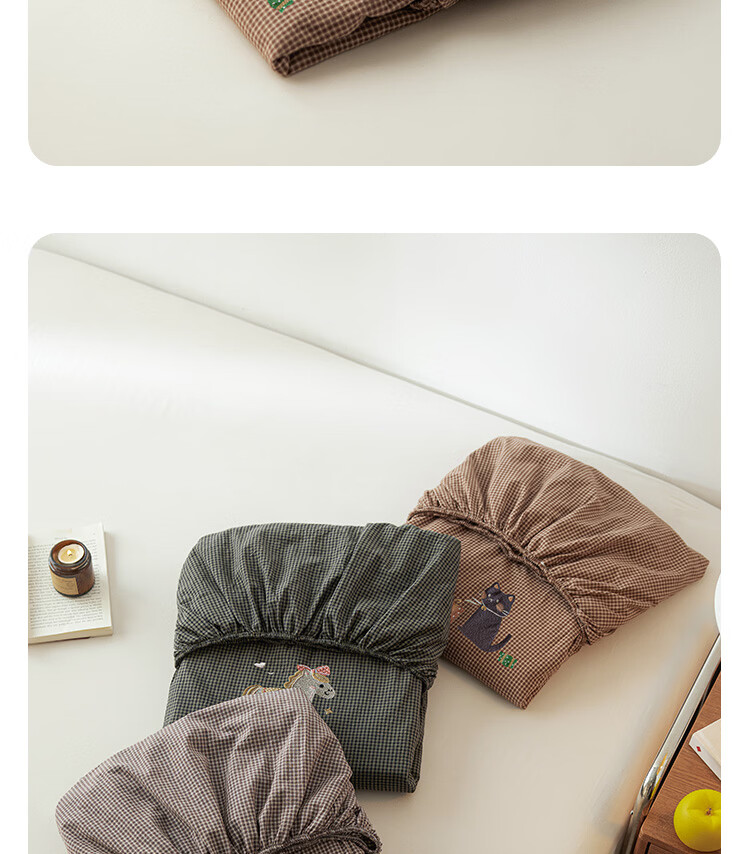 ROLAND LIVE全棉色织水洗棉刺绣单床笠文艺风小格子床笠枕套三件套床垫保护罩 KZ 全棉水洗棉床笠-马上幸运 单床笠120*200cm