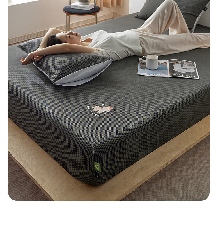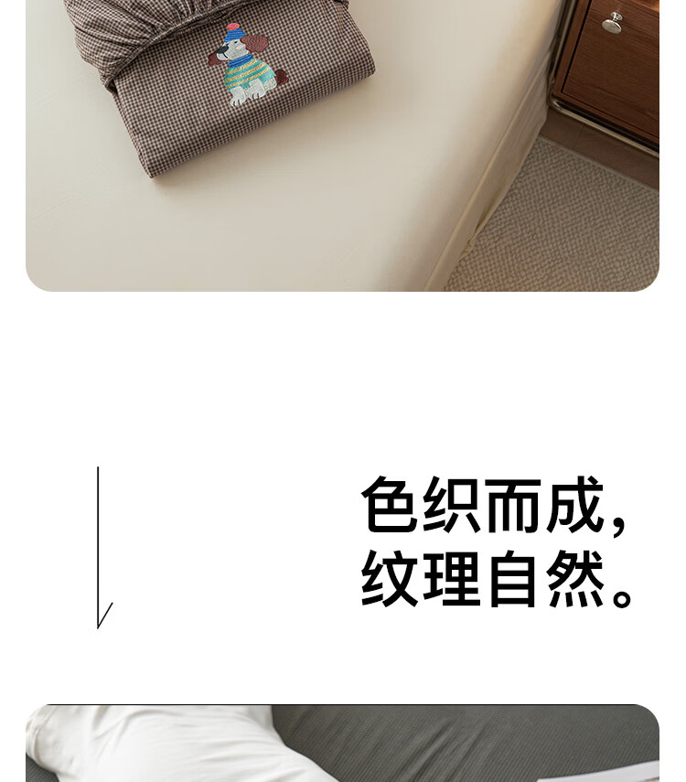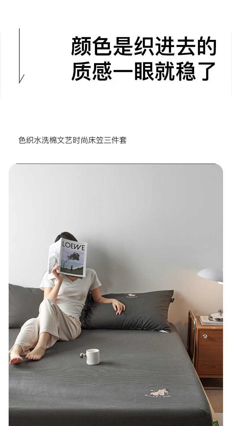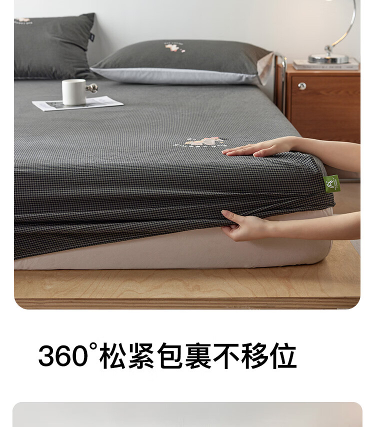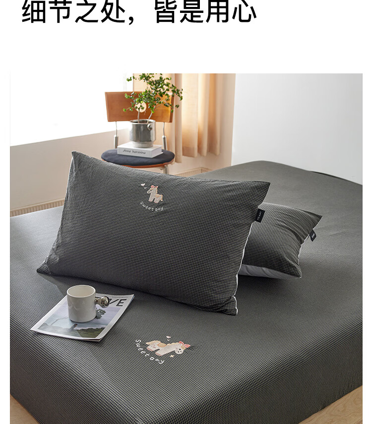 ROLAND LIVE全棉色织水洗棉刺绣单床笠文艺风小格子床笠枕套三件套床垫保护罩 KZ 全棉水洗棉床笠-马上幸运 单床笠120*200cm