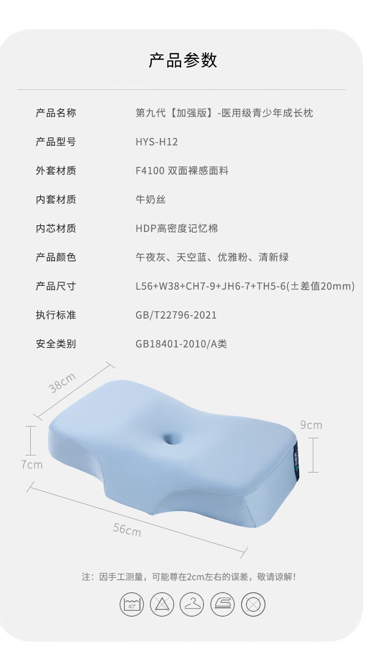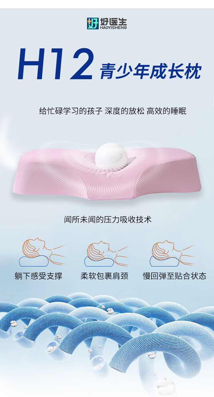 好医生(HAOYISHENG)青少年学生枕头12-18岁通用护颈深度睡眠颈医用级双11礼品礼物 【第九代】天空蓝【12-18】 纯色 默认