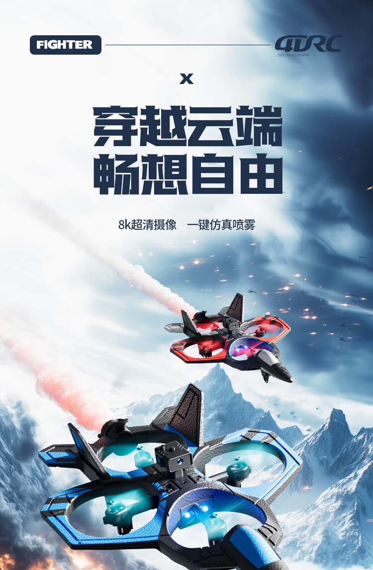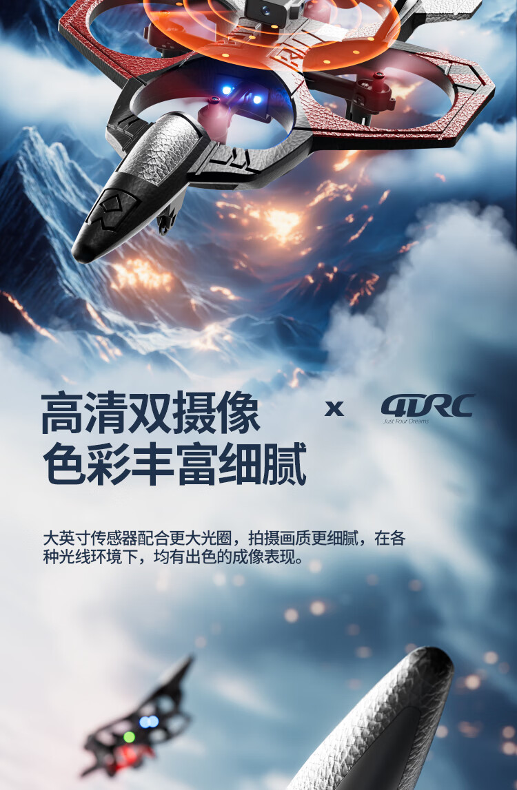 4DRC非大疆无人机高清航拍遥控飞机儿童玩具男孩战斗机儿童新年礼物 2025新款【四轴战机】双电礼盒