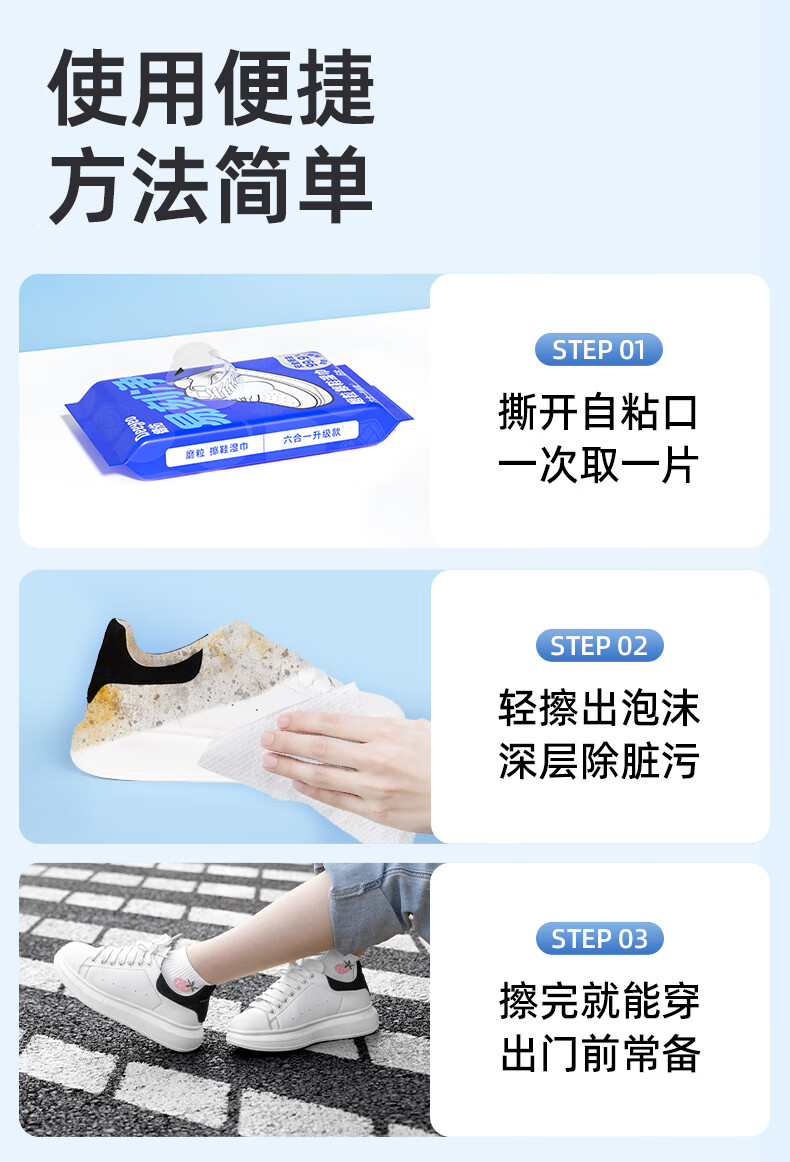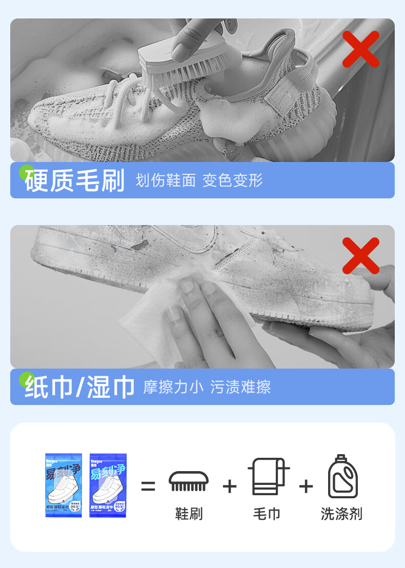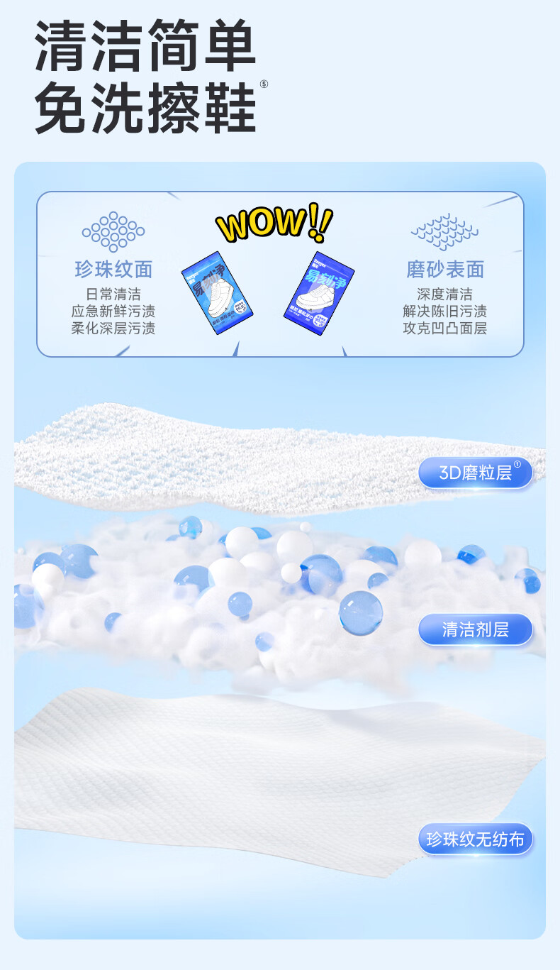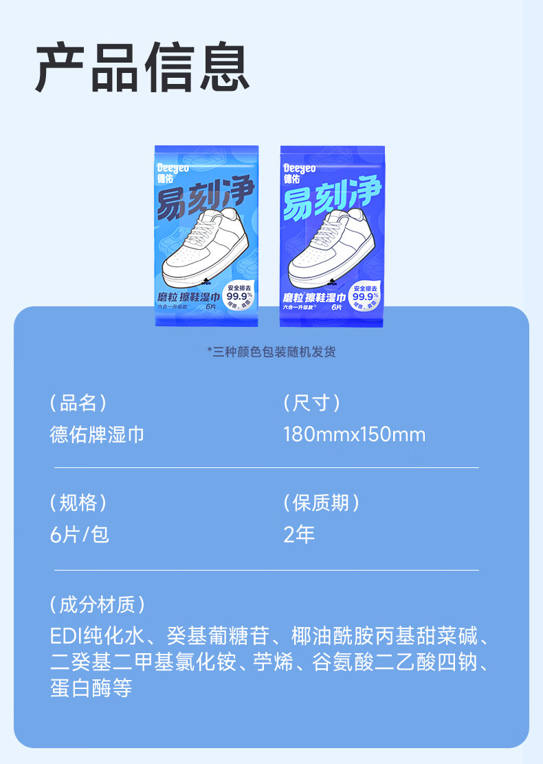 德佑易刻净擦鞋湿巾6片*9包 小白鞋清洁去污神器3D磨砂去渍湿纸巾