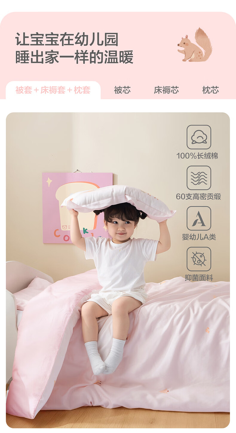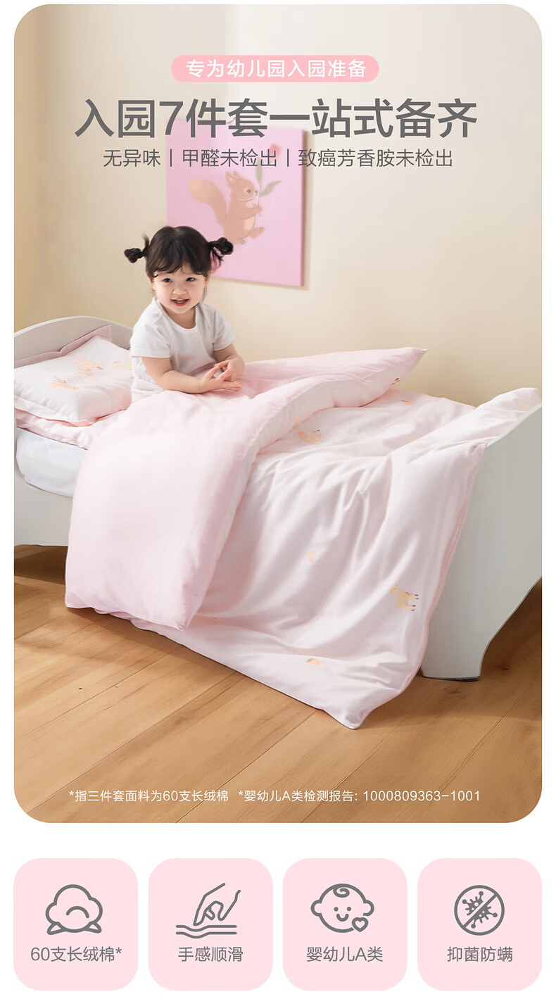 水星家纺幼儿园长绒棉抗菌套组·森林畅游七件套 幼儿园长绒棉抗菌套组·森林畅游 床笠款 60cm×135cm