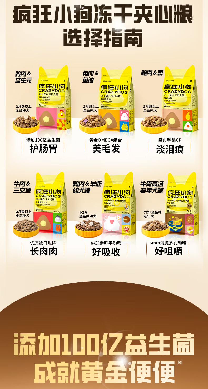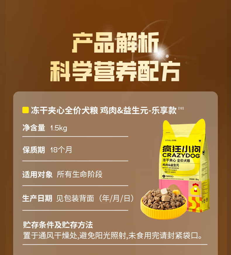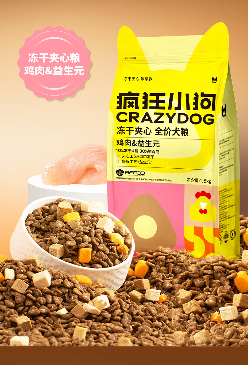 疯狂小狗小耳朵冻干夹心狗粮泰迪比熊中小型幼成犬通用护肠胃1.5kg犬粮3斤