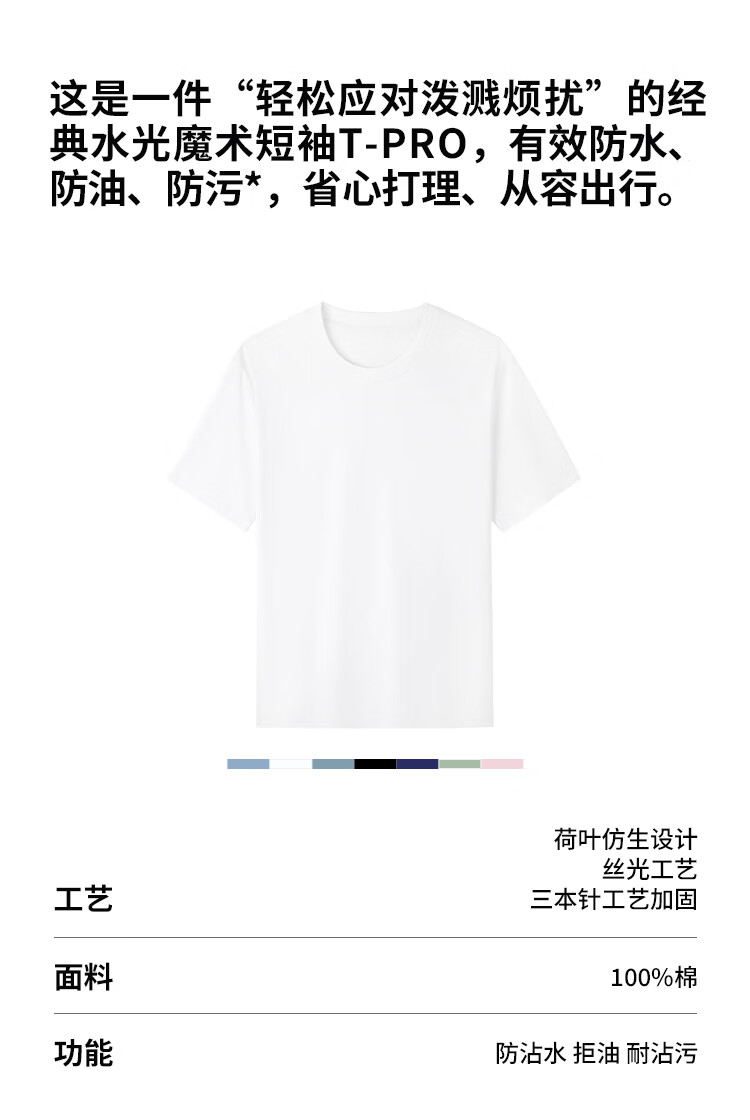 拇指白小T【水光魔术】二代三防短袖T恤春夏新款纯棉经典上衣 皓白男 2XL