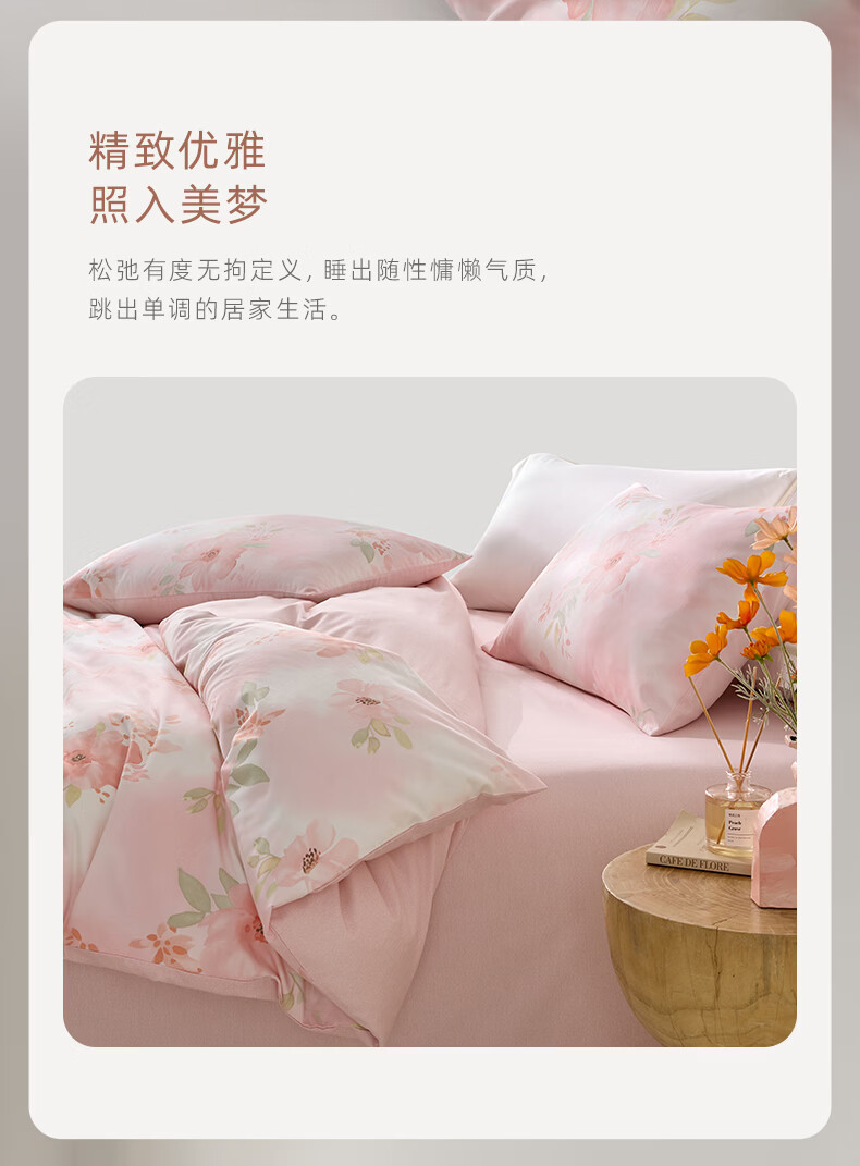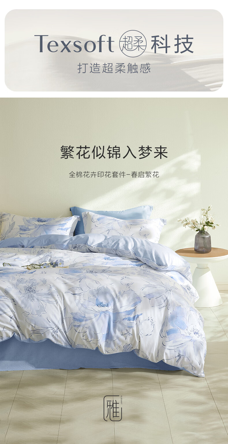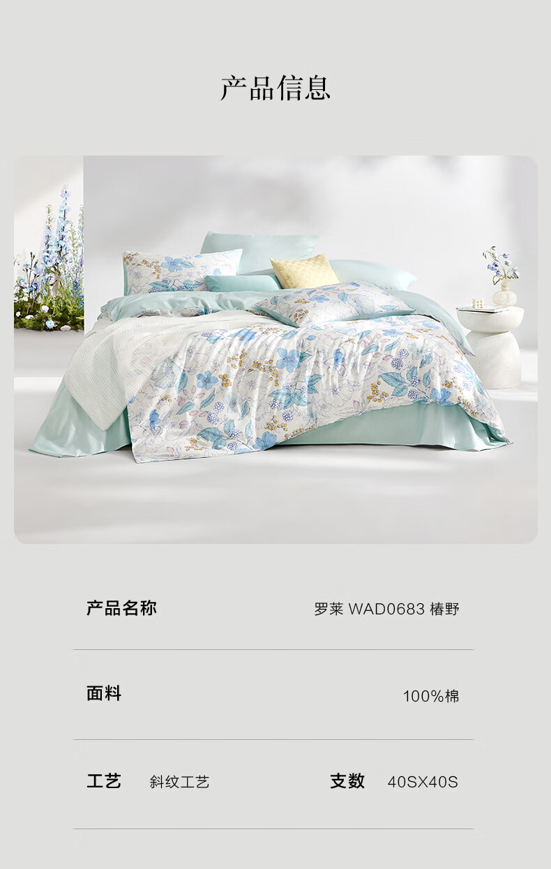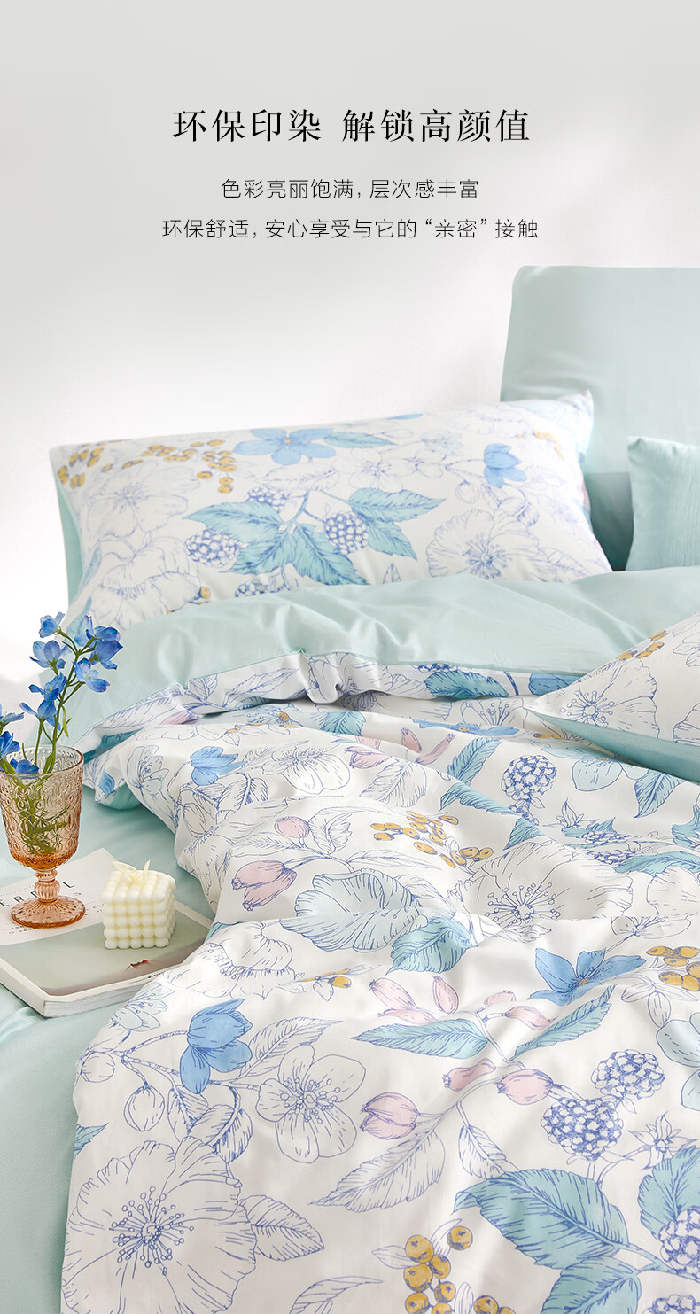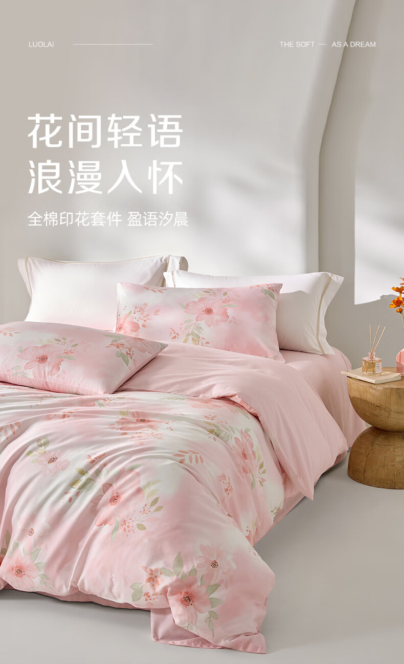 罗莱家纺全棉纯棉100棉床上四件套学生宿舍三件套 盈语汐晨 1.5米床/四件套 床单款 (被套200*230cm)