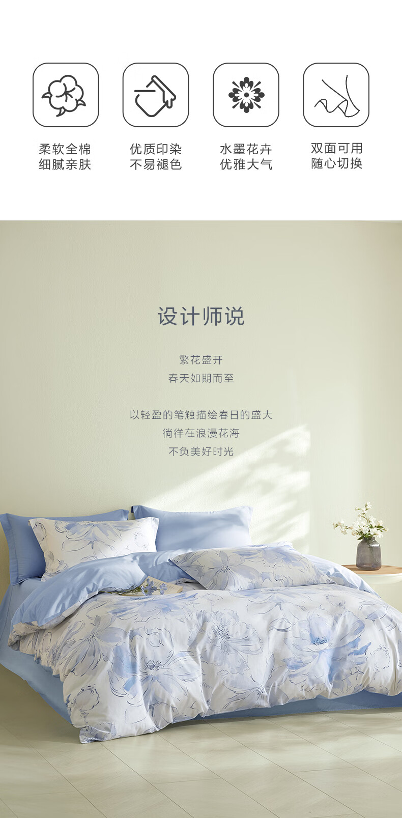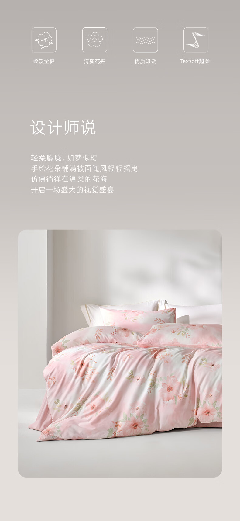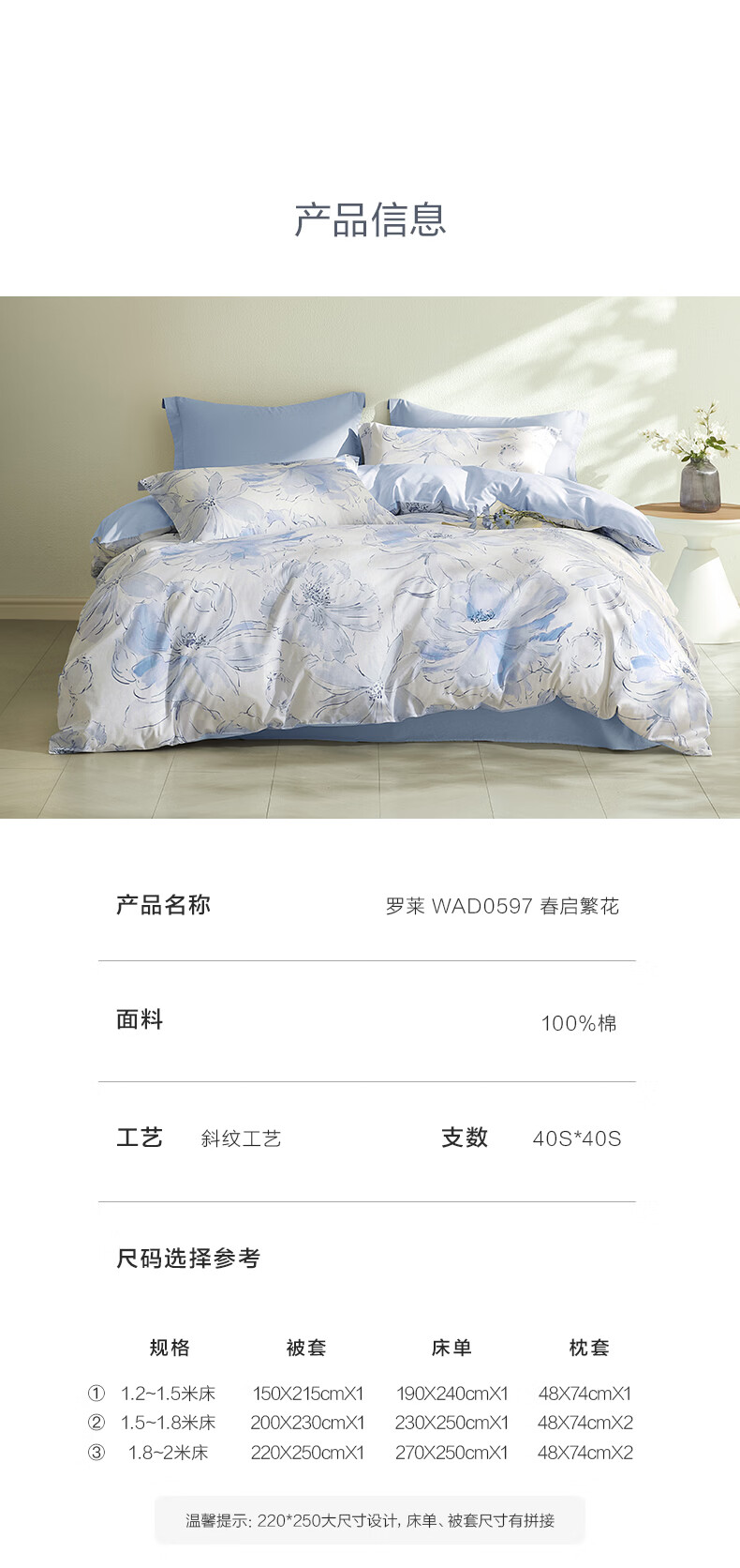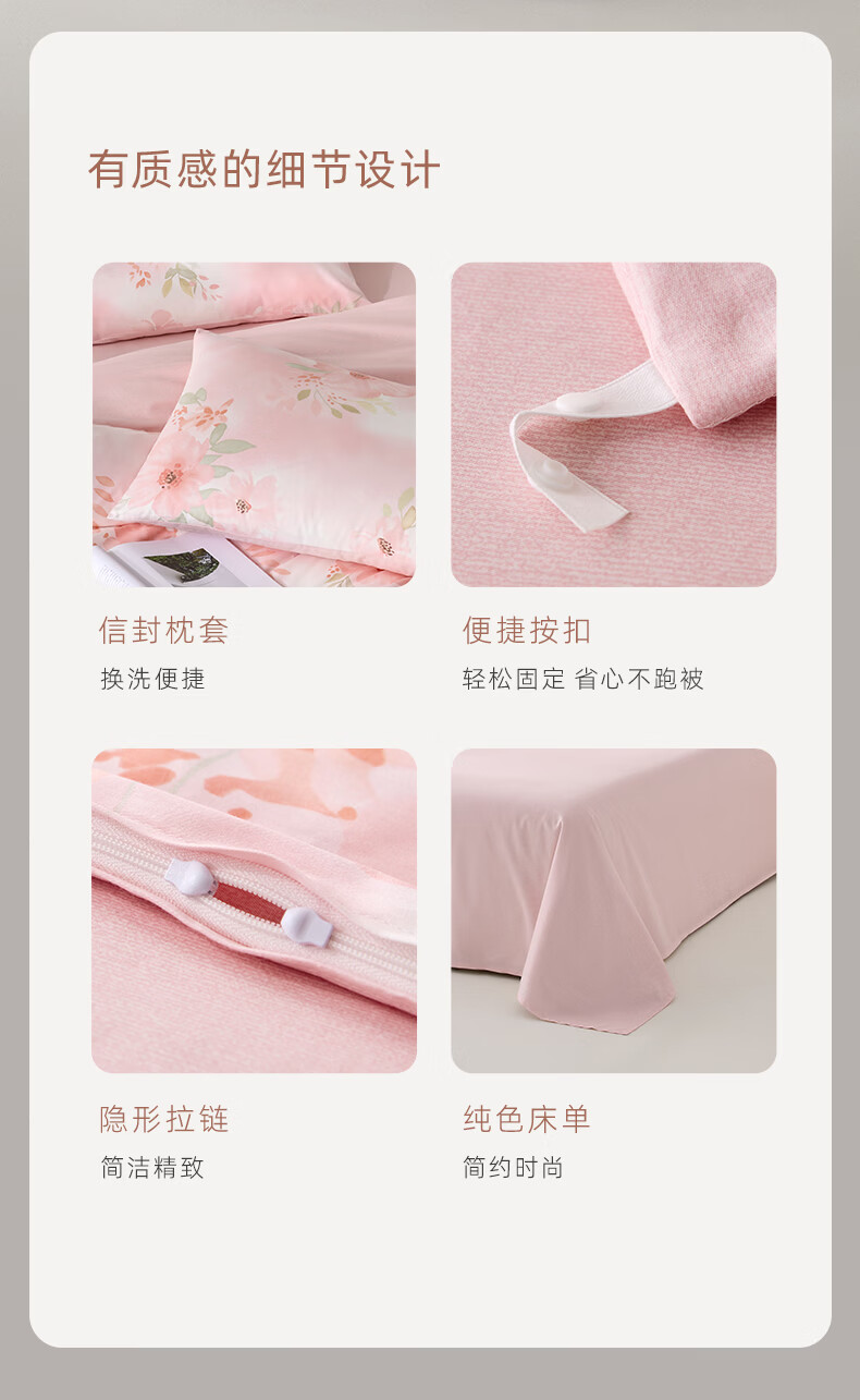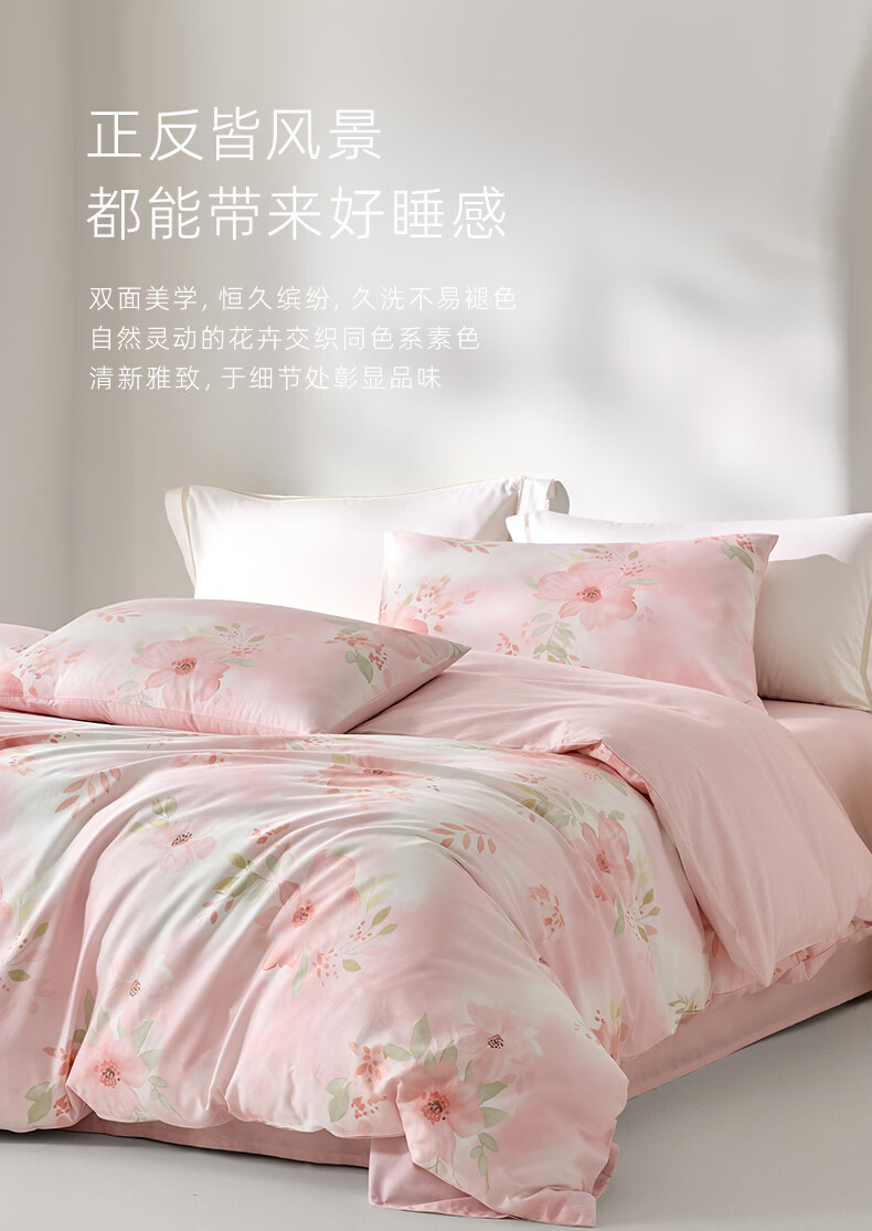 罗莱家纺全棉纯棉100棉床上四件套学生宿舍三件套 盈语汐晨 1.5米床/四件套 床单款 (被套200*230cm)