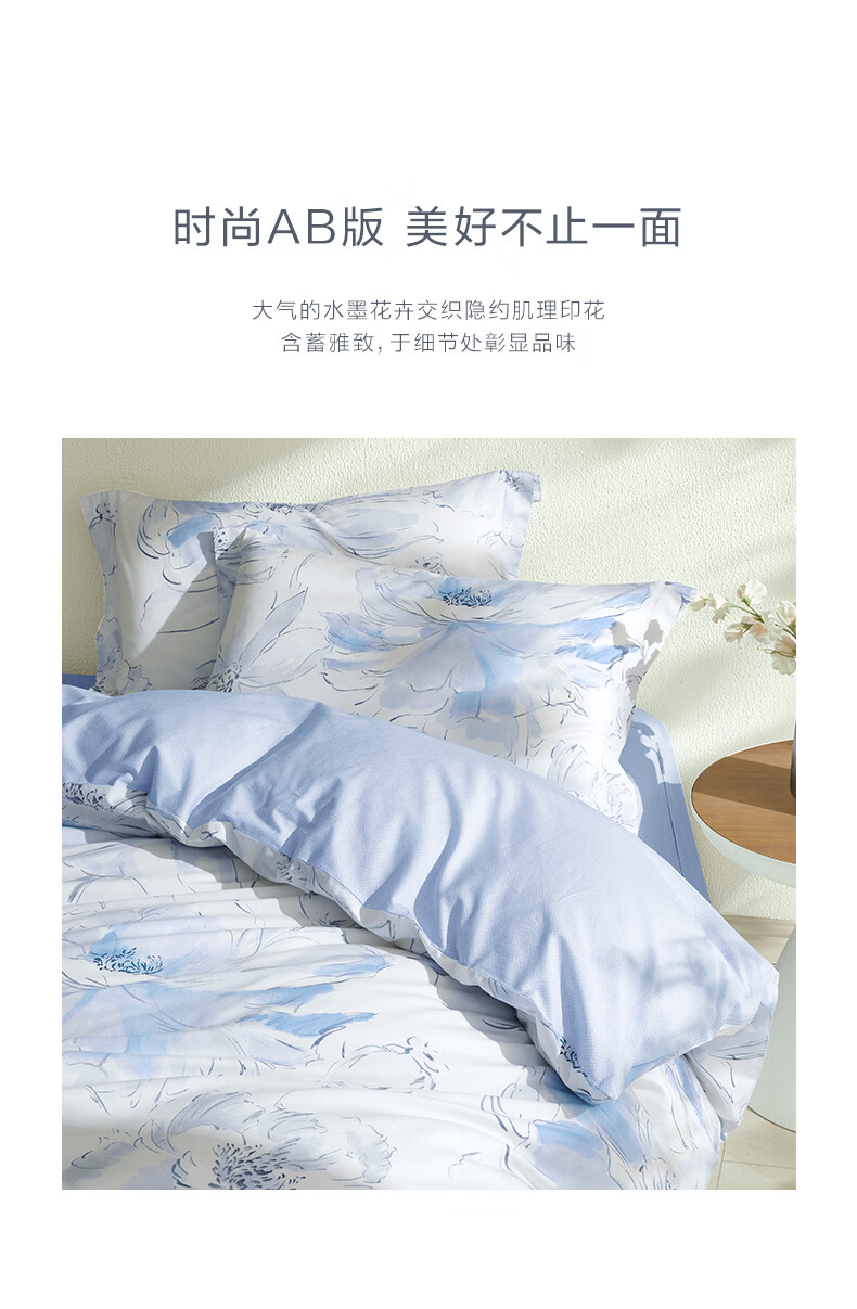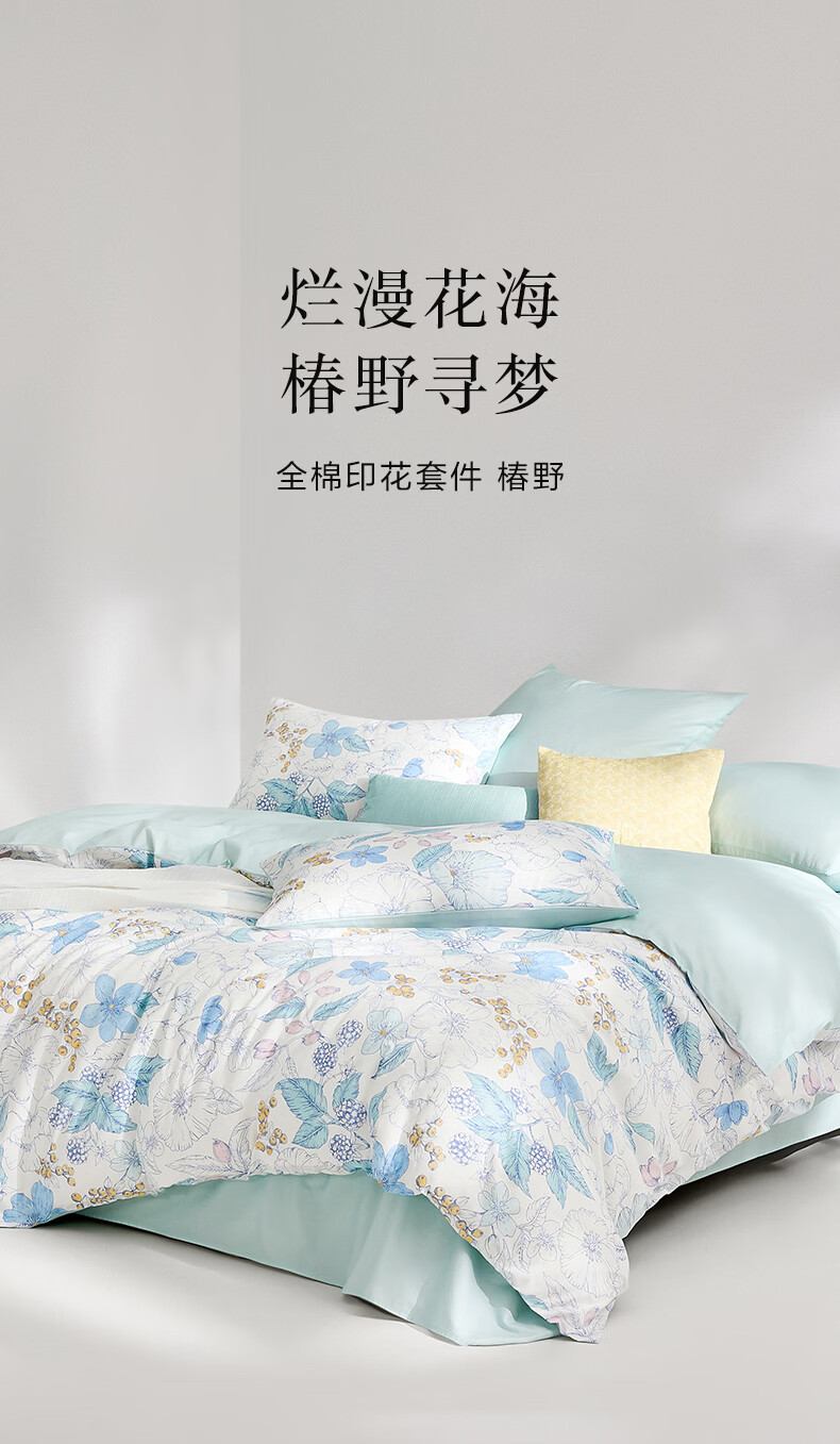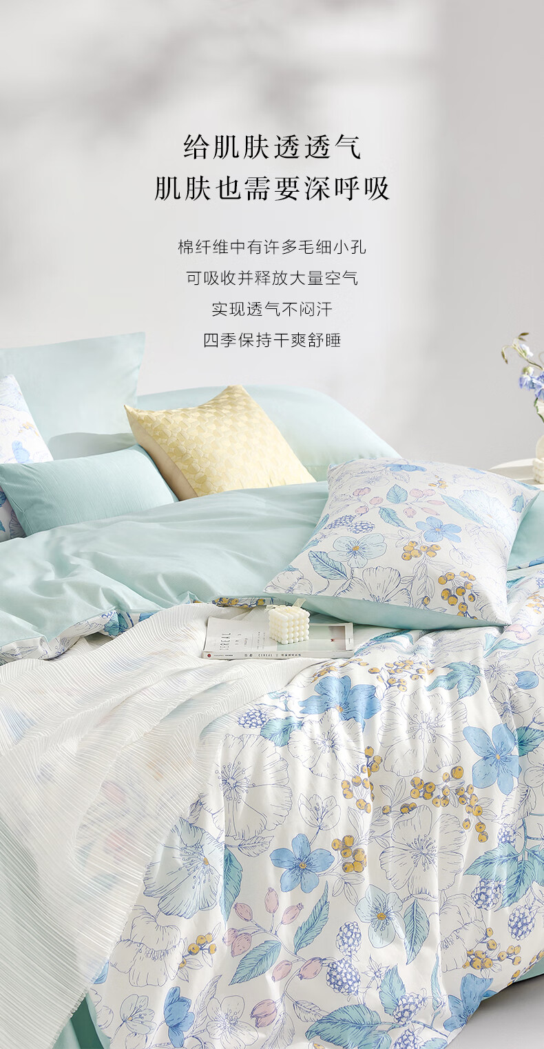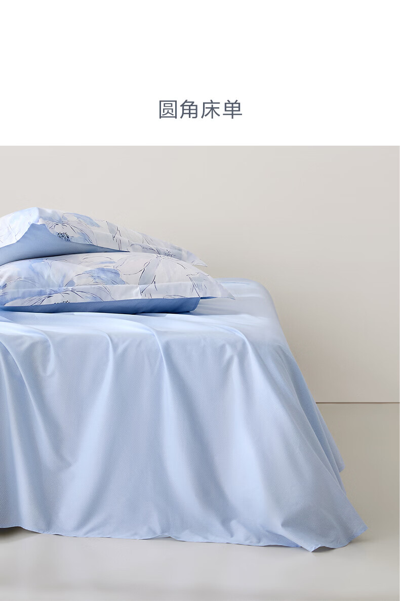 富安娜 60支长绒棉床上四件套纯棉100%纯棉全棉印花床品床单被套 【60支长绒棉】清风 1.8米 床单款 (被套230*229cm)