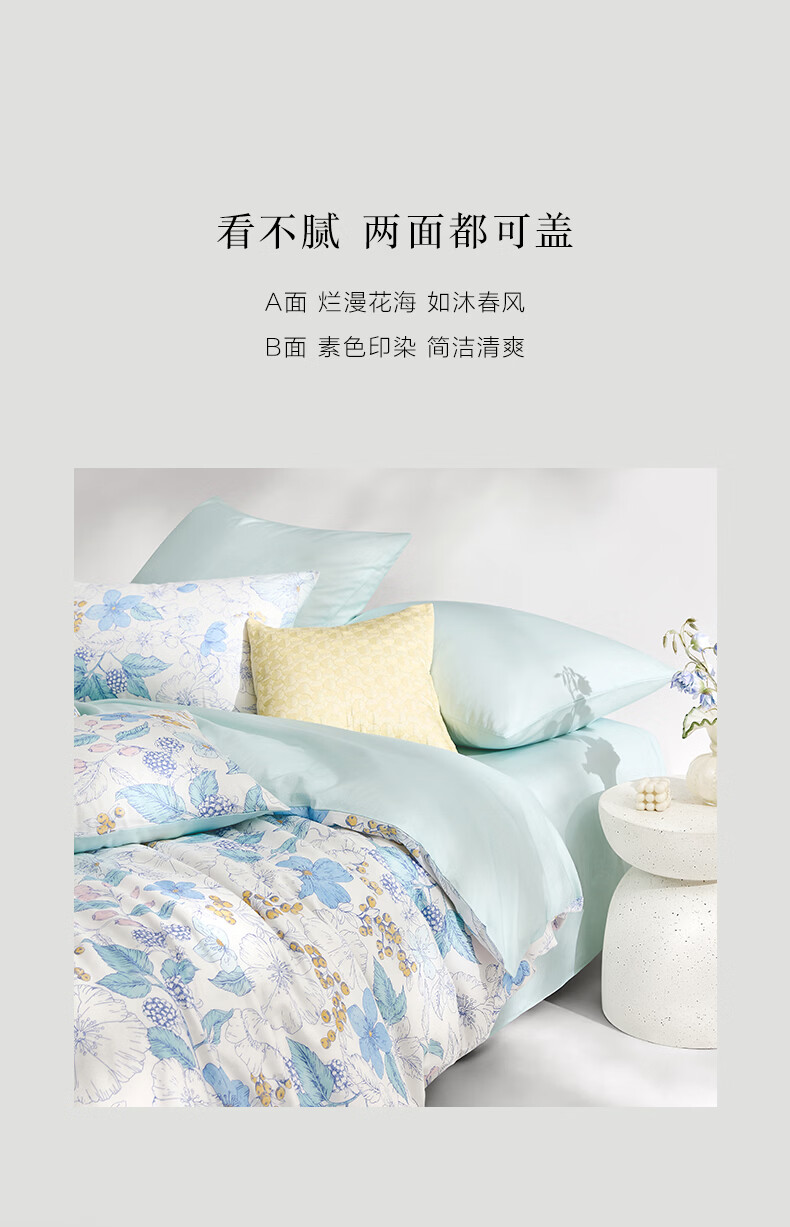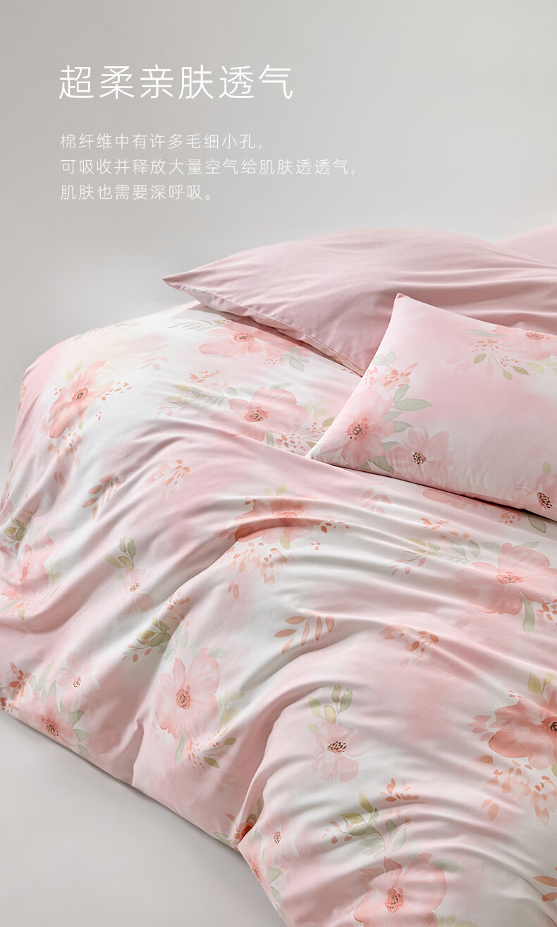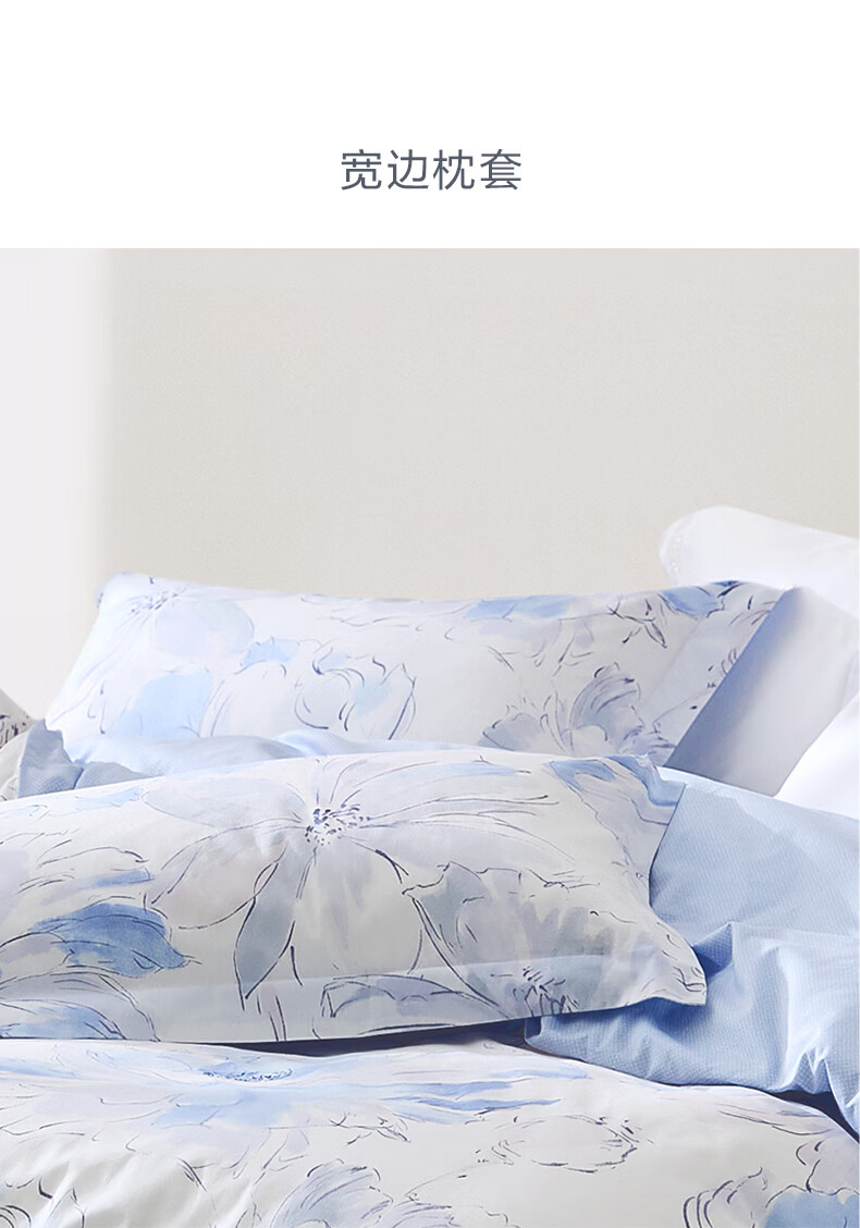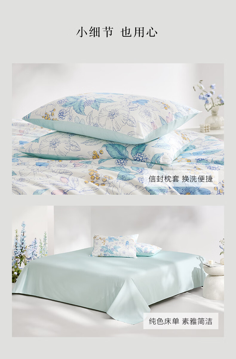 富安娜 60支长绒棉床上四件套纯棉100%纯棉全棉印花床品床单被套 【60支长绒棉】清风 1.8米 床单款 (被套230*229cm)