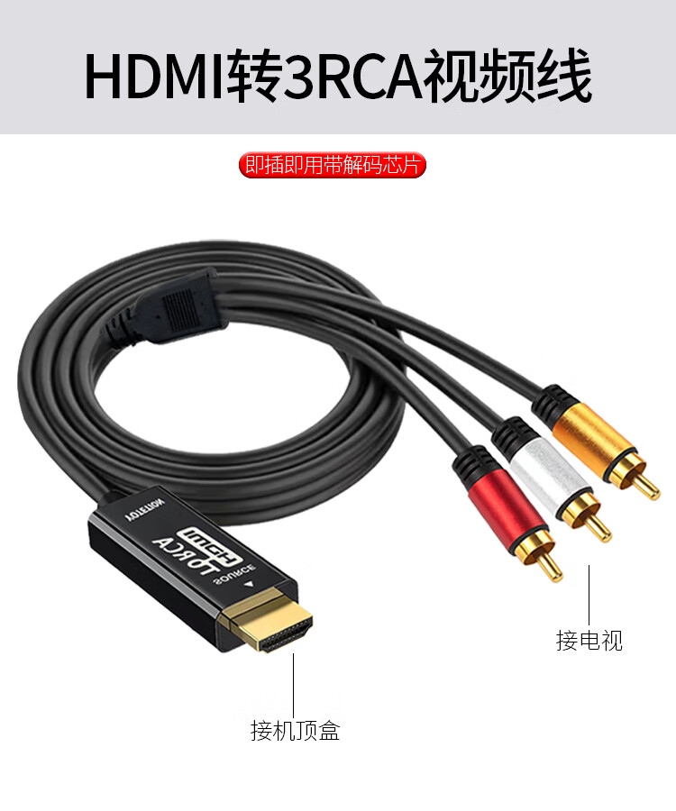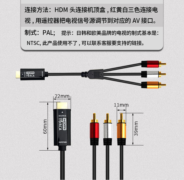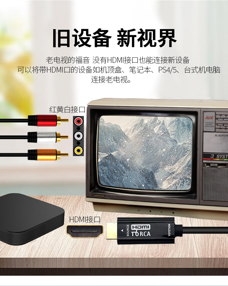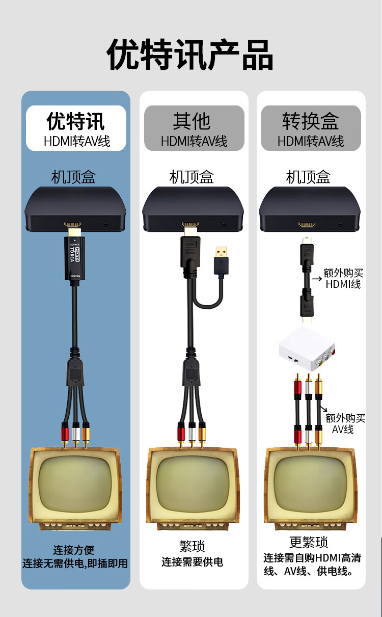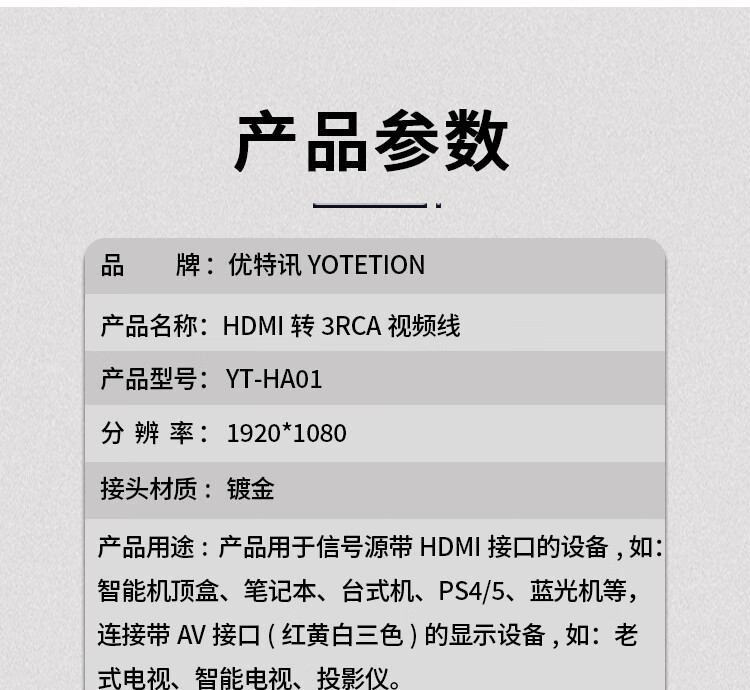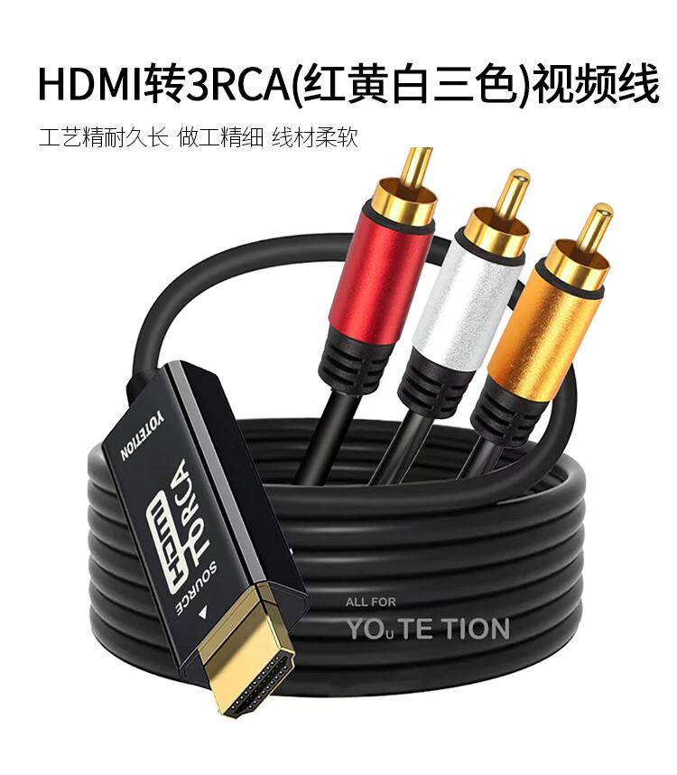 优特讯HDMI转AV线高清转3RCA视频线机顶盒笔记本电脑台式机PS4接老电视投影仪连接线 即插即用YT-HA01黑 HDMI转AV(红黄白三色)YT-HA01 3米