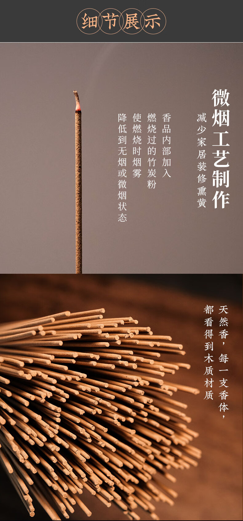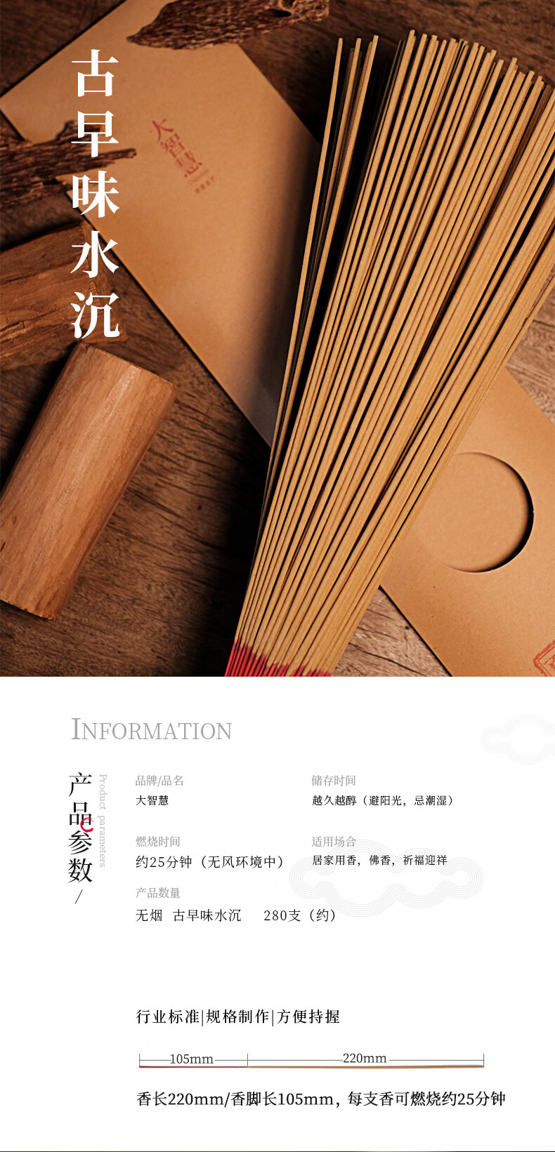大智慧 无烟供佛香竹签香 微烟室内家用供香观音财神 天然沉檀香熏香 海南沉香32.5cm/600支/有染香脚