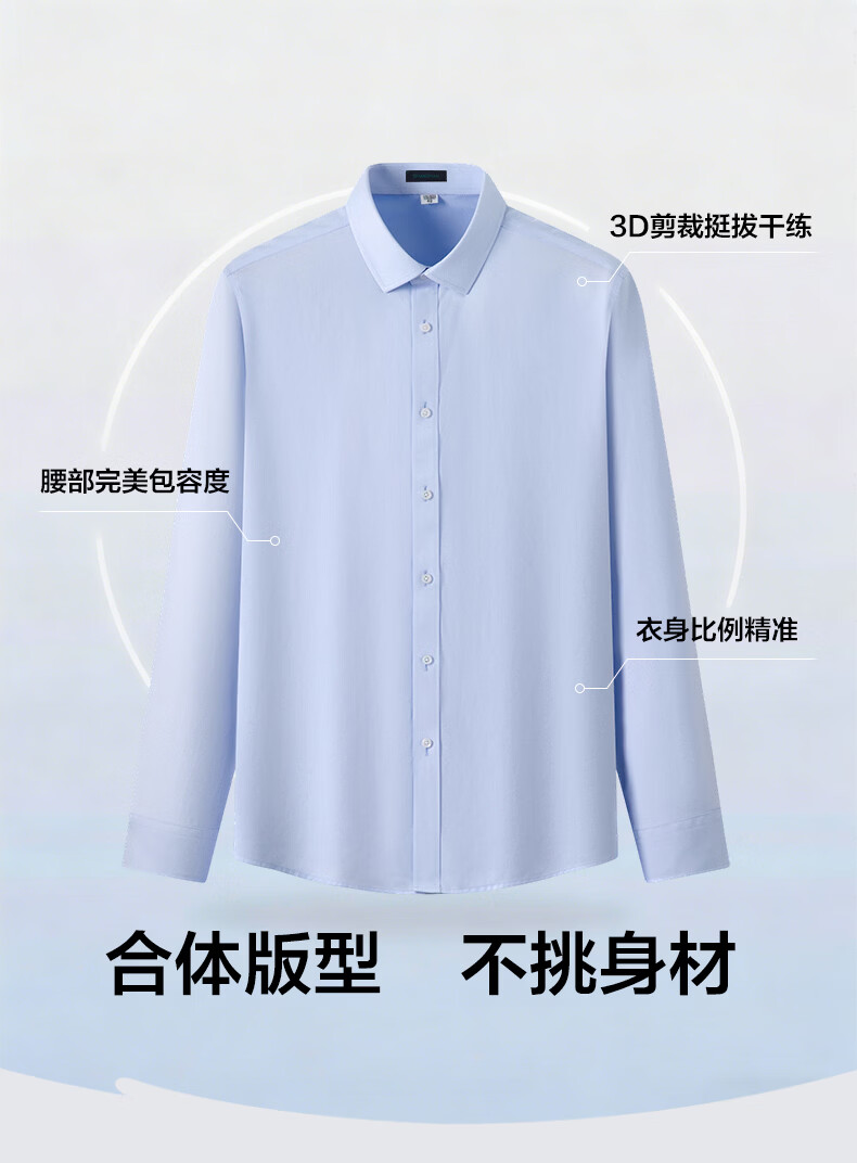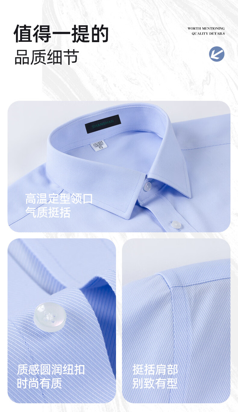 SHANSHAN杉杉春季新款男士纯棉长袖衬衫免烫抗皱纯色商务休闲衬衣 白色 38 /165/84A