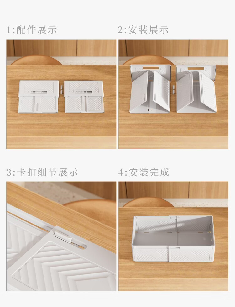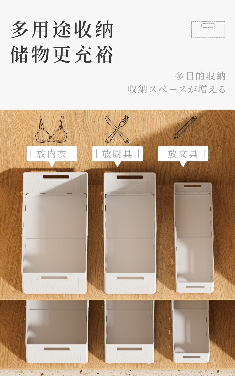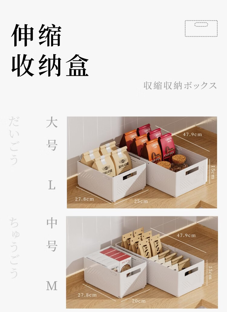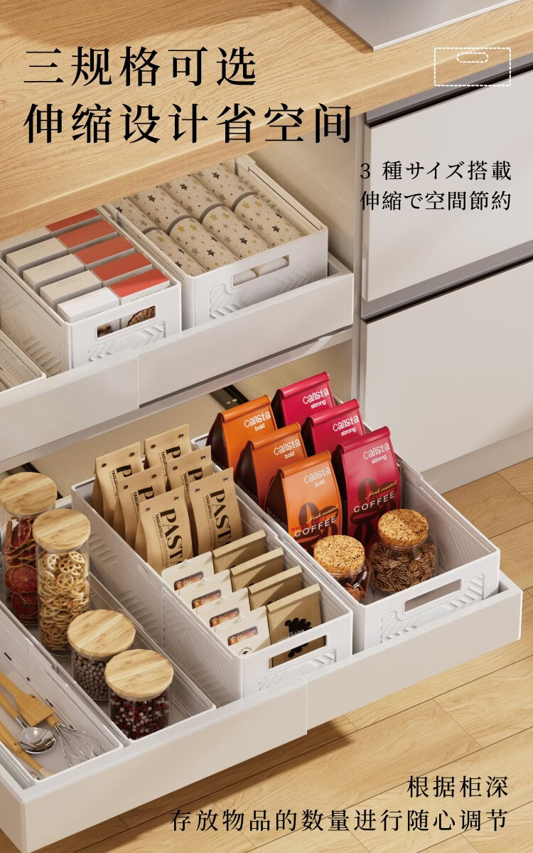 纳份爱可伸缩橱柜收纳盒抽屉式厨房收纳盒可折叠直角桌面杂物整理储物盒 【白色小号-三只装】伸缩扩容 【可折叠/多用途收纳】