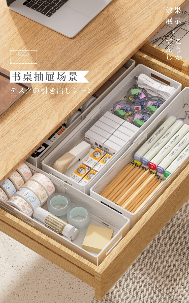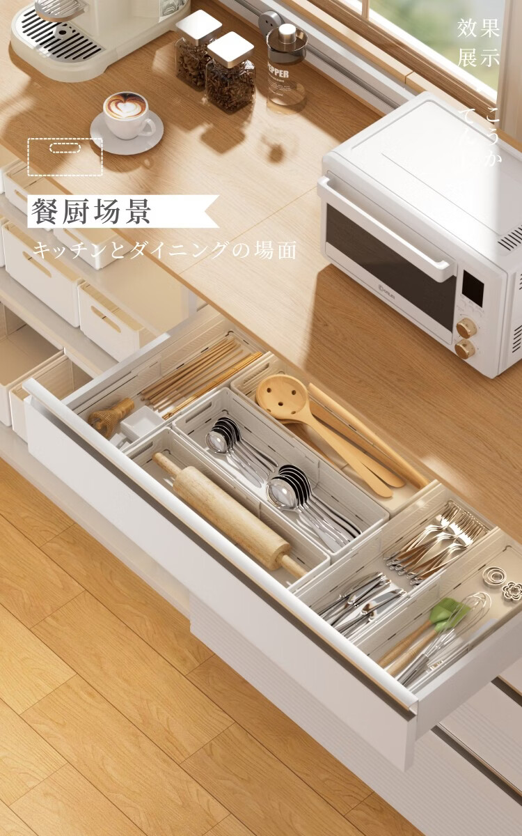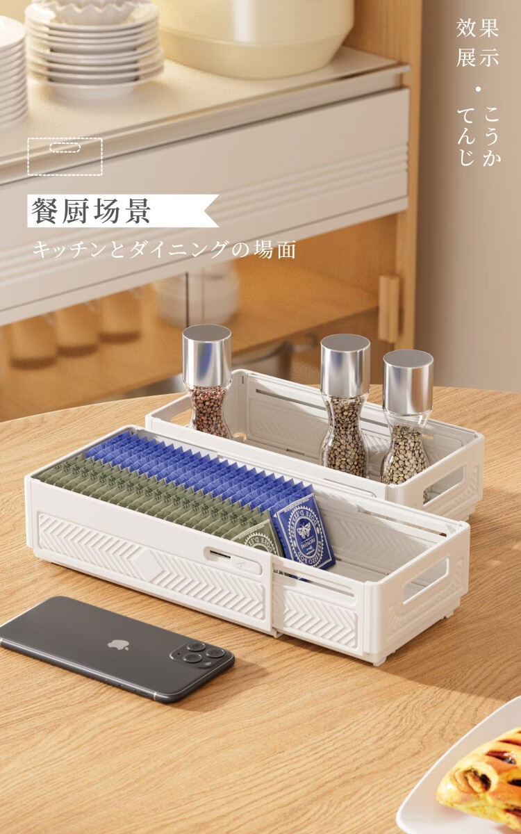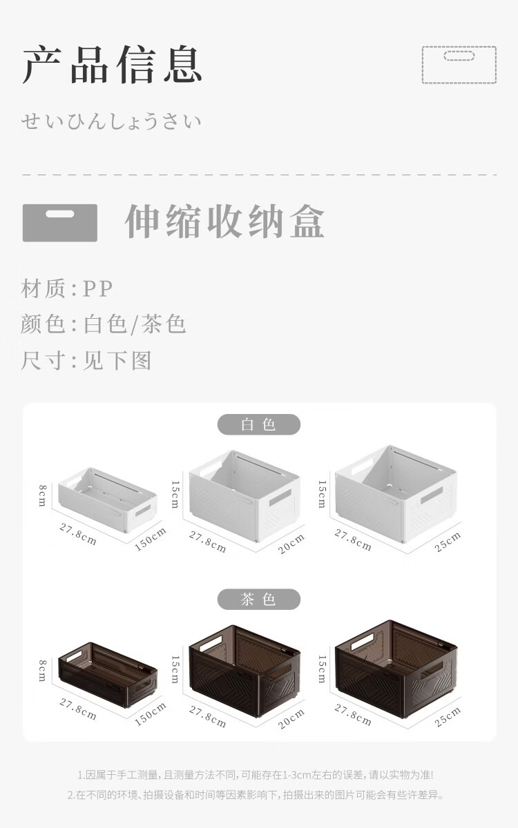 纳份爱可伸缩橱柜收纳盒抽屉式厨房收纳盒可折叠直角桌面杂物整理储物盒 【白色小号-三只装】伸缩扩容 【可折叠/多用途收纳】