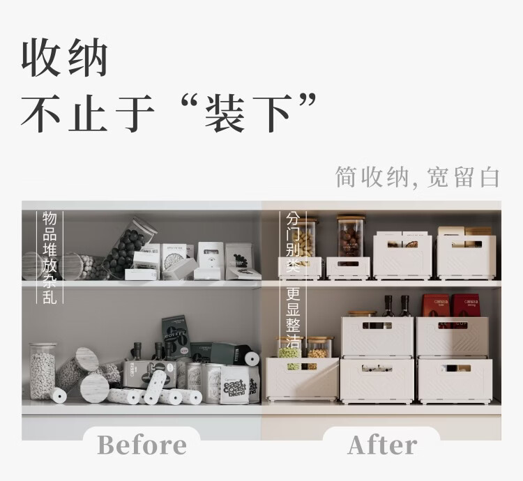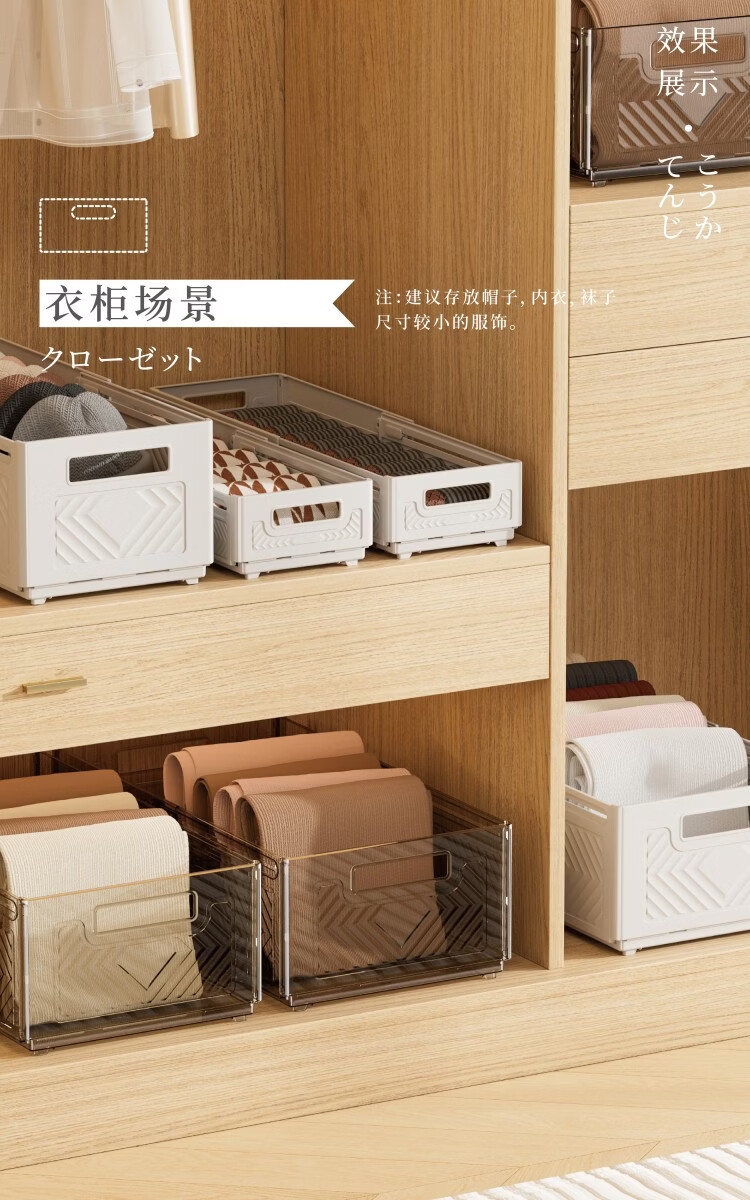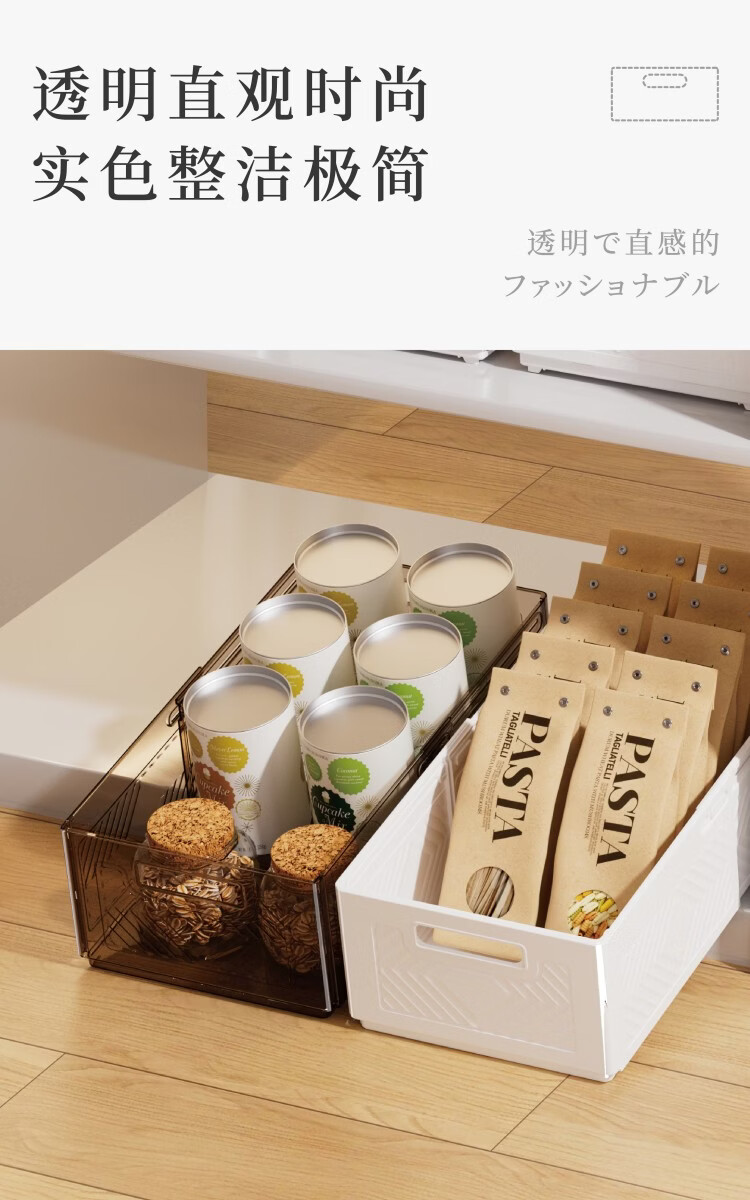 吱凡日本深柜厨房收纳盒长方形零食橱柜杂物整理盒桌面直角储物收纳筐 【中号】2个装【特厚】