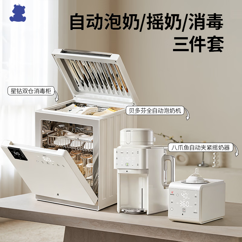 小白熊双舱婴儿消毒柜2035+奶粉冲泡机5071+摇奶暖奶器三合一喂养台5109