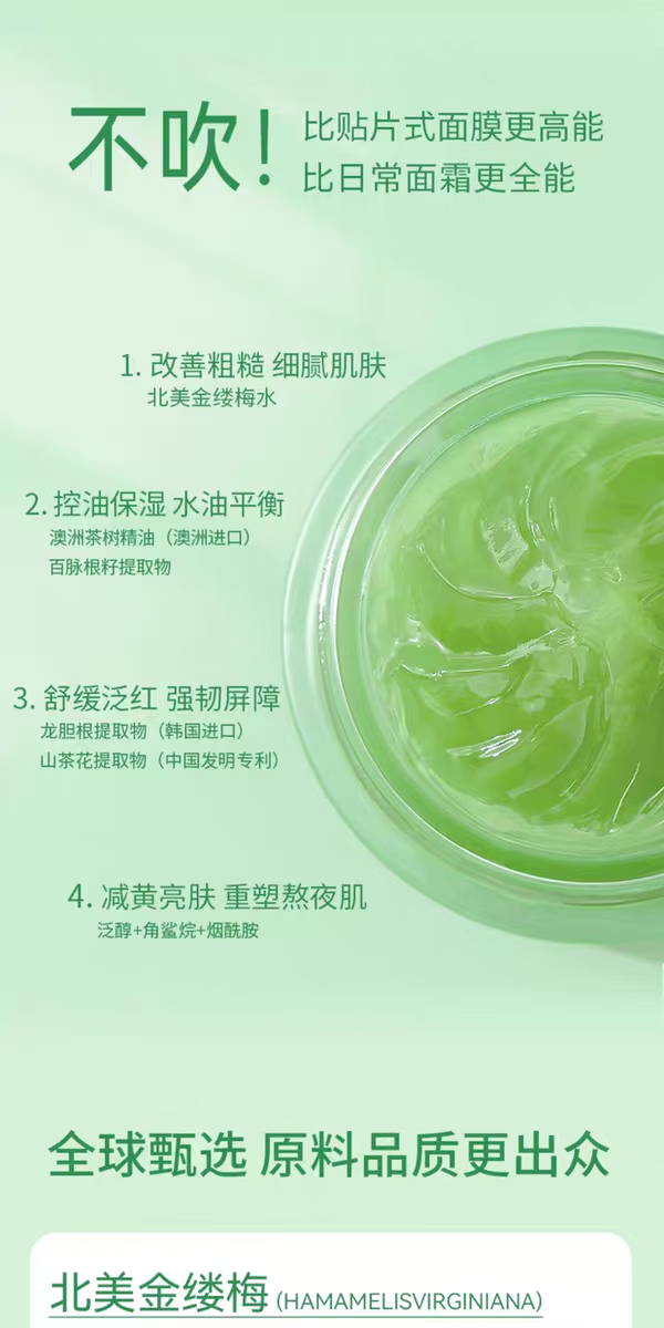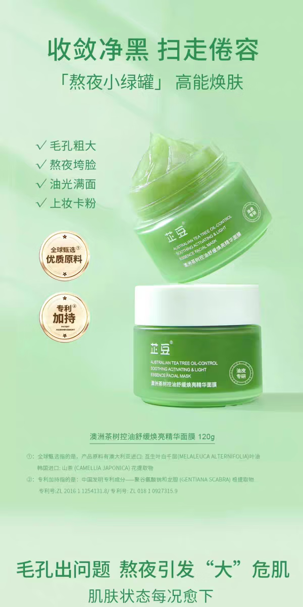 芷豆小绿罐精华面膜细腻毛孔补水保湿舒缓焕亮黄气暗沉熬夜救急涂抹式 芷豆小绿罐面膜120g*1瓶