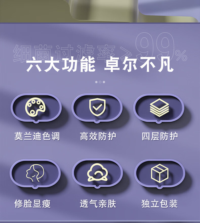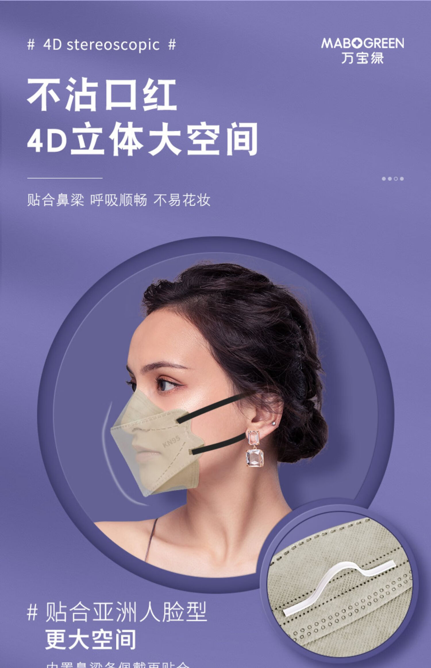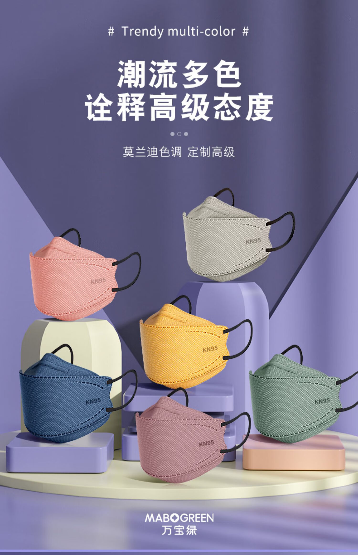 万宝绿kn95口罩3d立体2025新款时尚版高颜值莫兰迪色口耳罩女男潮款成人 KN95级【莫兰迪六色混搭】60枚独立包装