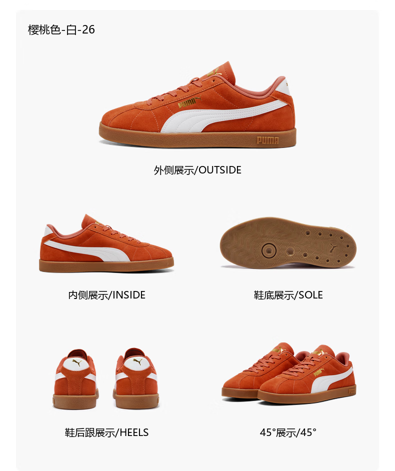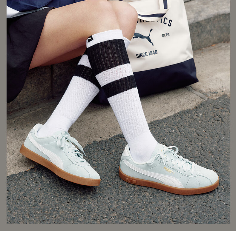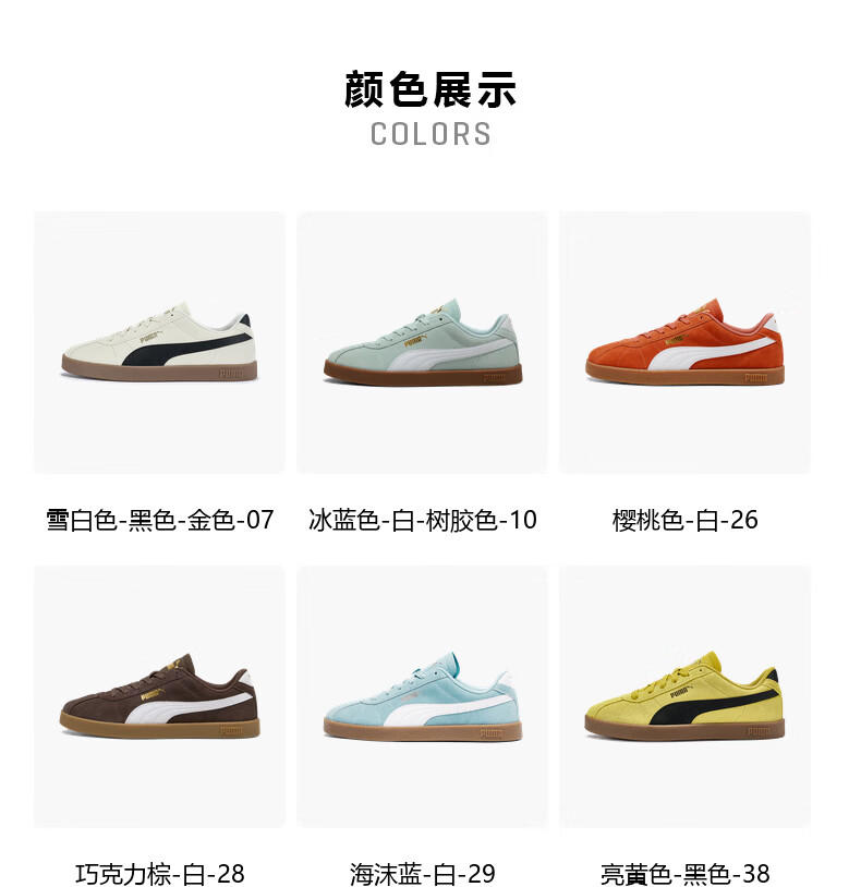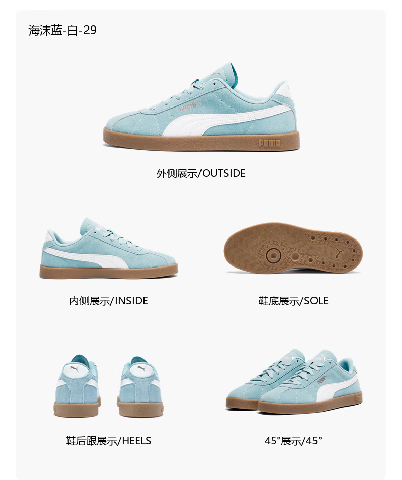 彪马(PUMA)德训鞋|复古棕色薄底T头鞋男女新款春季休闲鞋CLUB397444 冰蓝色-白-树胶色-10 38
