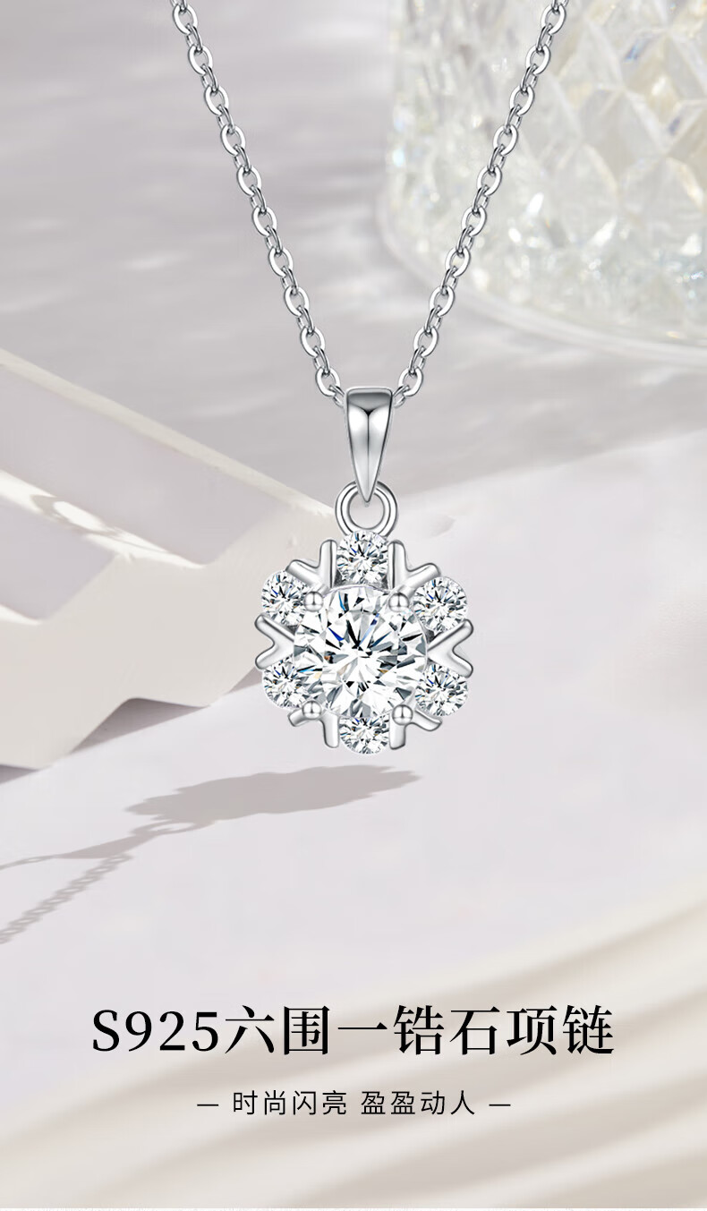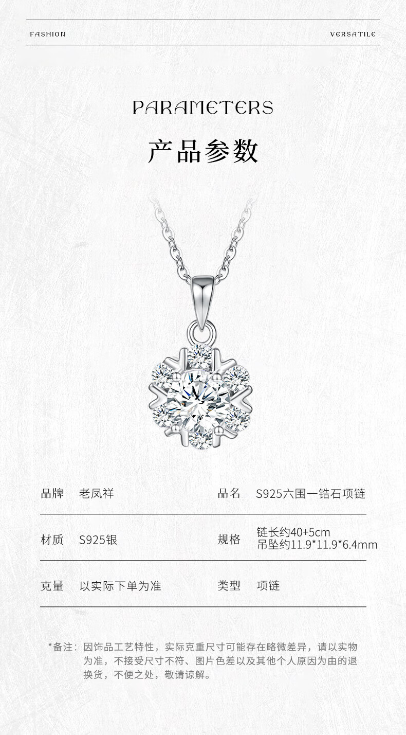 老凤祥S925银六围一锆石银项链时尚简约轻奢风节日礼物送女友老婆 S925银六围一锆石纯银项链
