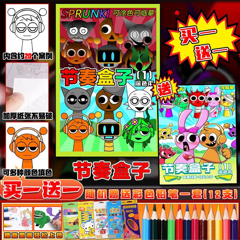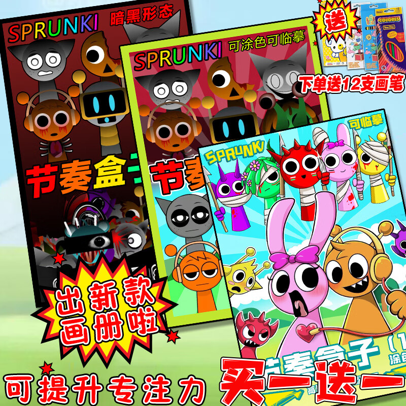 节奏盒子描画本安静书线稿儿童简笔画填色图画本控笔卡通图画本 豪华全系列5本