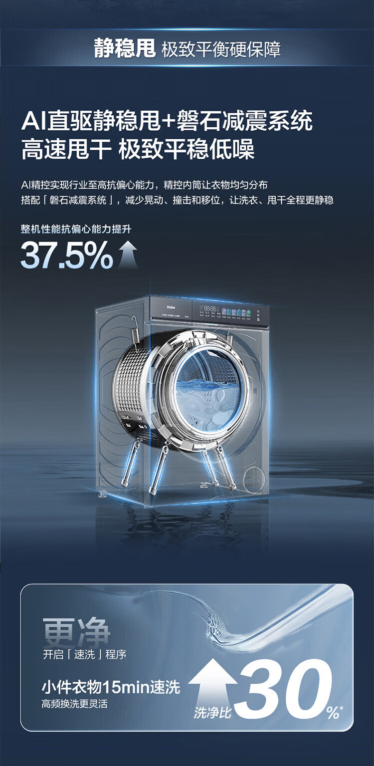 海尔(Haier)云溪5.0滚筒洗烘套装 12KG 全自动滚筒洗衣机+双擎热泵烘干机A直驱双效除菌 D1