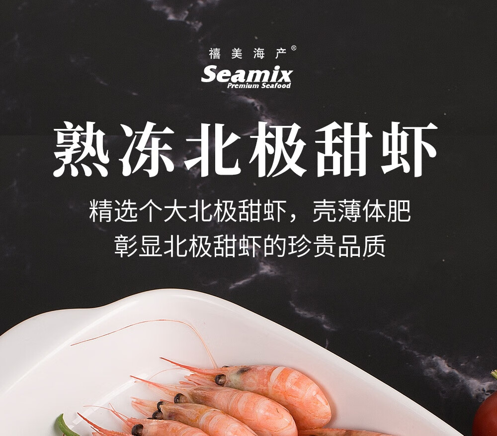 禧美海产熟冻北极甜虾净重3斤装/盒 150/180小号规格 MSC认证 轻食海鲜
