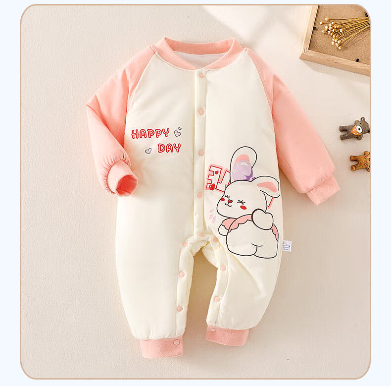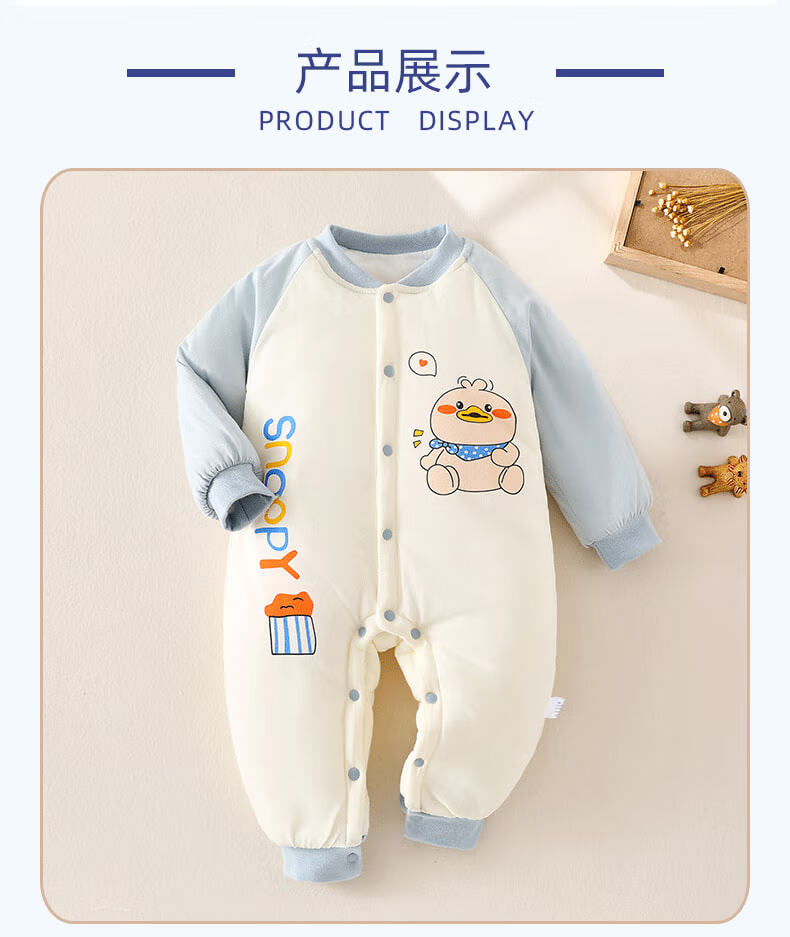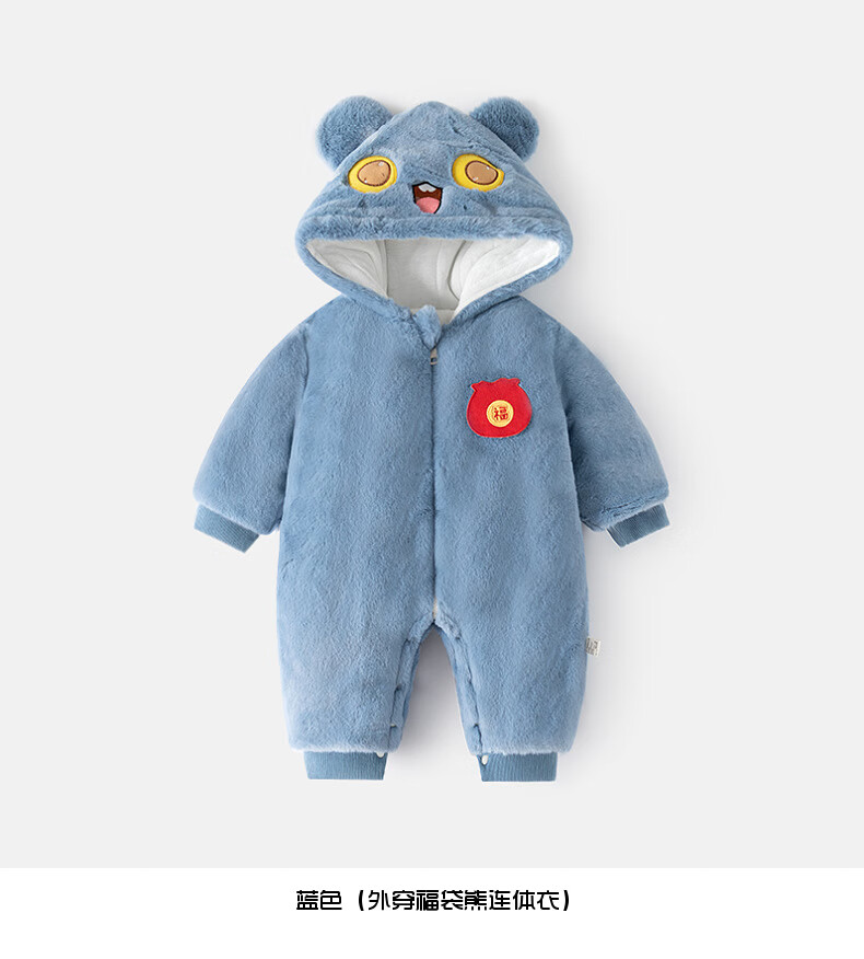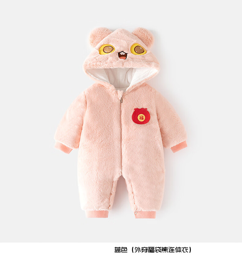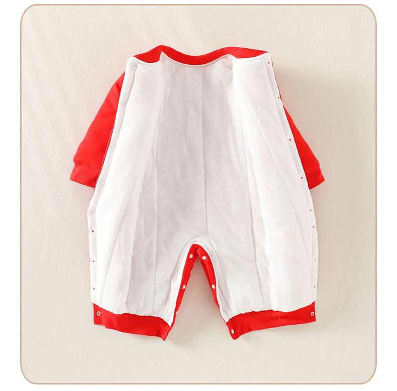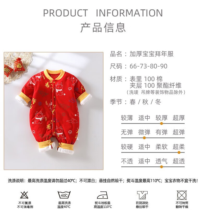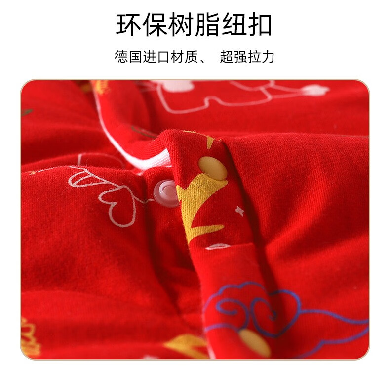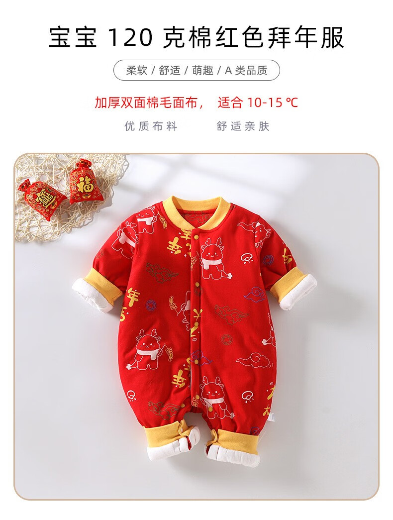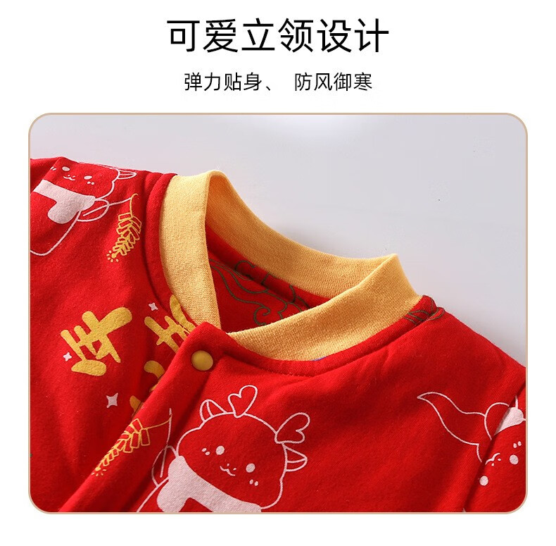 童米粒(TONMEELLY)婴儿衣服红色夹棉连体衣满月百天宝宝衣服拜年服卡通哈衣爬服 加厚乖乖龙 66cm