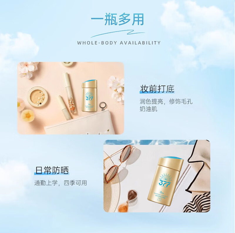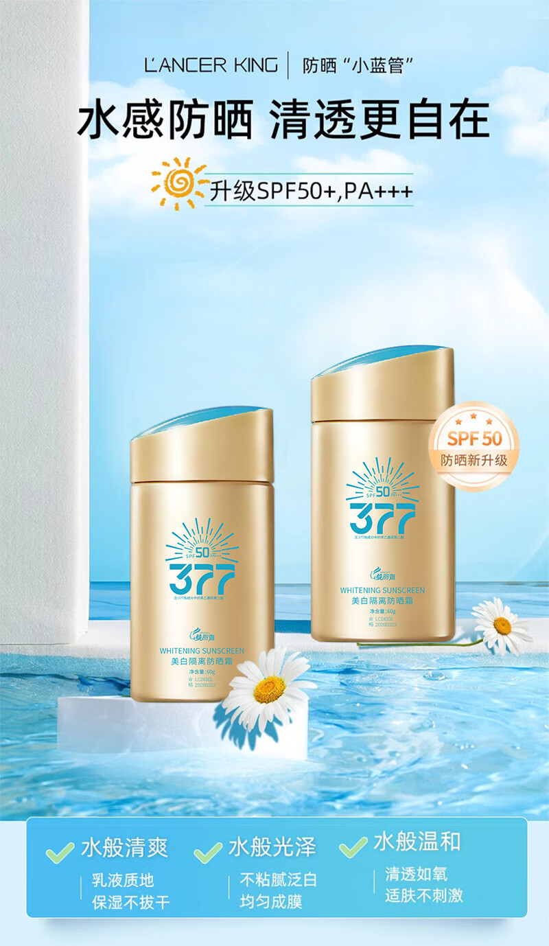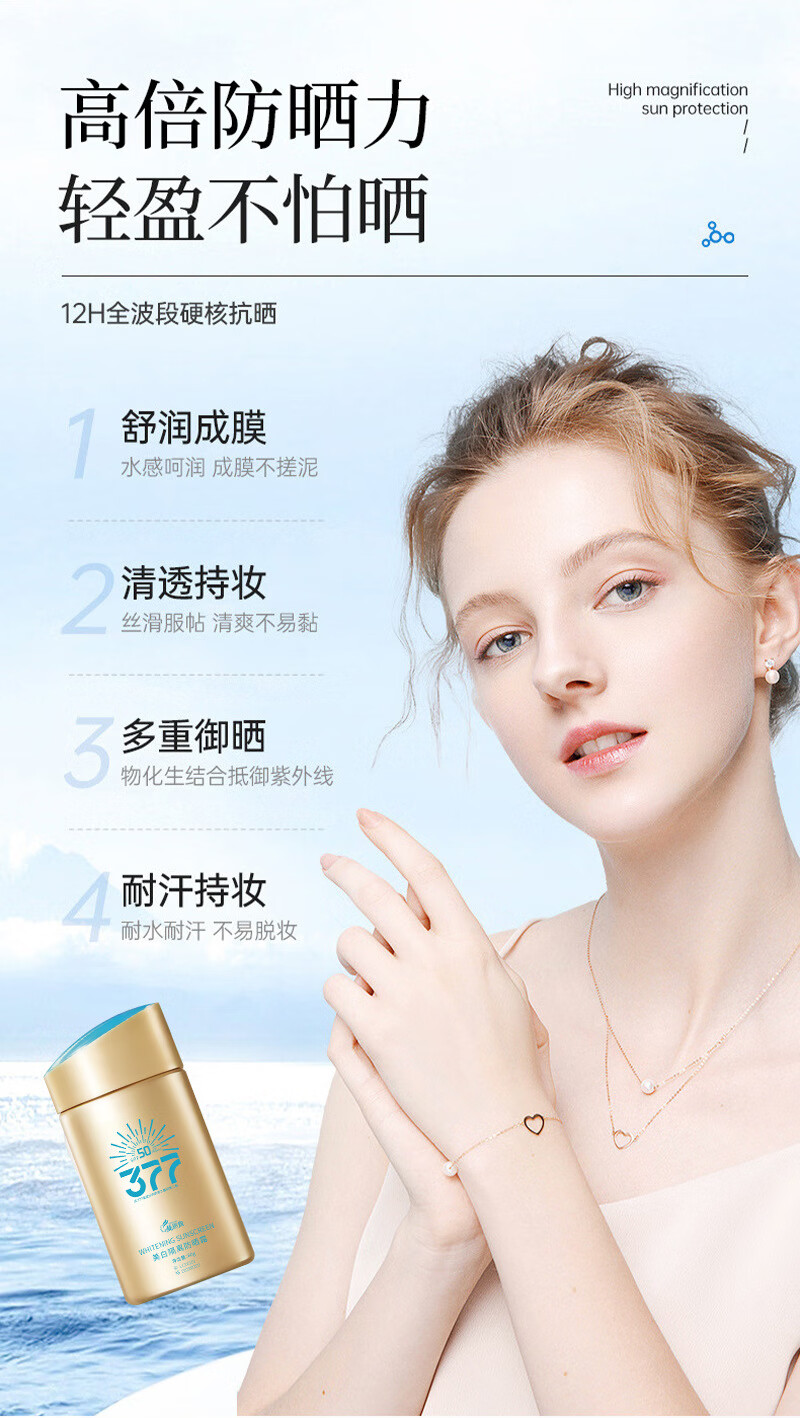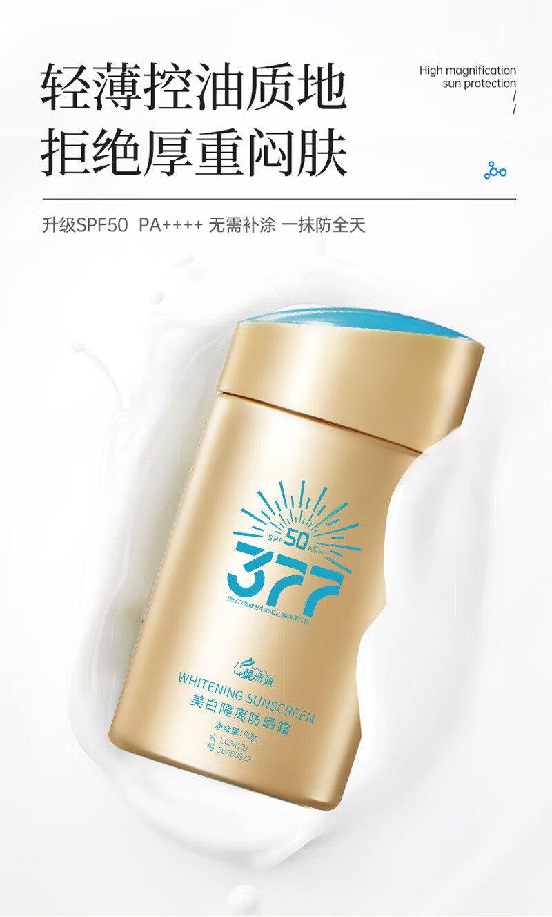 防晒霜防水防汗防晒小金瓶SPF50军训隔离紫外线面部全身正品 小金瓶美白隔离防晒霜60g*1瓶