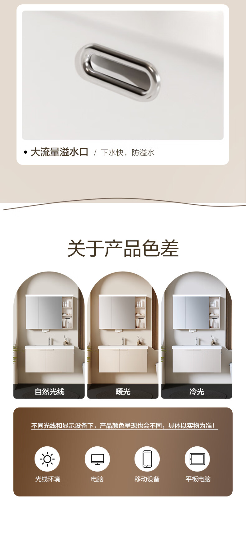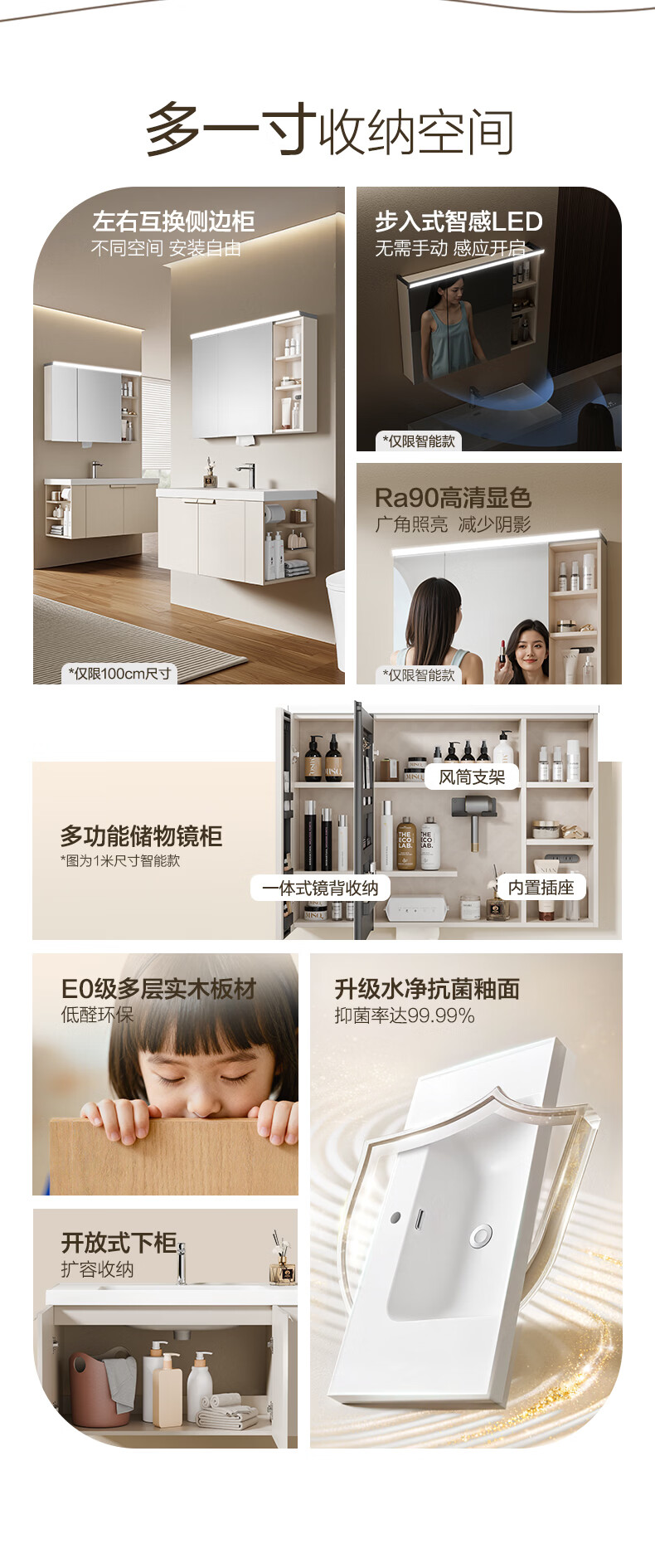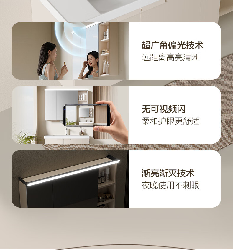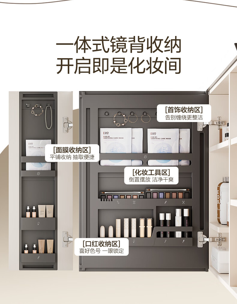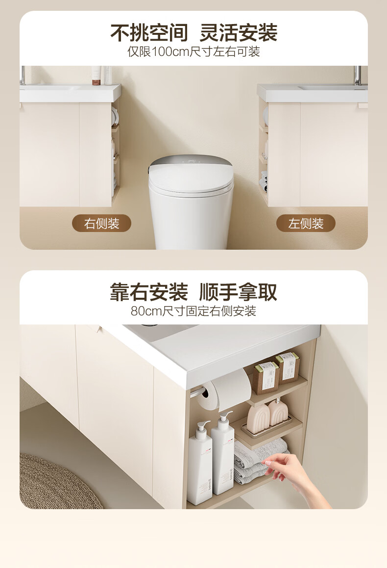 恒洁(HEGII)浴室柜 奶油风一体陶瓷台盆多功能收纳镜柜卫生间浴室柜BC2503S 【基础镜柜款】流云白80cm(不含龙头)
