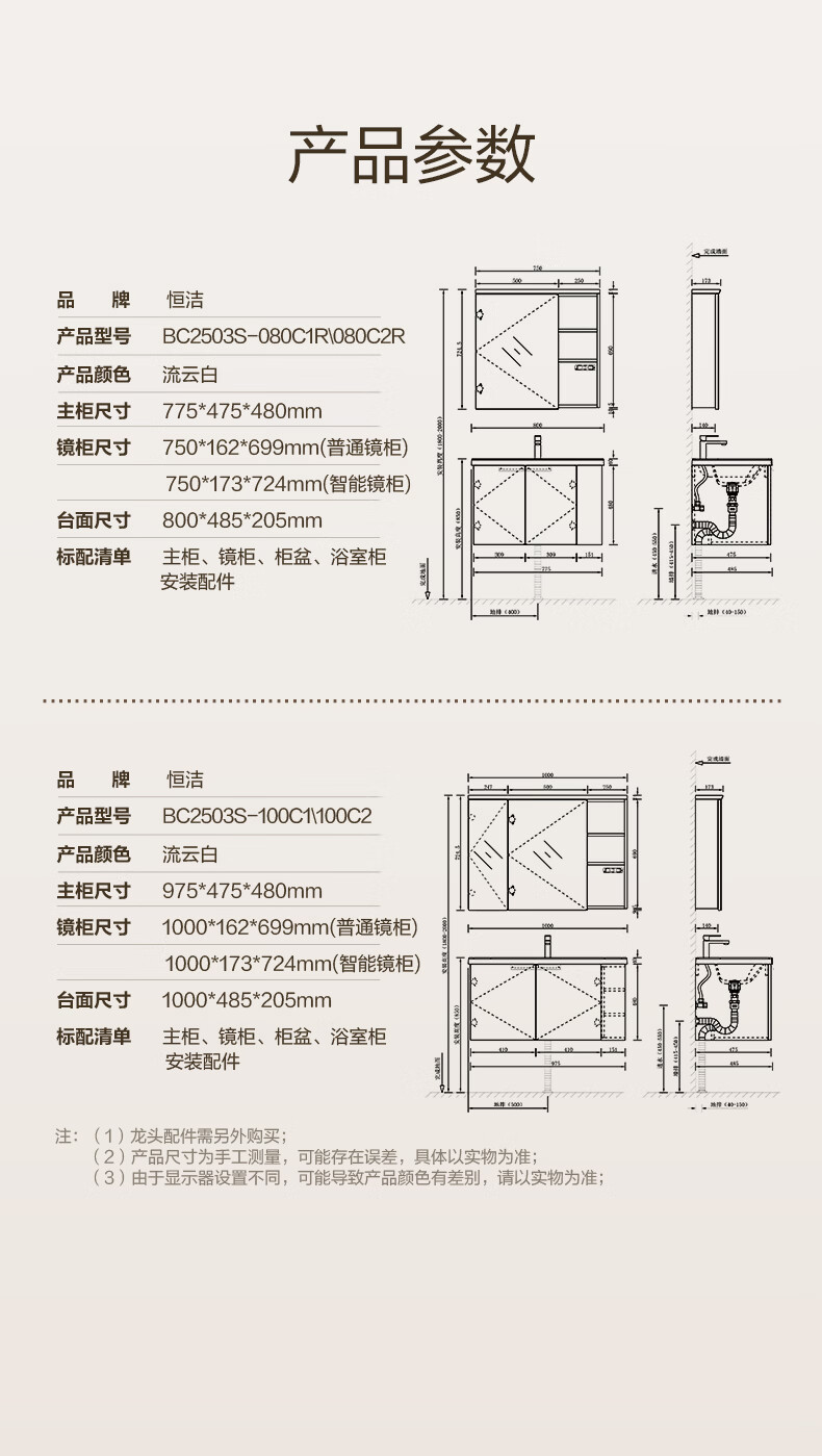 恒洁【单独主柜+盆不含镜柜】浴室柜主柜双开门大储物空间2503S 【主柜+盆不含镜柜】80CM
