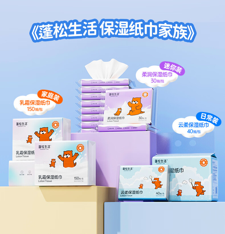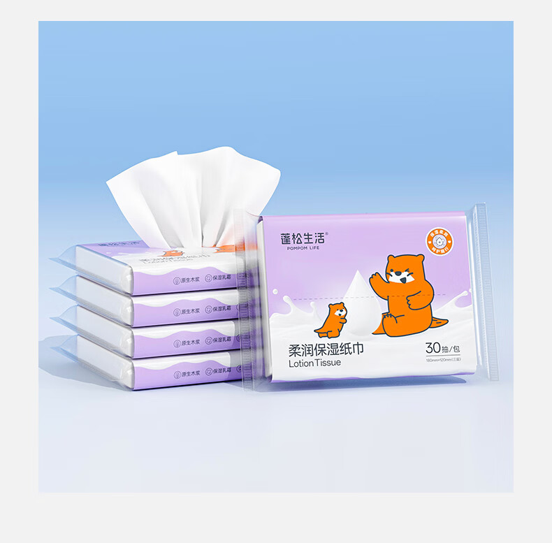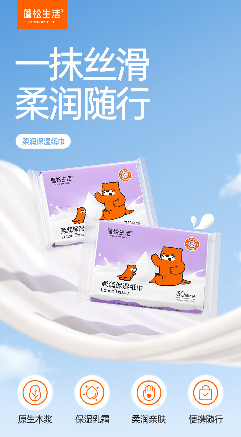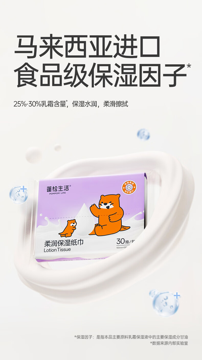 蓬松生活乳霜纸柔纸巾柔润保湿婴儿纸巾宝宝抽纸家庭装擦脸云柔巾 3层 30抽*30包