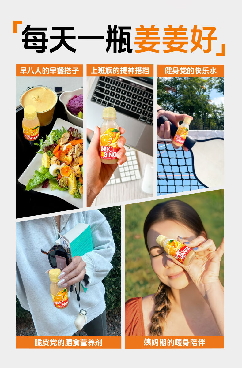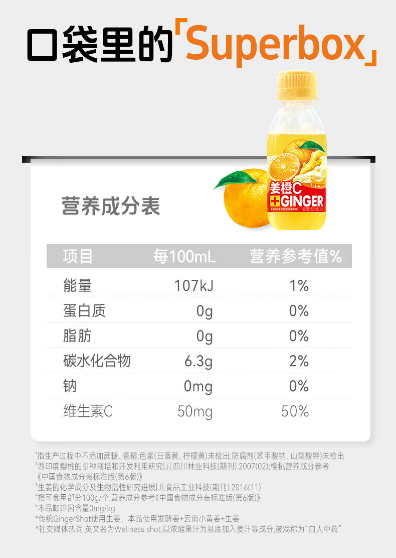 超级盒子姜橙C发酵姜汁非浓缩维生素果蔬汁功能饮料还原热力唤醒 【发酵姜/好入口】姜橙C 100ml*6瓶