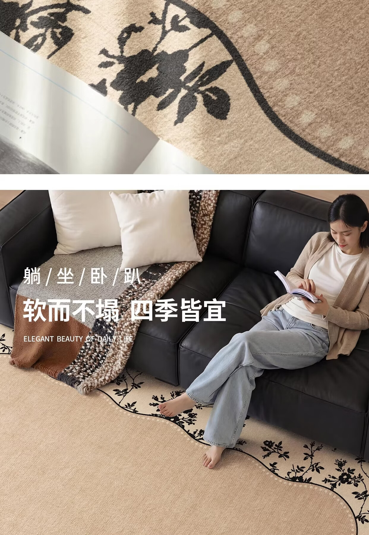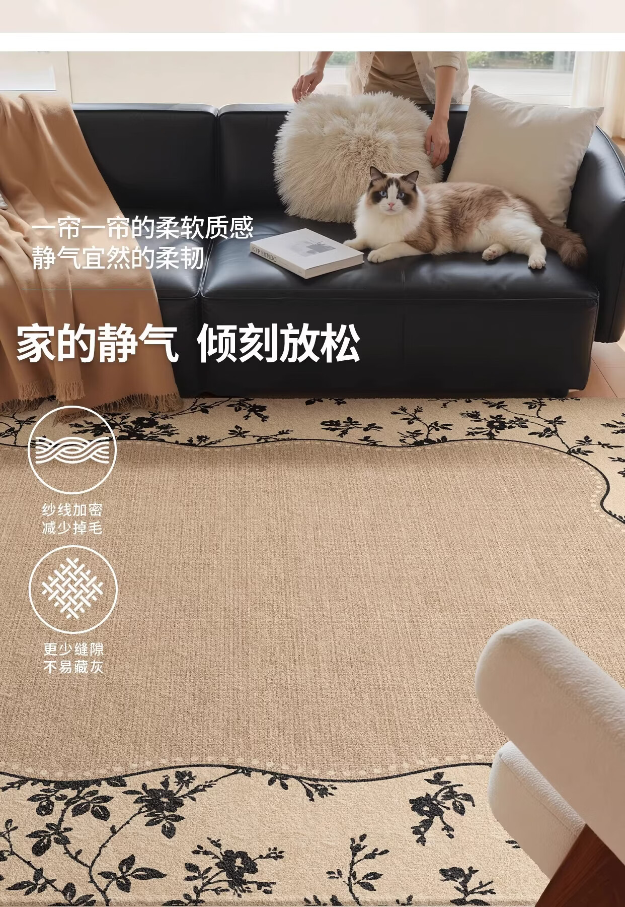 Y U-LIVE地毯客厅法式复古中古风2026新款免洗可擦轻奢高级感沙发茶几 S仿羊绒-秋色山茶 300×400cm【拒绝起球】