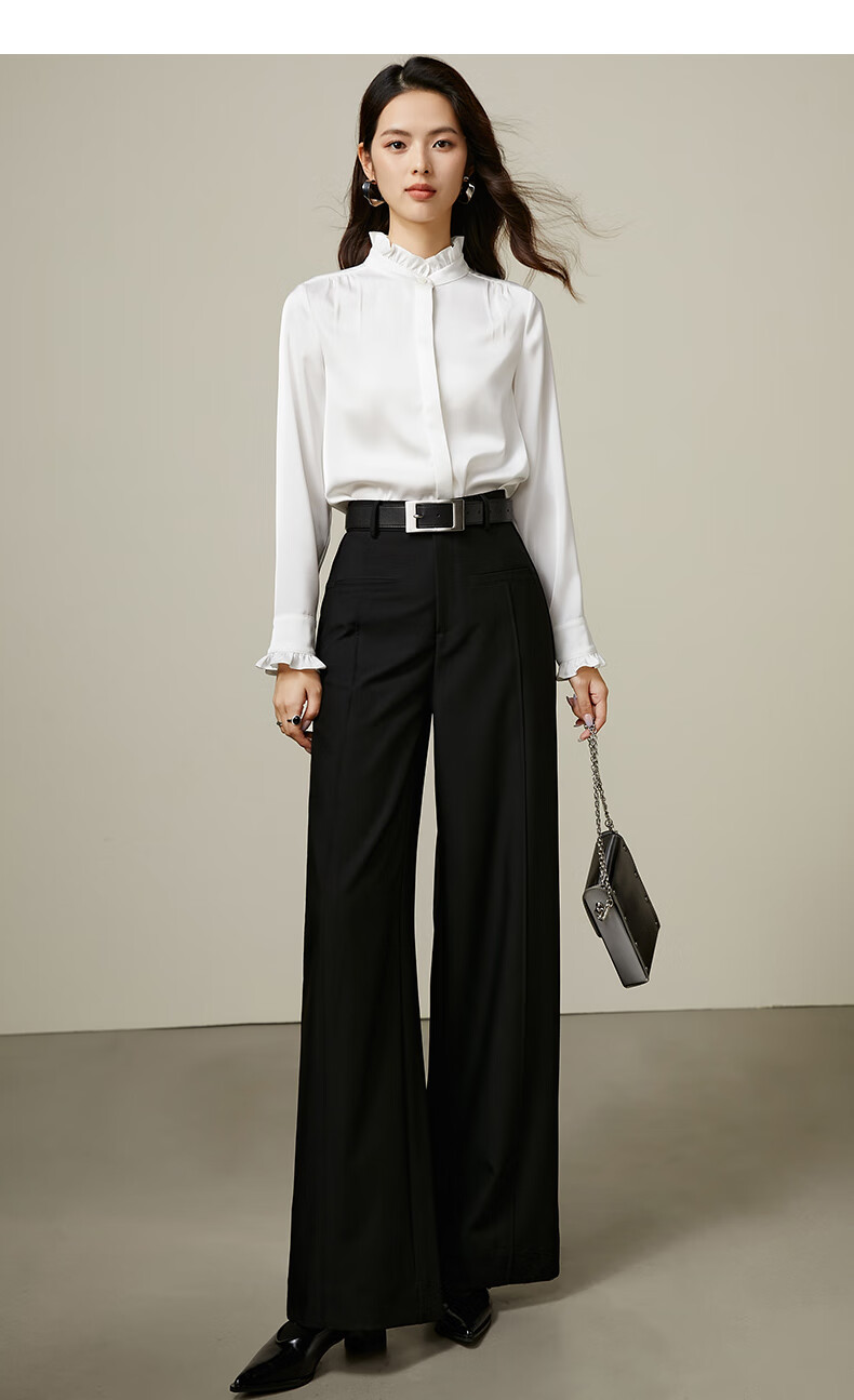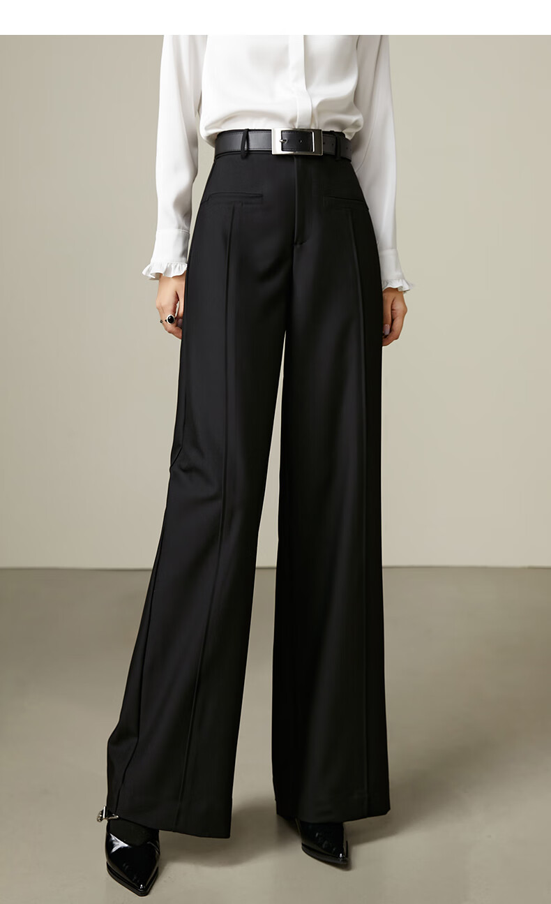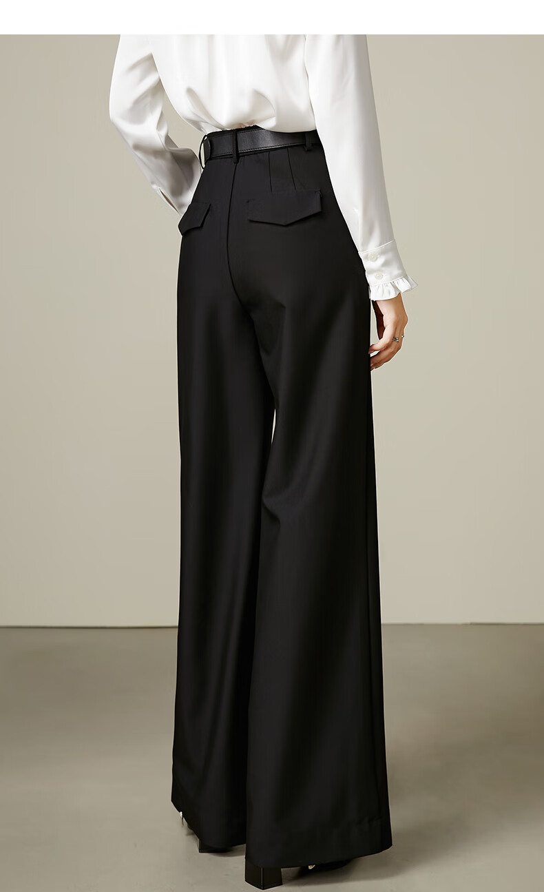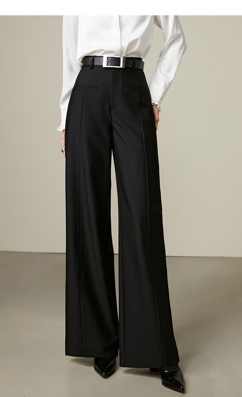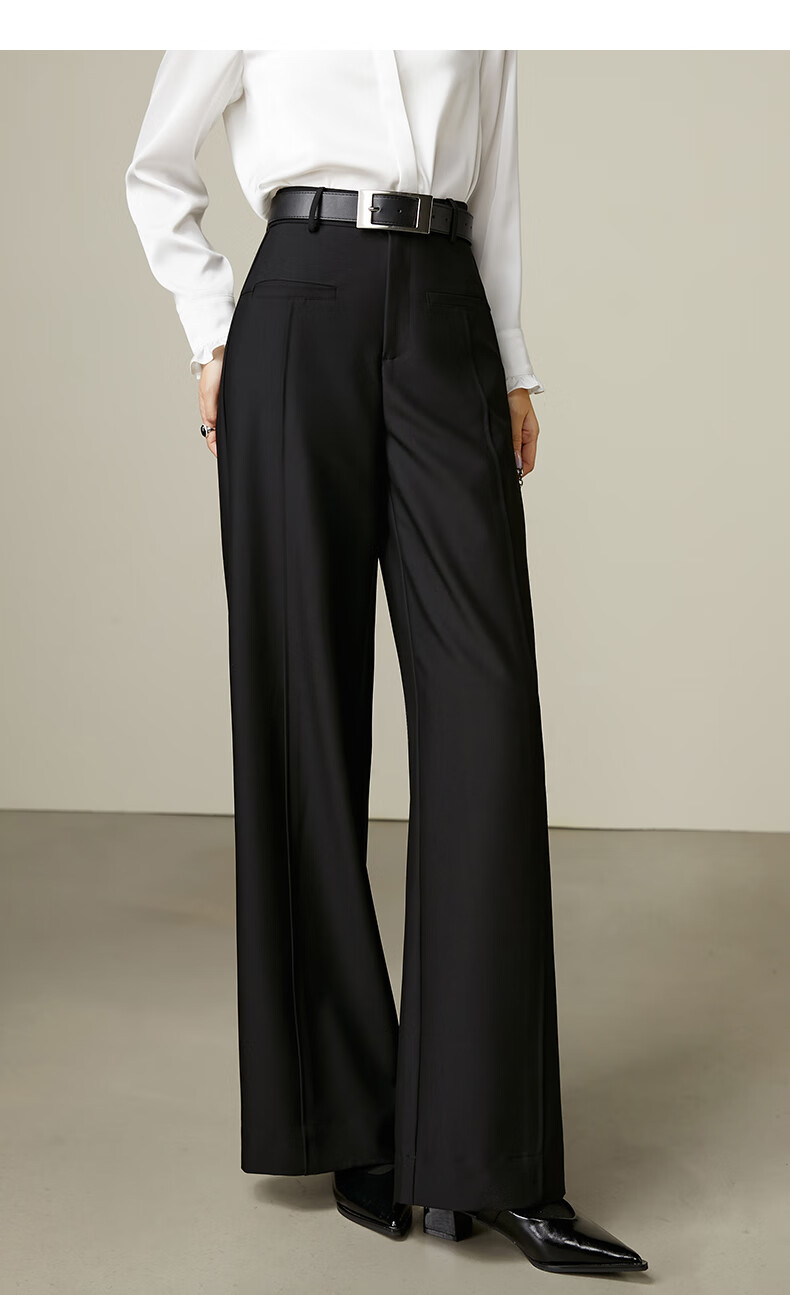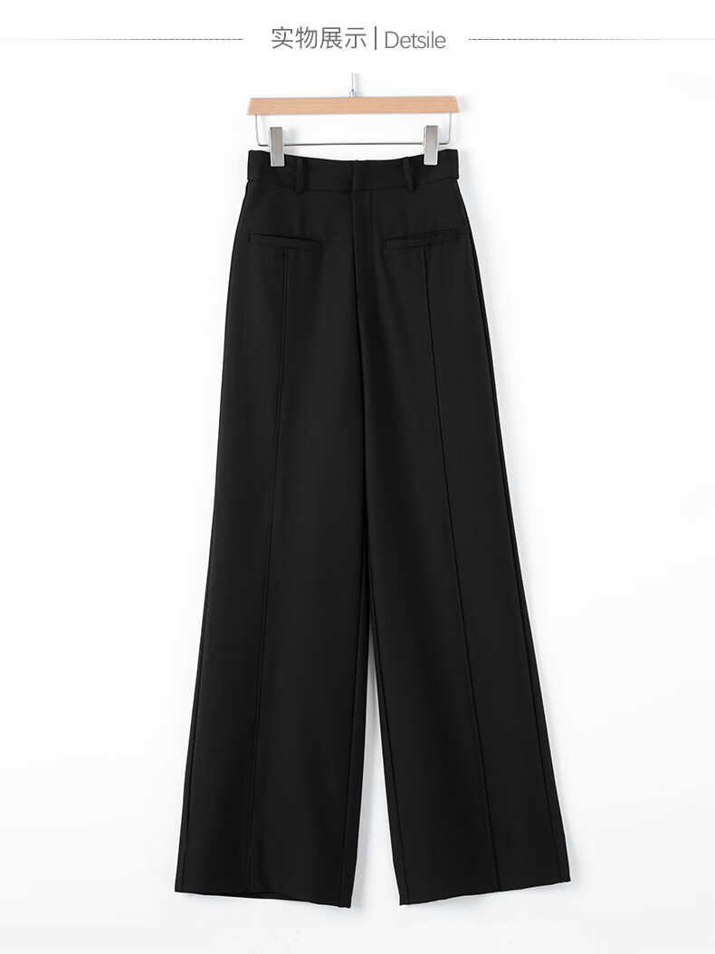 晚白【新品】2026春款洋气时尚通勤长裤百搭显瘦阔腿裤女【不含腰带】 黑色 29