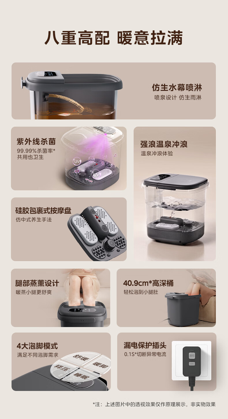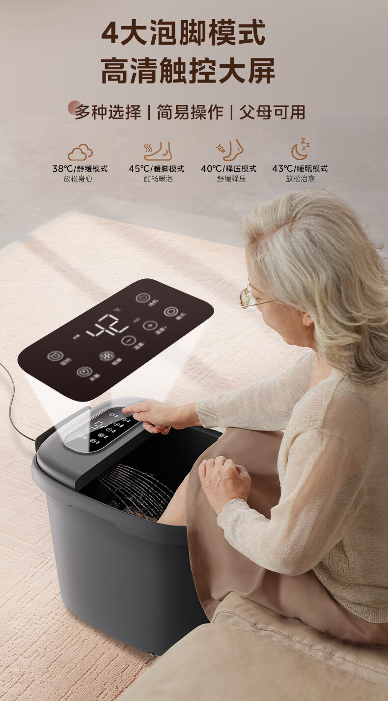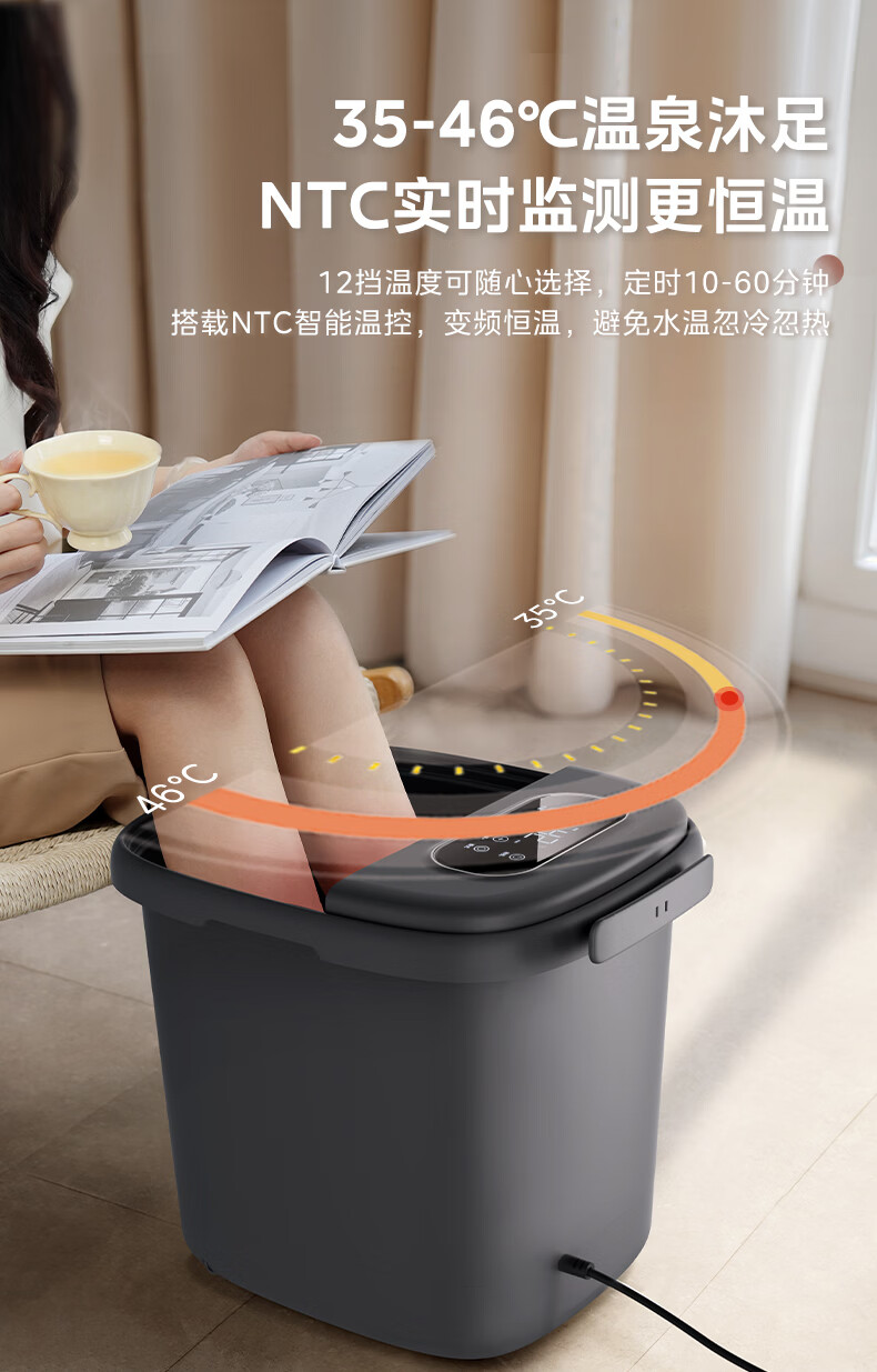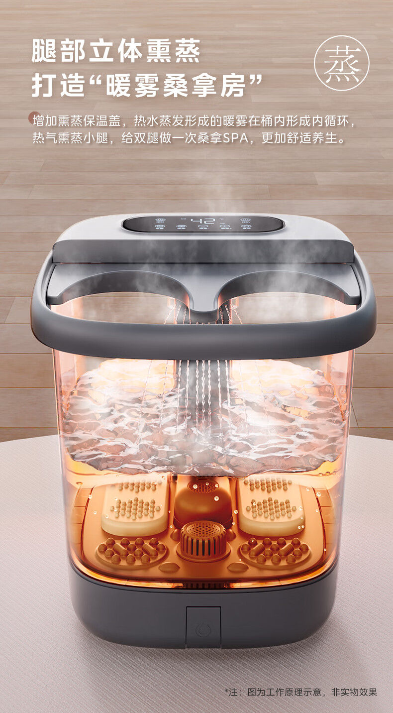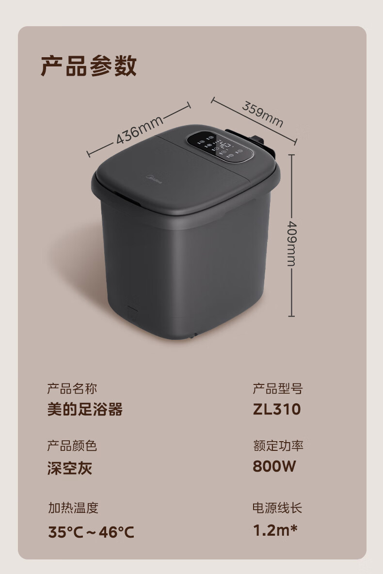 美的(Midea)泡脚桶杀菌暖脚足浴盆全自动按摩保暖洗脚盆熏蒸暖泡喷淋年货生日礼物送男女友ZL310深空灰