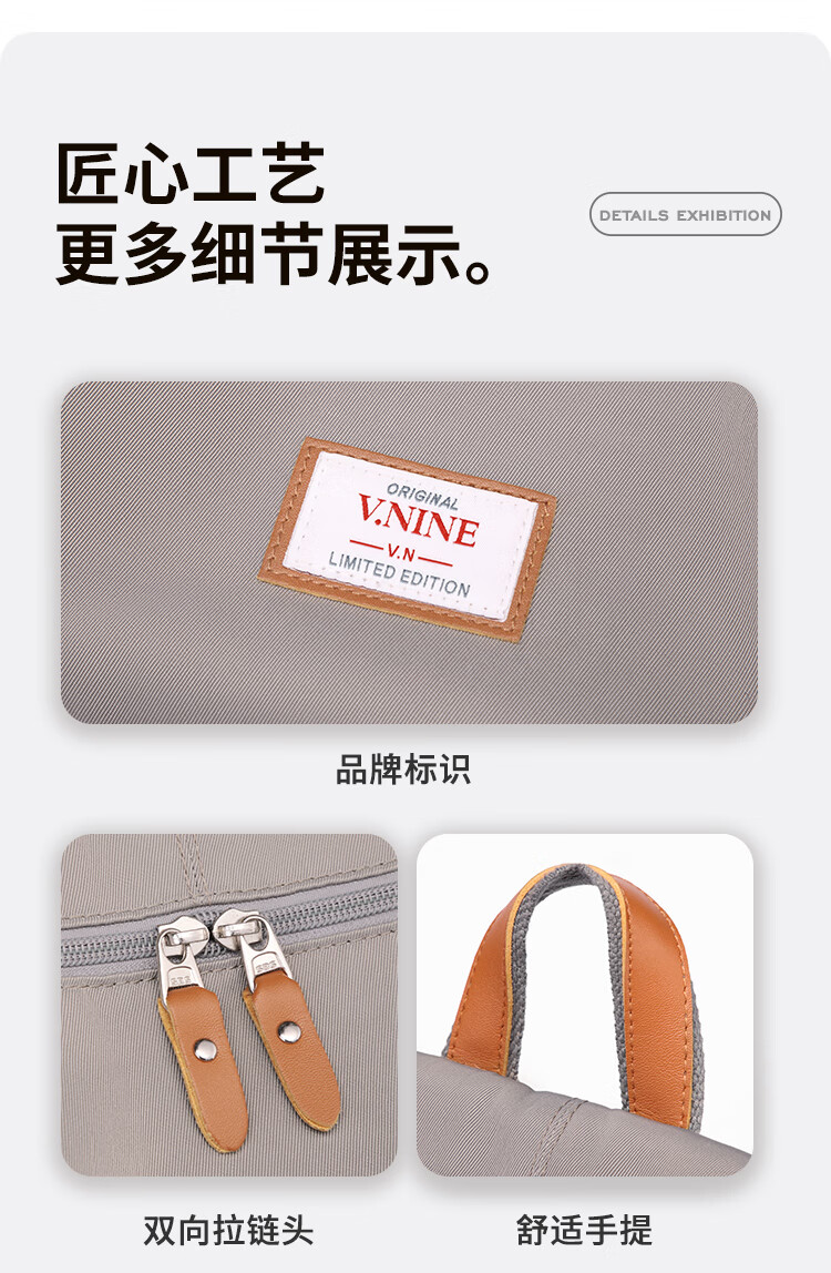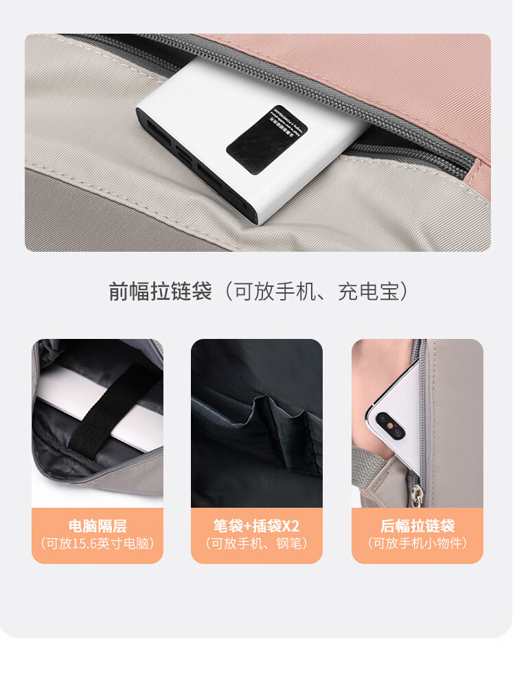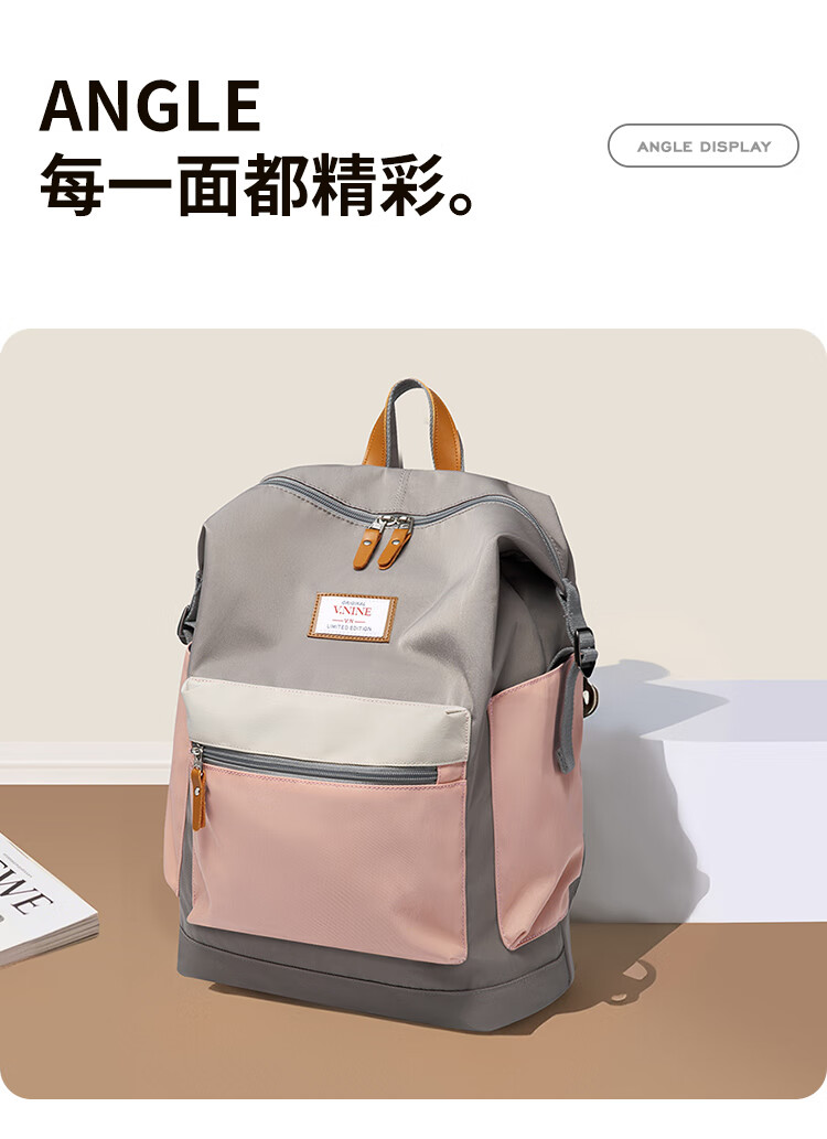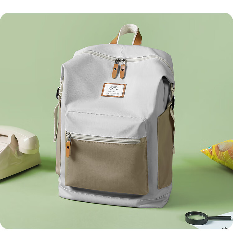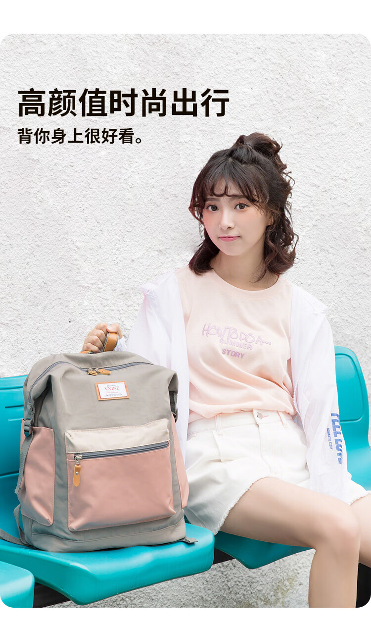 第九城 双肩包男女情侣款潮流背包多功能大容量电脑包韩版学生书包 卡其色