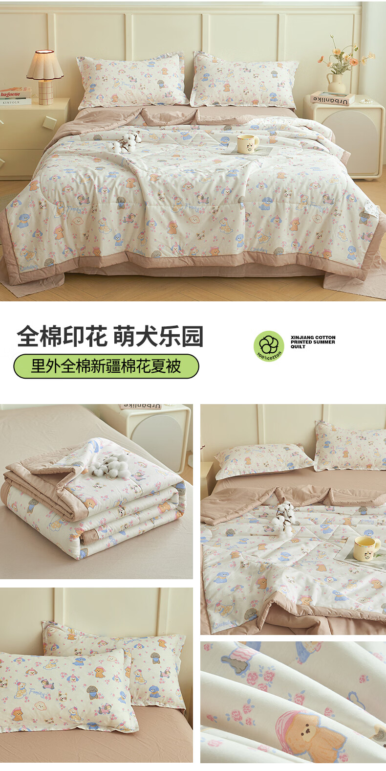 一默新疆棉花夏被A类纯棉被子居家宿舍家纺床品全棉印花空调被夏凉被 萌犬乐园 150cm*200cm