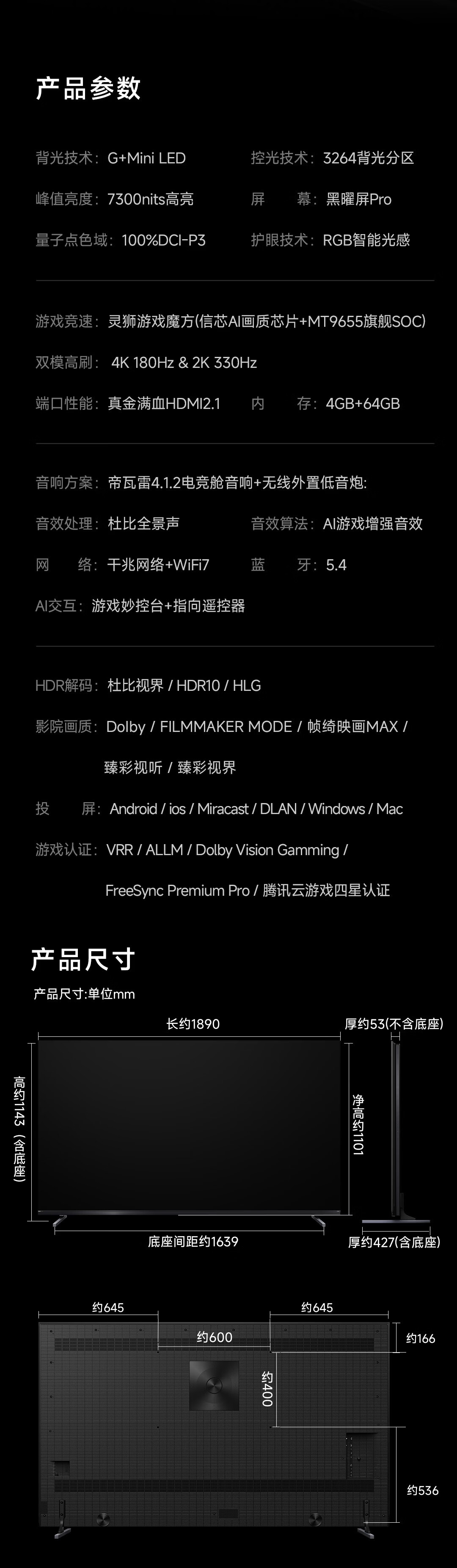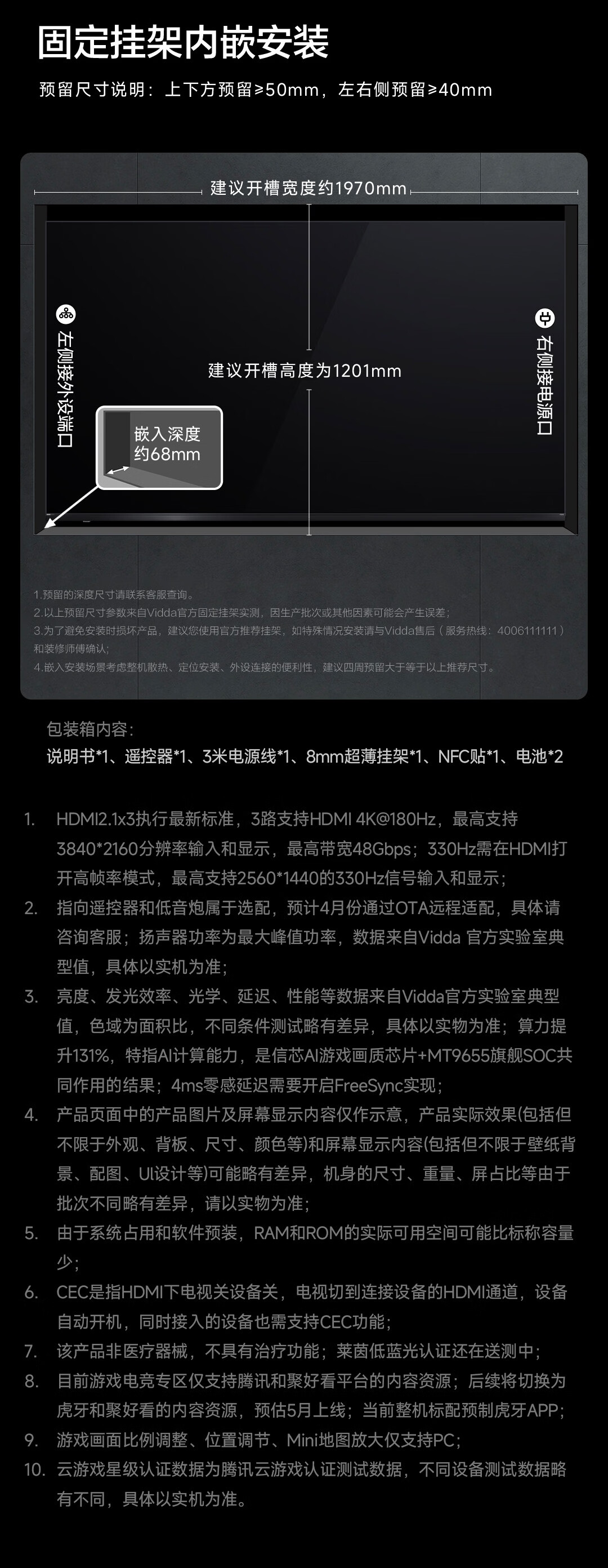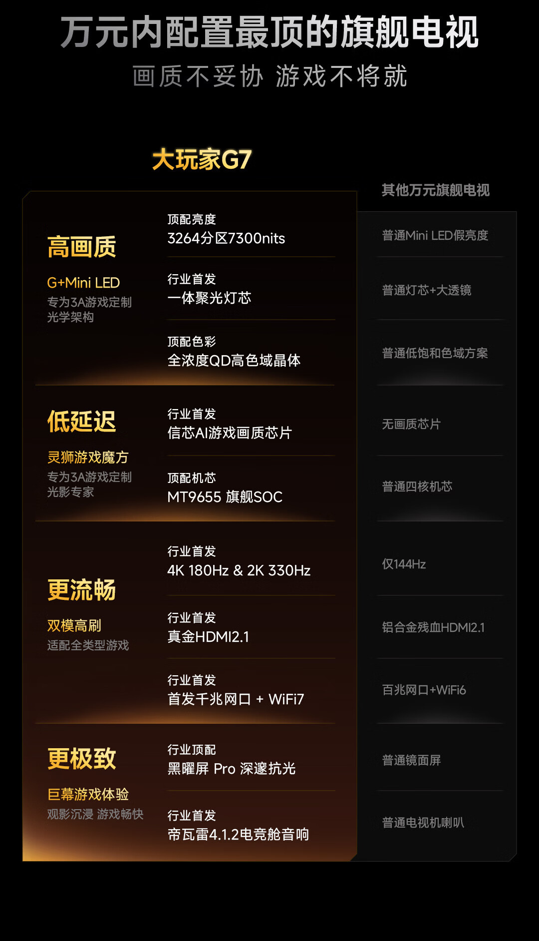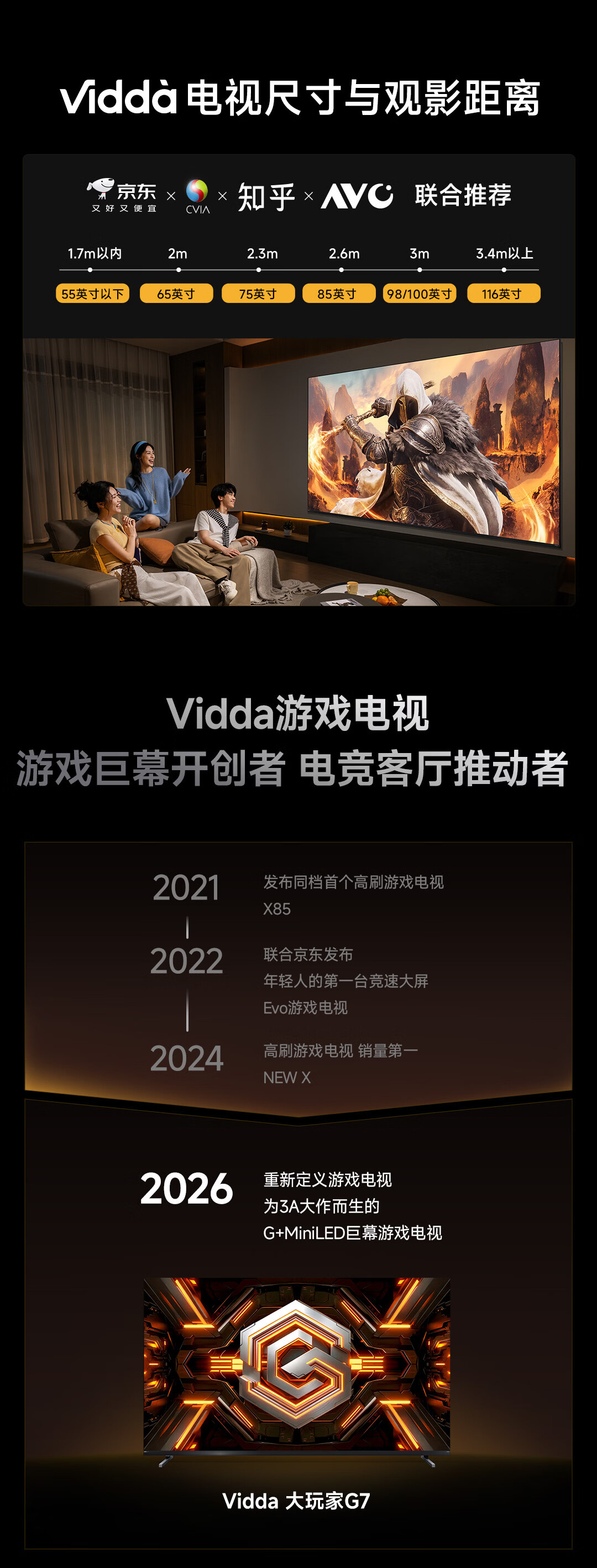 Vidda大玩家G7 海信电视100英寸G+Mini LED 黑曜屏Pro 影游双芯 330Hz高刷游戏电视 限时补贴GamingTV