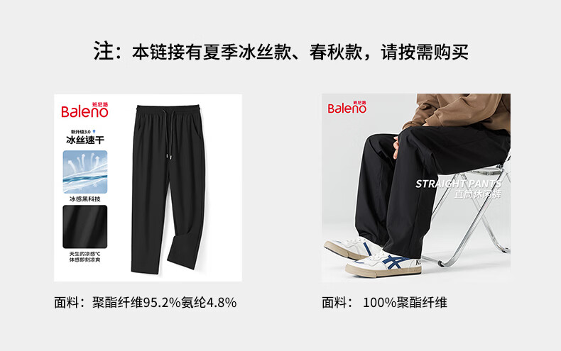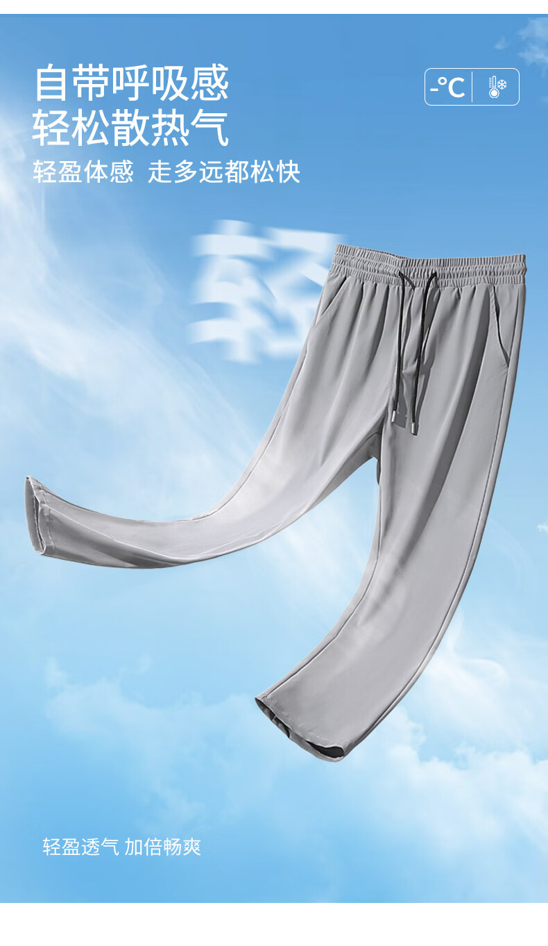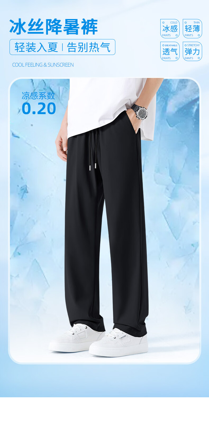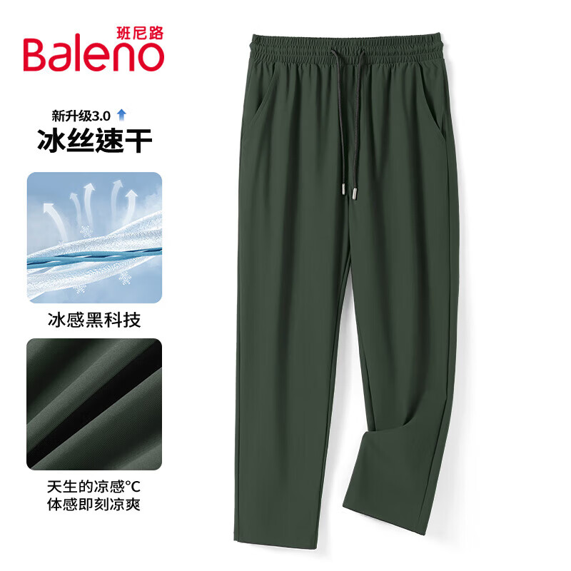 班尼路(Baleno)休闲裤男夏季长裤男士简约潮流直筒裤薄款冰丝夏天透气速干裤子男