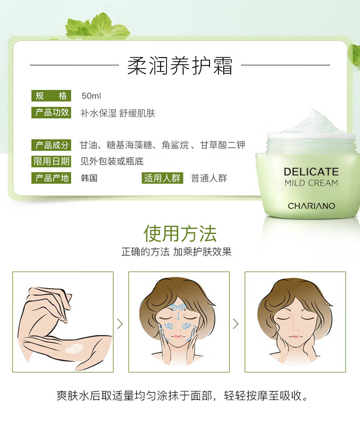 奇姬韩国柔润养护霜 舒缓肌肤锁水保湿面霜夏季 舒缓养护霜 50ml