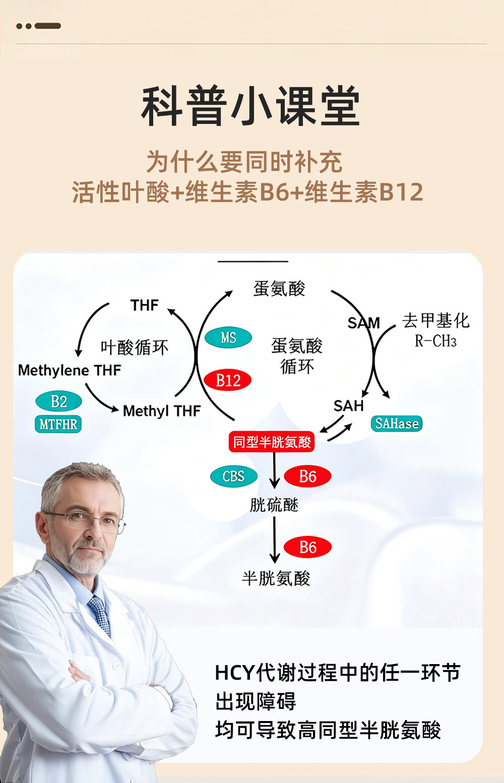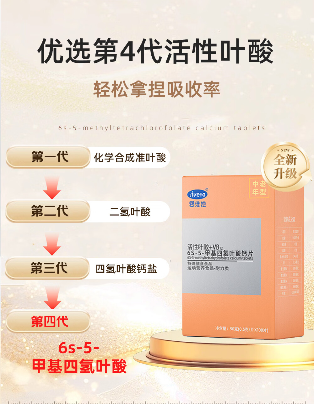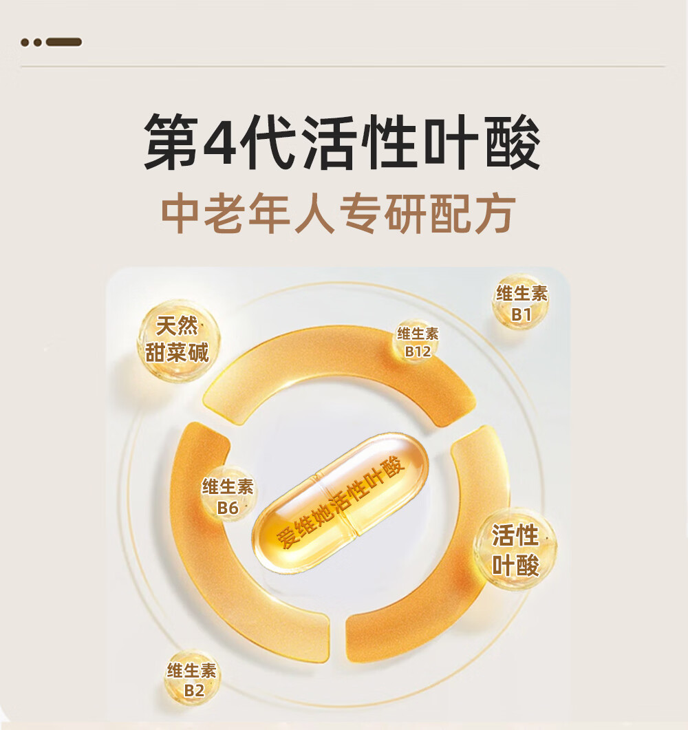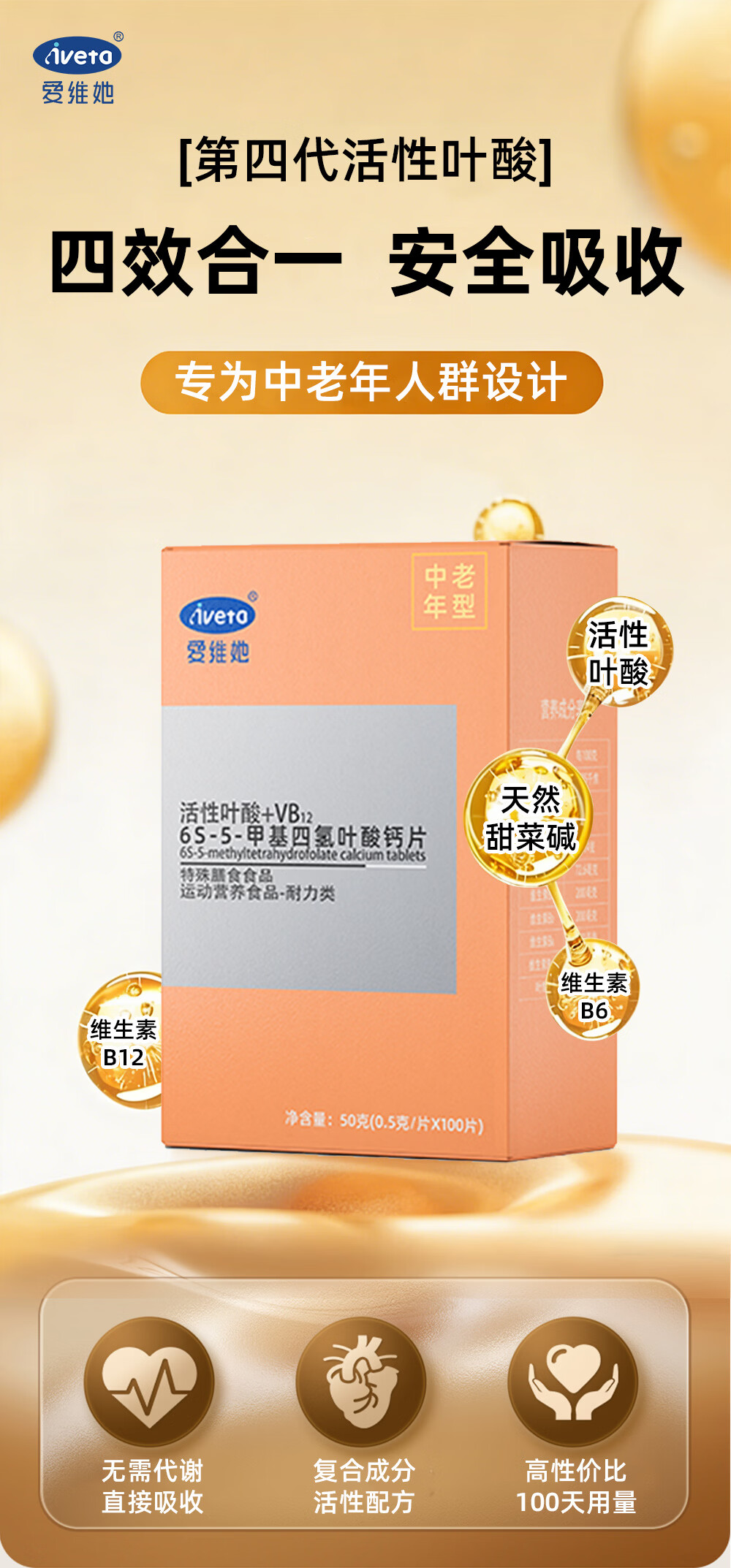 爱维她(Aiveta)活性叶酸降低高同型半胱氨酸五甲基四氢维生素b6b12心脑血管白发 日常补充装40天【降同型守护心脑血管】 20片*2盒