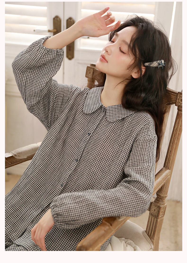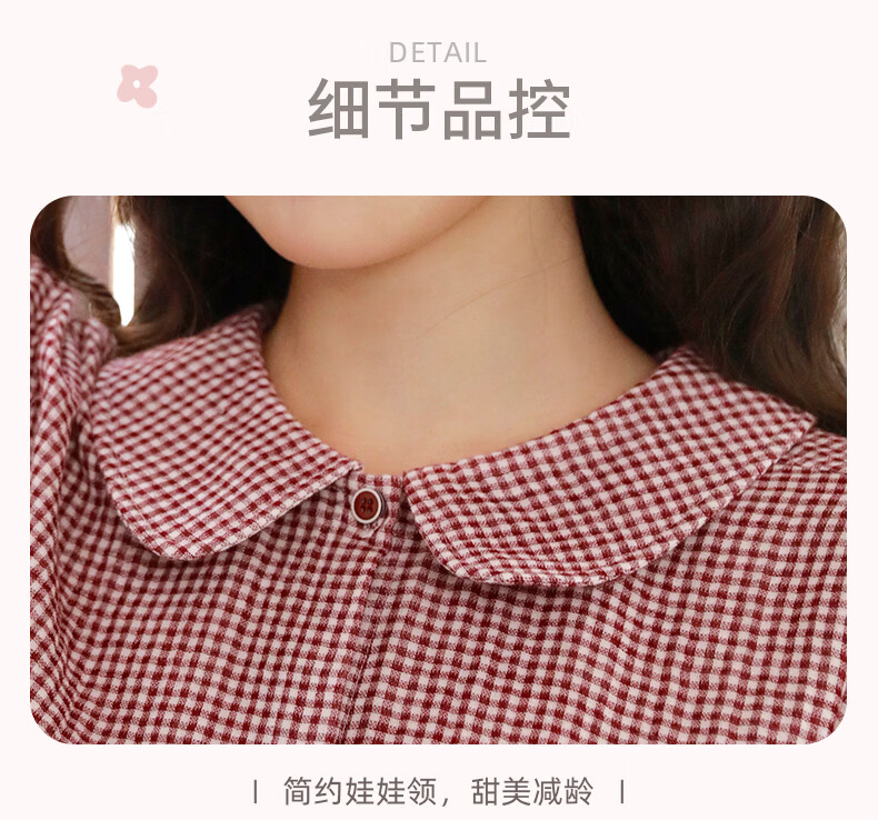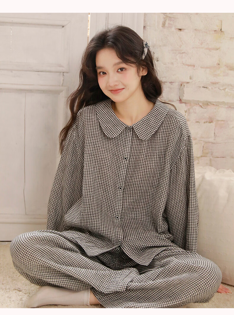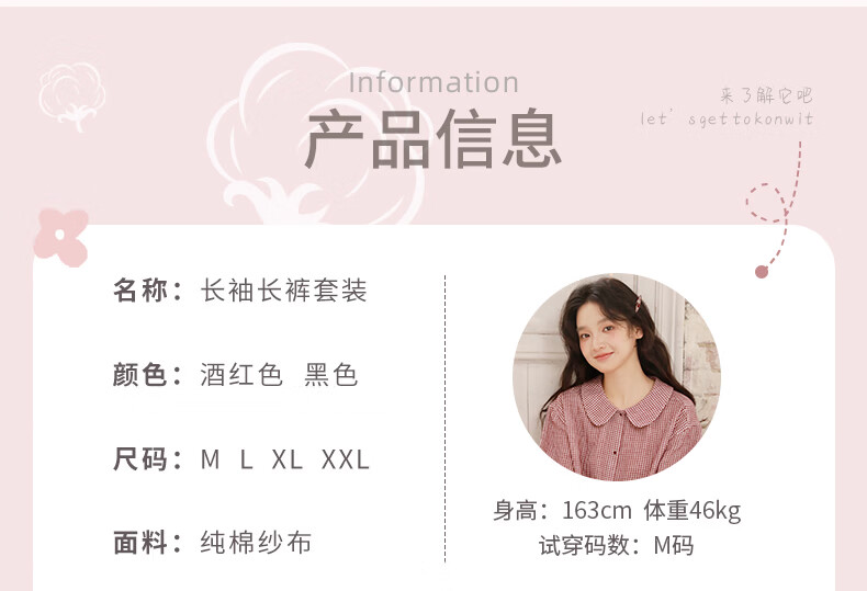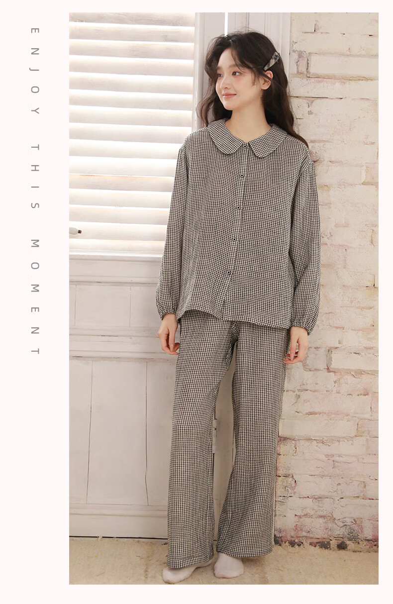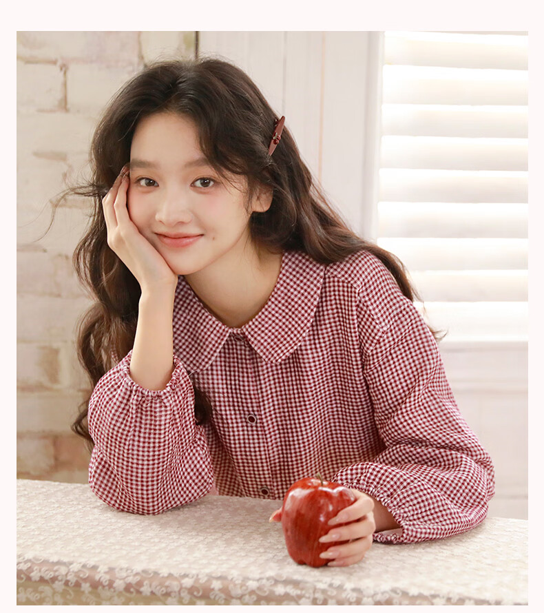 蔓秋 MEJU春季新款格颜三层纱女士长袖长裤家居服套装 红色 M 110斤以内