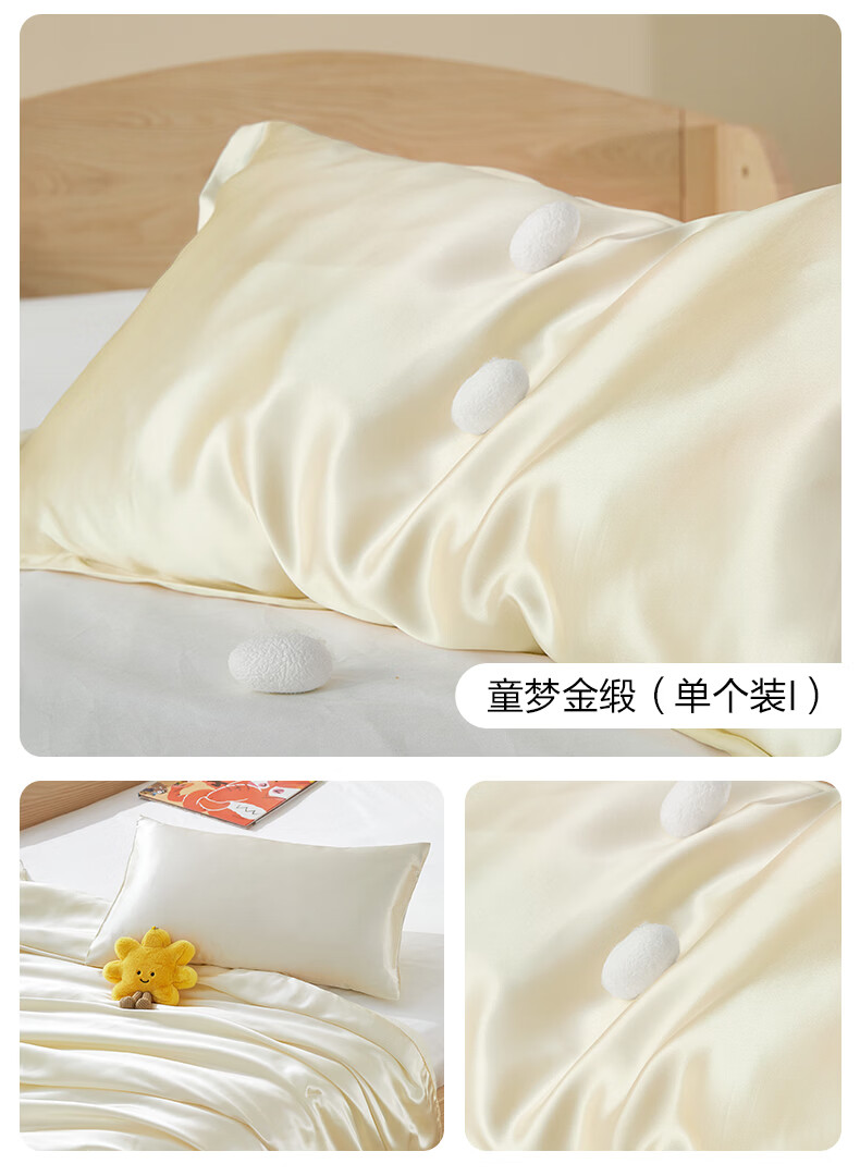 博洋宝贝(Beyond Kids)婴儿真丝枕套6A级100%桑蚕丝30x50cm单个装宝宝幼儿园枕头套四季 真丝枕套—童梦金缎(单个装I) 单只 30*50cm