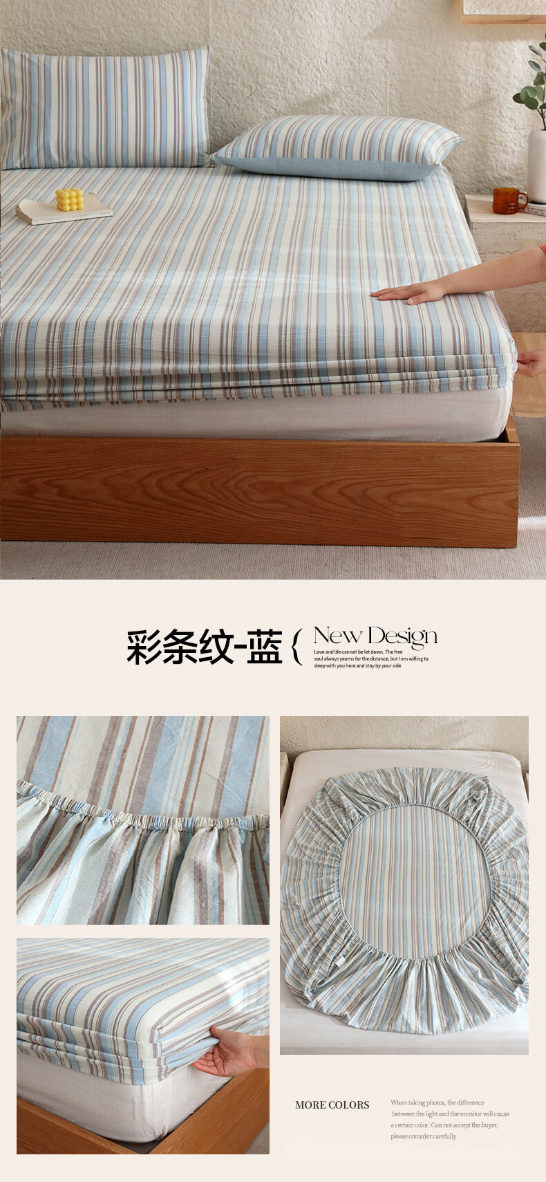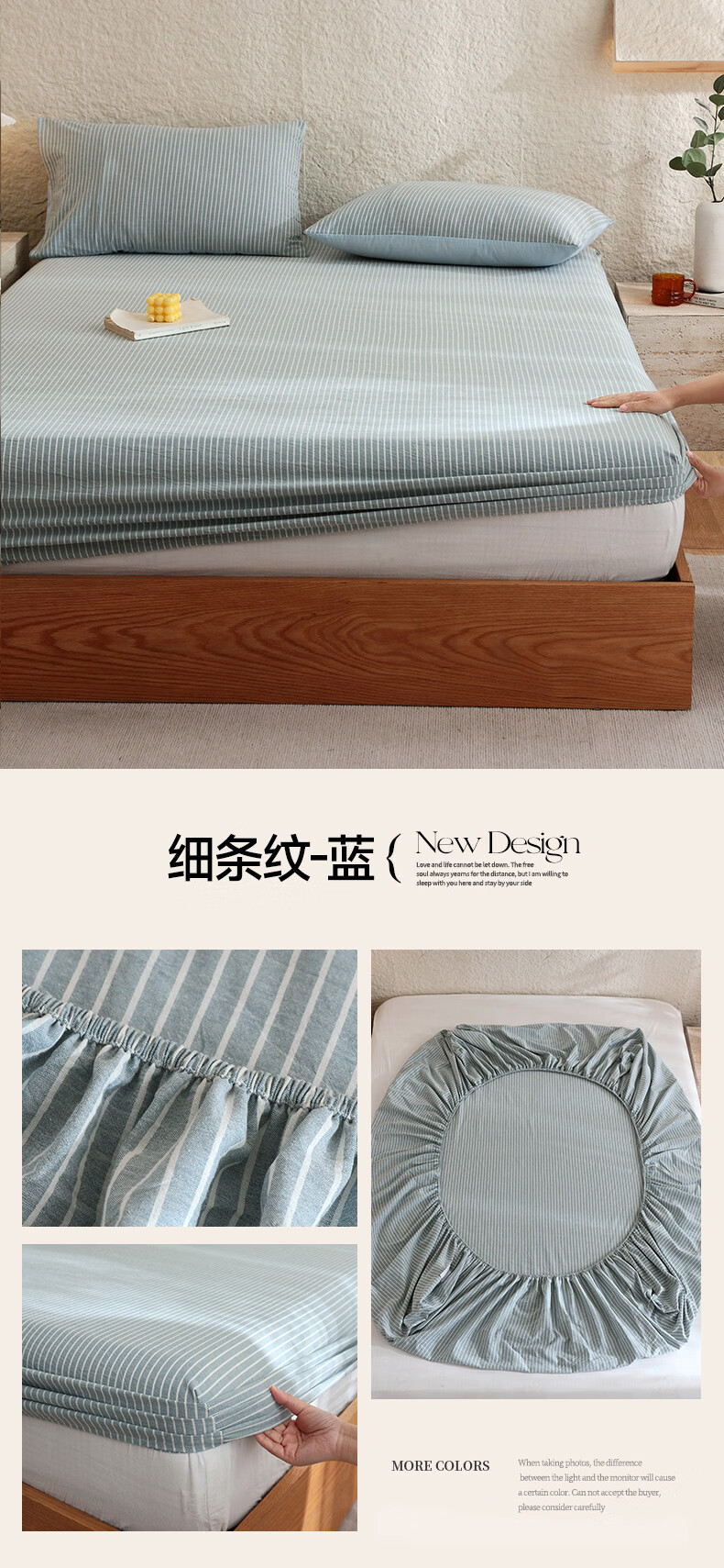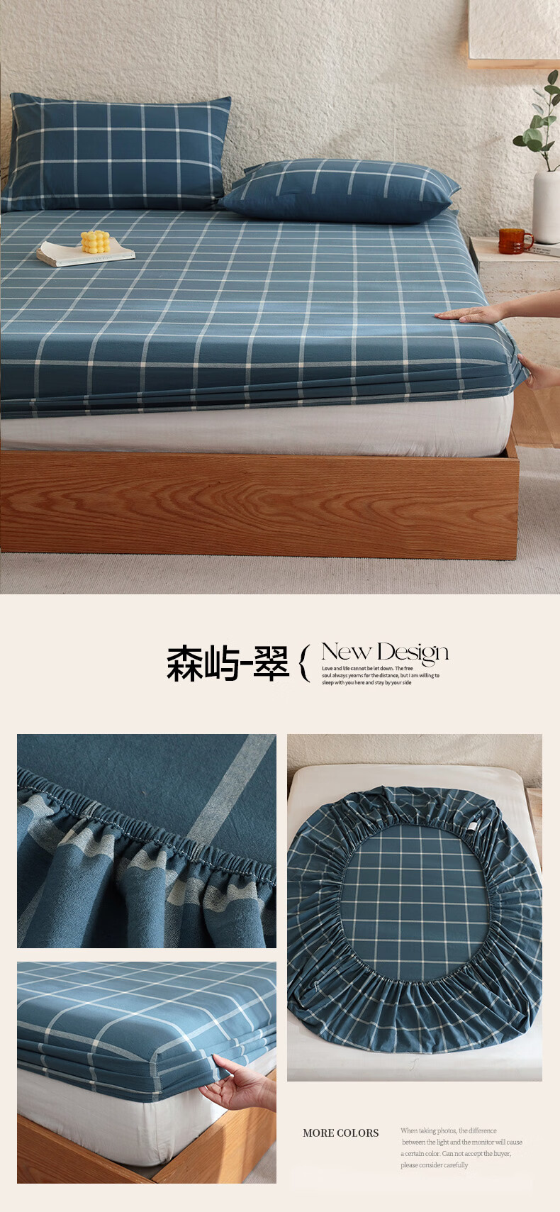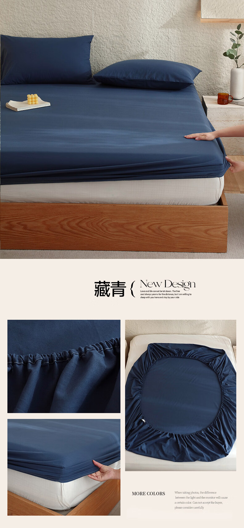 无印良品A类色织新疆全棉床笠1.8x2米纯棉床垫保护套单件宿舍家用防滑床罩 藏青【全棉水洗棉 亲肤柔软】 150cm*200cm 单床笠